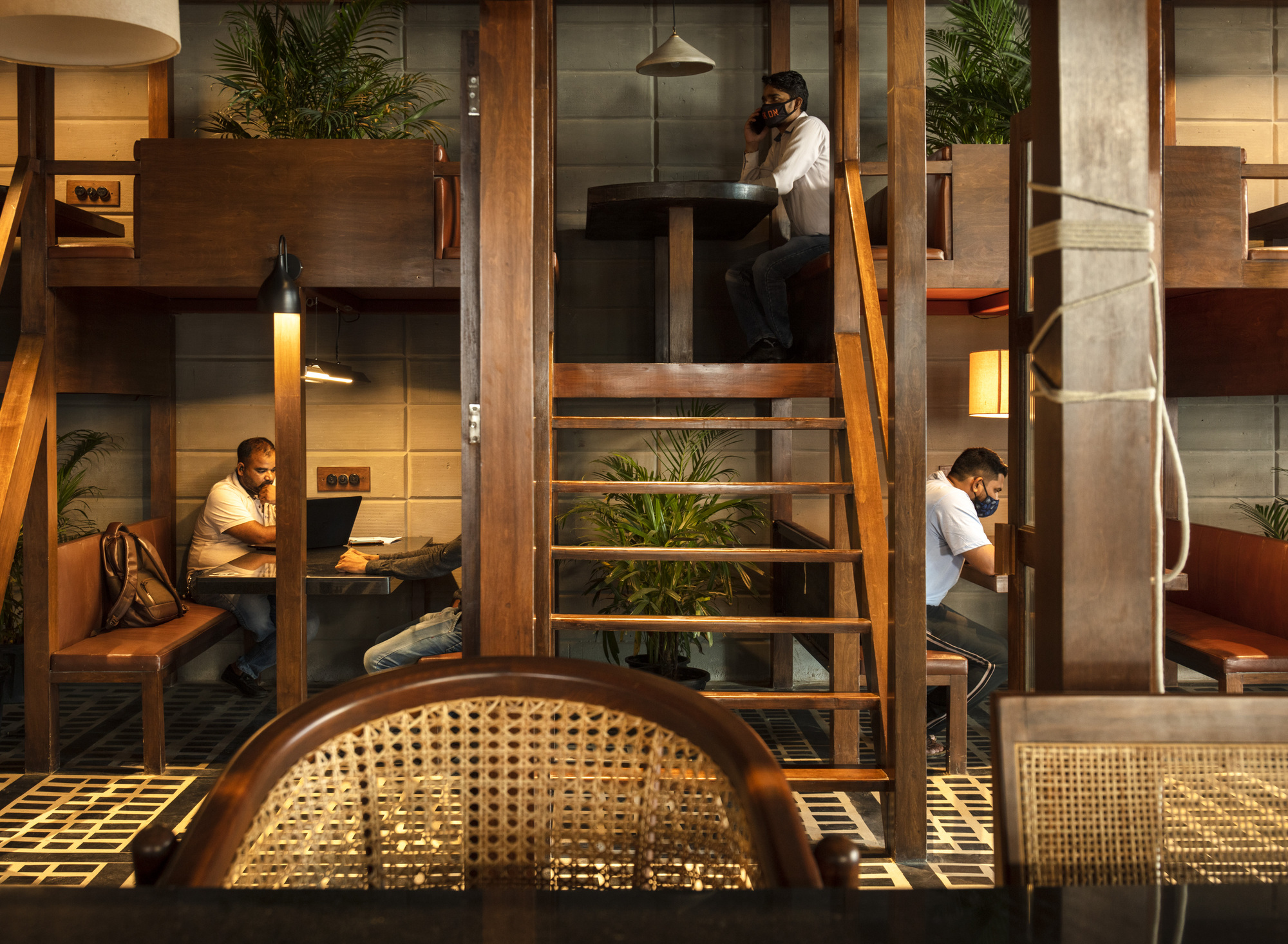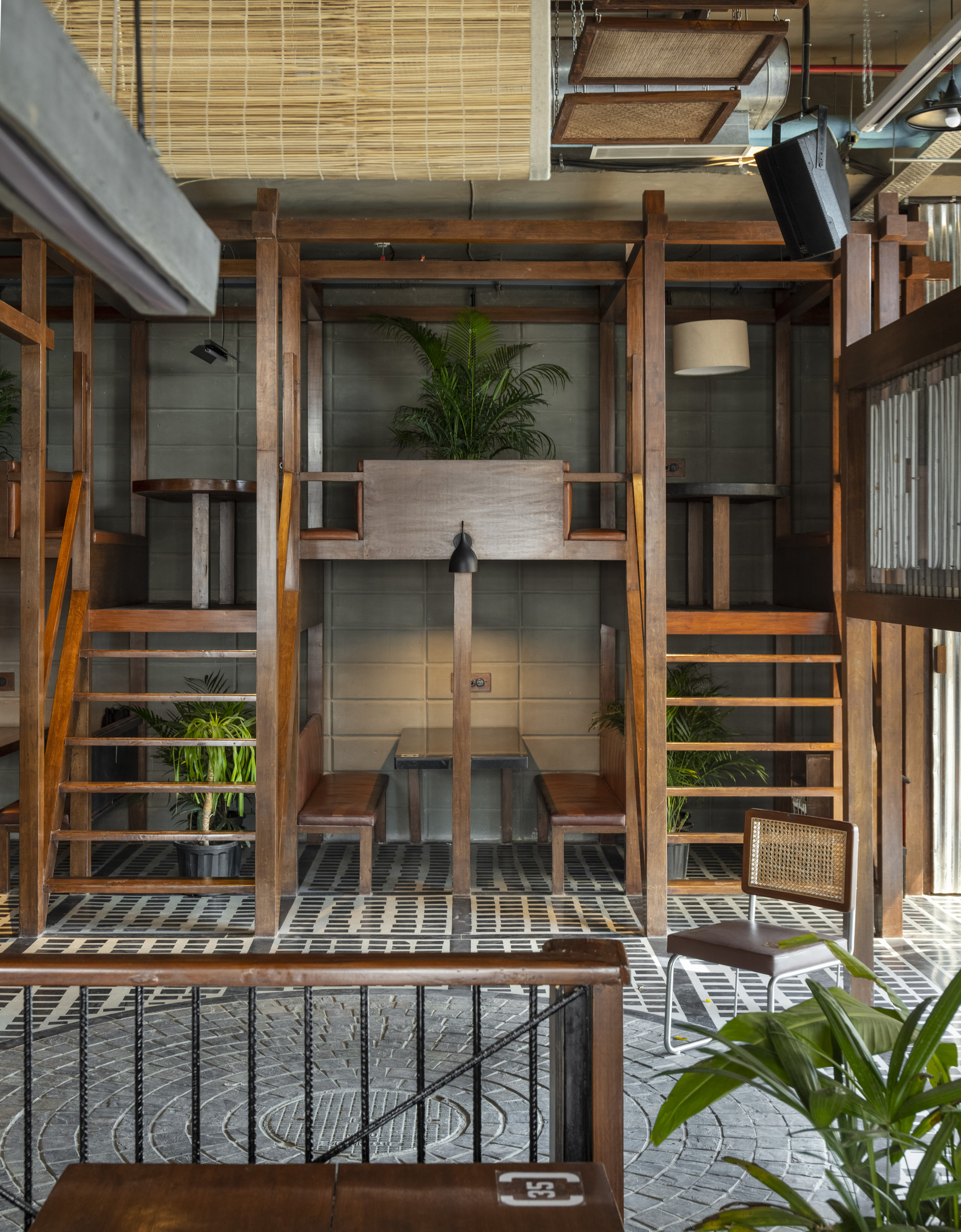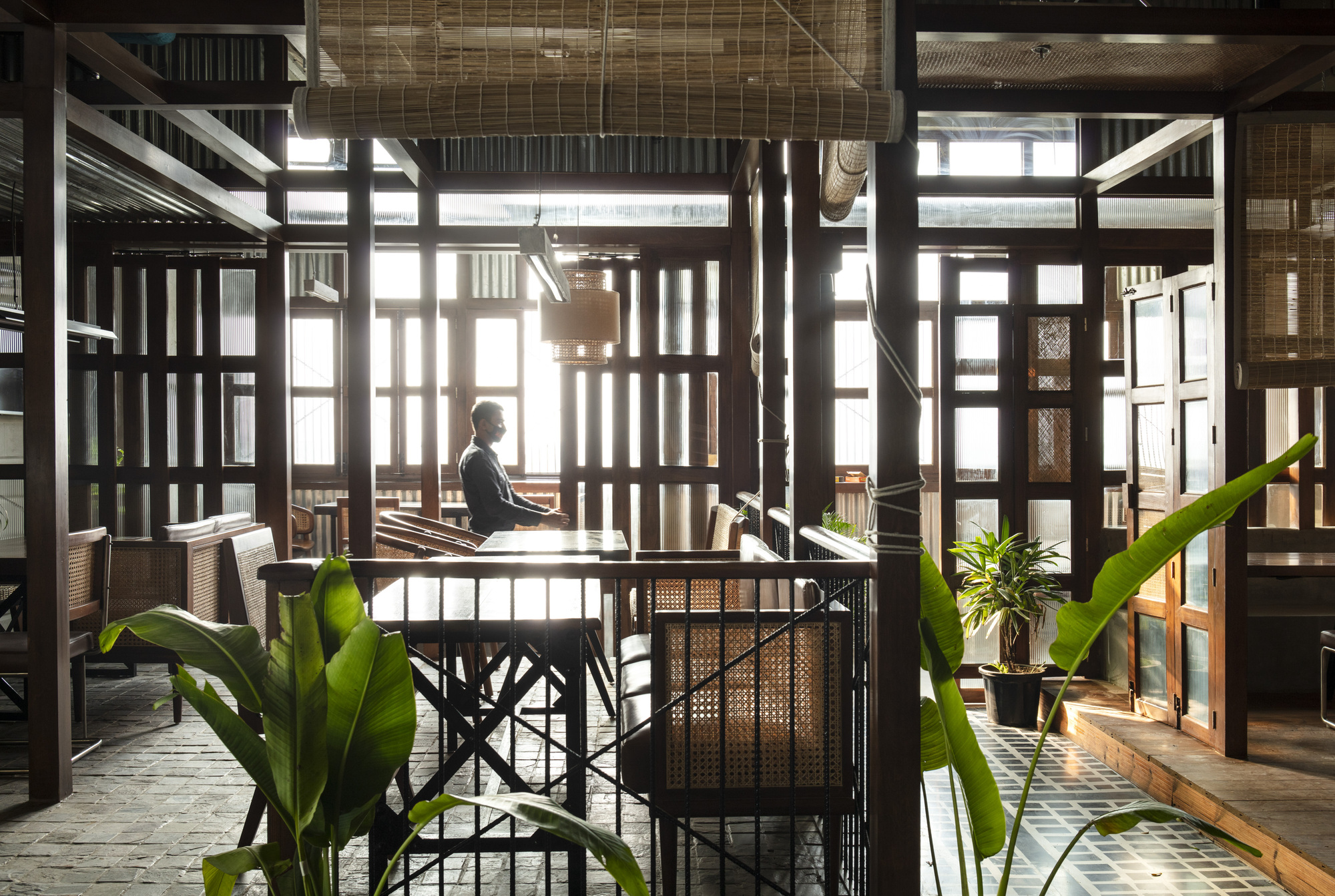 Masked waiters, tables placed six feet apart, and fluted glass are all the elements that realize a half Vietnamese- half contemporary space set in New Delhi,India. Renesa’s new design introduces India’s first covid response restaurant that responds to the “new normal” redefining the boundary between communal and booth seating in restaurants. With people yearning to come together with friends and family at restaurants and bars once again, the studio wanted our design to blend two seamless ideologies: design inspired by the buzzing streets and alleyway shops of Vietnam and the intricate lattice arrangement of Dwarka(New Delhi's largest residential Development)’s various sectors that allow to socially distance without seemingly so.