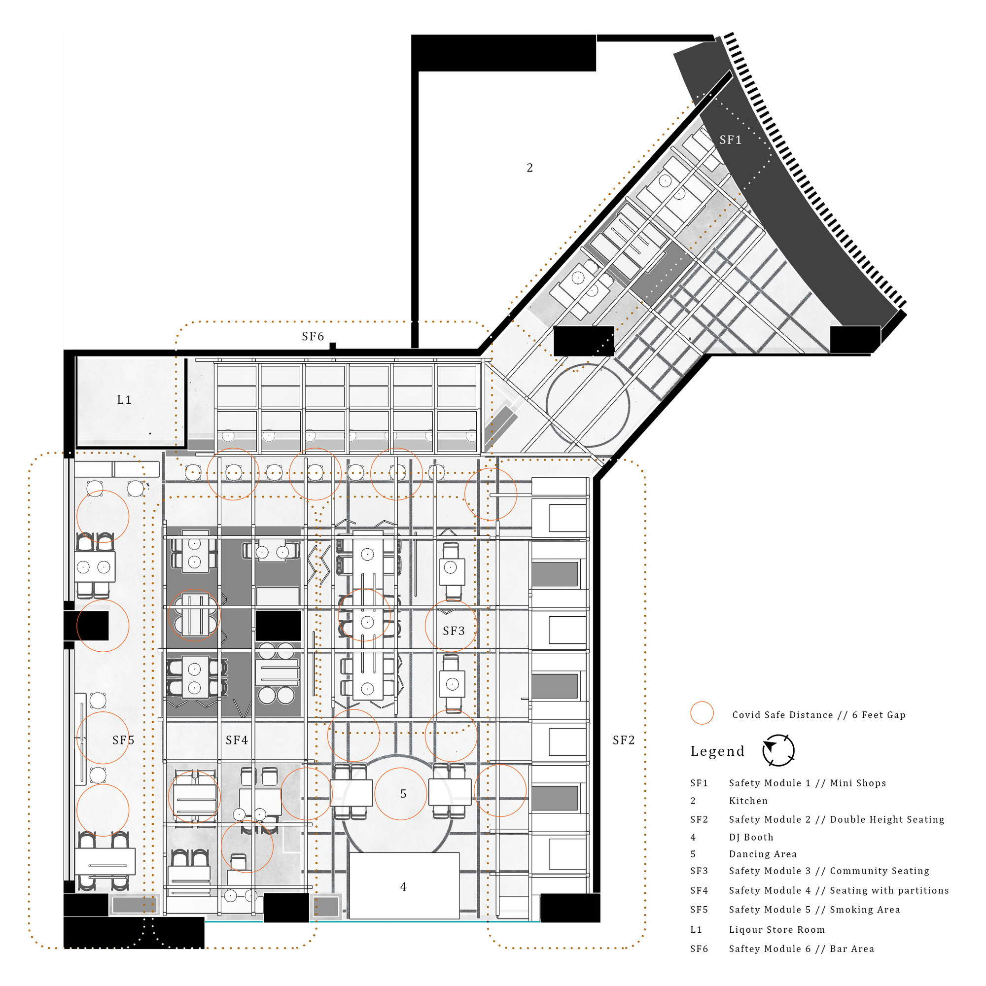 The latest product of RENESA ARCHITECTURE DESIGN INTERIORS STUDIO showcases our latest architectural design ideology and safe seating typology behind India's first covid response restaurant and bar. In the midst of this global coronavirus pandemic, when the very nature of public space has become both threatening and threatened, the future of the restaurant industry has been brought into question numerous times.