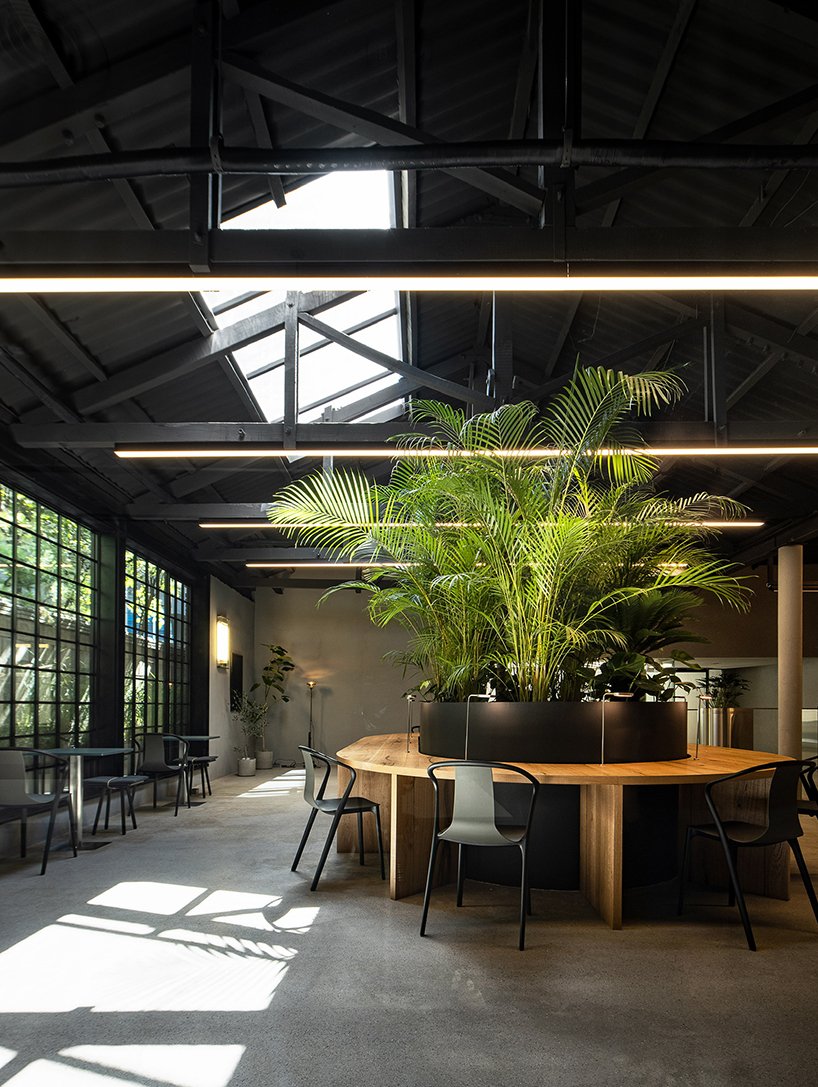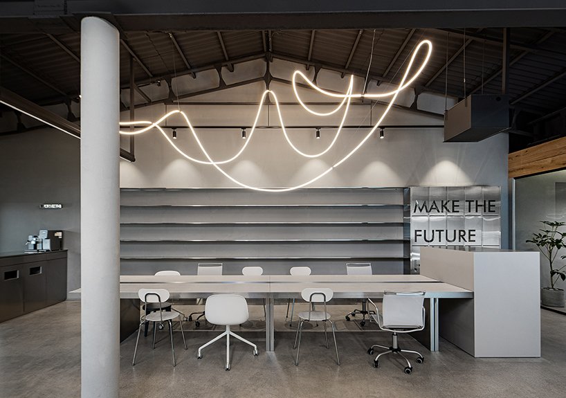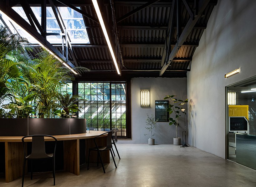 what was once a factory for making boxes in seoul, south korea, has been transformed into a contemporary workplace by studio mute. located in seongsu-dong – the city’s once-industrial district -, the original building has been opened up to create a light and flowing office for a rising design firm that specializes in material development for its products.