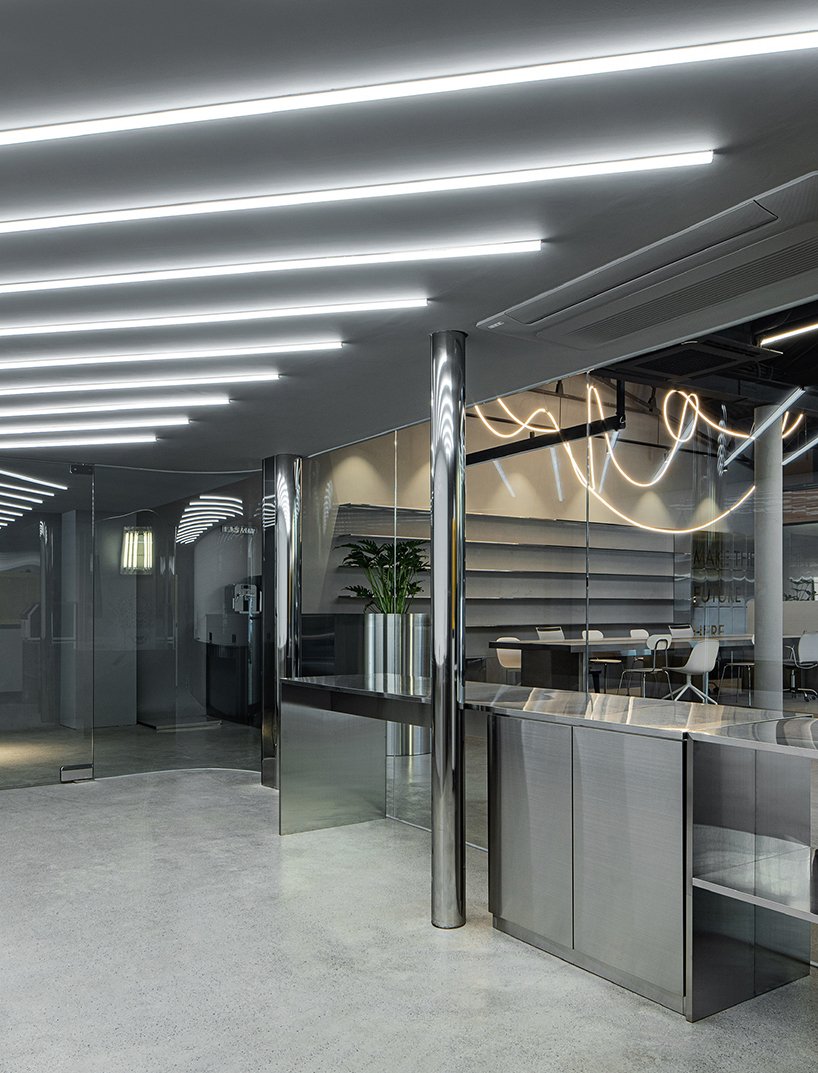 the only thing that the client, lab M. 0 (M-zero), requested for the spatial design was an atmosphere of freedom. studio mute therefore focused on transforming the traditional workspace into a new one and using materials that would reflect lab M. 0’s corporate identity. everyone, including the CEO, is free to work anywhere, just like in cafés or co-working spaces. there are no partitions, and if someone wants to liven up the day, they can turn the music on.