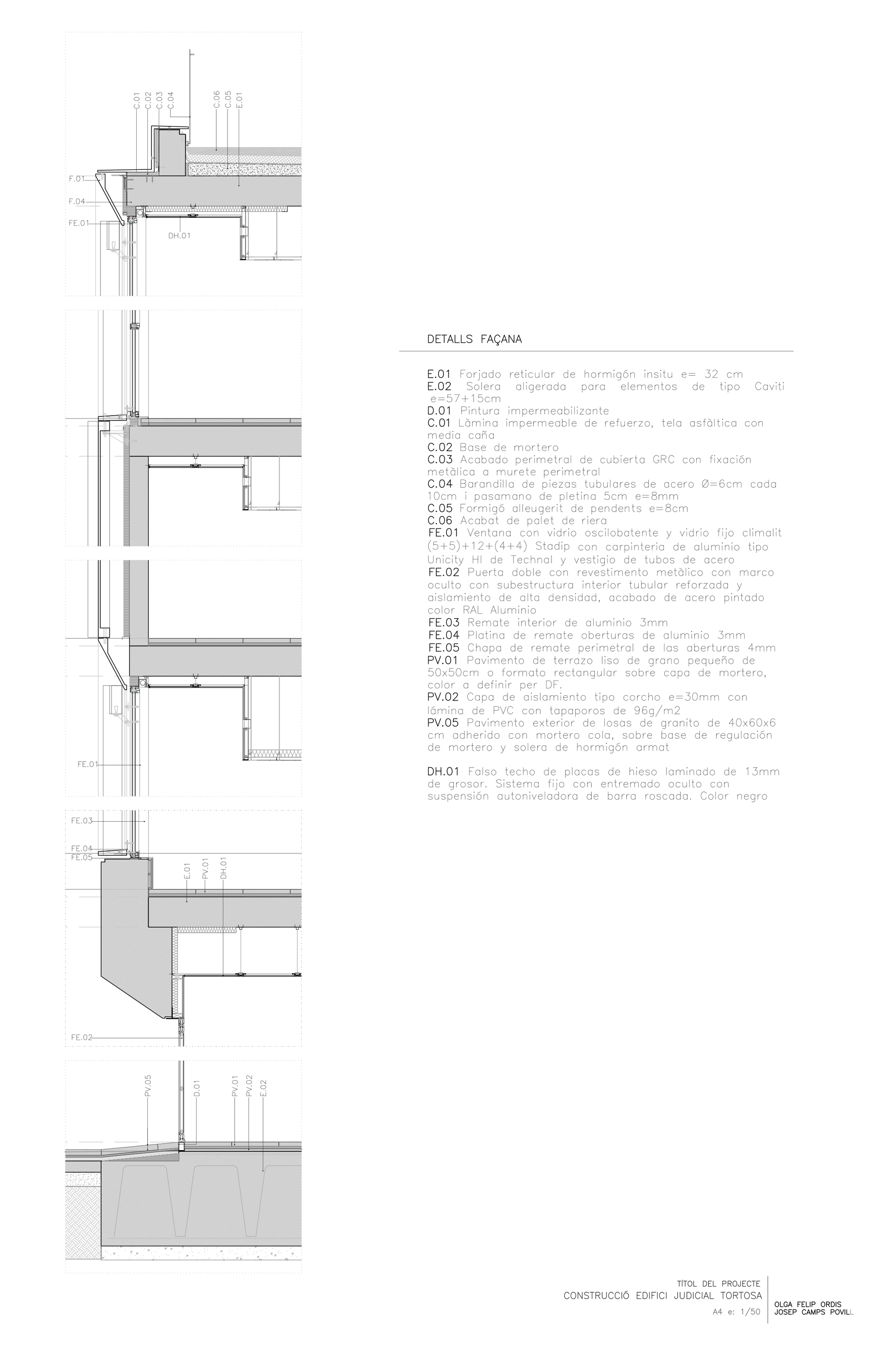 The project starts from a regular and ordered structure through a grid scheme modulated from the standard dimensions of the program’s office unit. The program distinguishes the public access areas, which are solved with more open , permeable and continuous facades; and areas of restricted or private use, which are modulated and reated with the rhythm of the facade to allow possile future changes. The strict separation of public and private areas as well as prisoners or witnesses is also reflected in the paths and access cores. Public and private paths are carried out along the longitudinal facades. Placing the public and waiting areas on the north facade with views of the castle and the old town. Public and private are divided by a central area delimited by the customer service, which houses the restricted uses of offices and work.