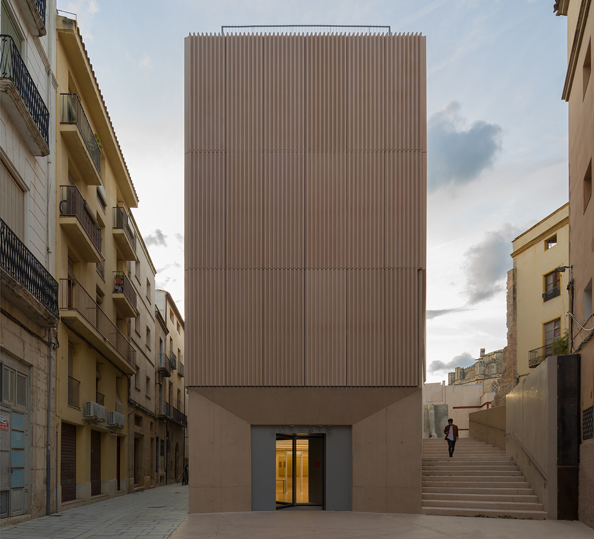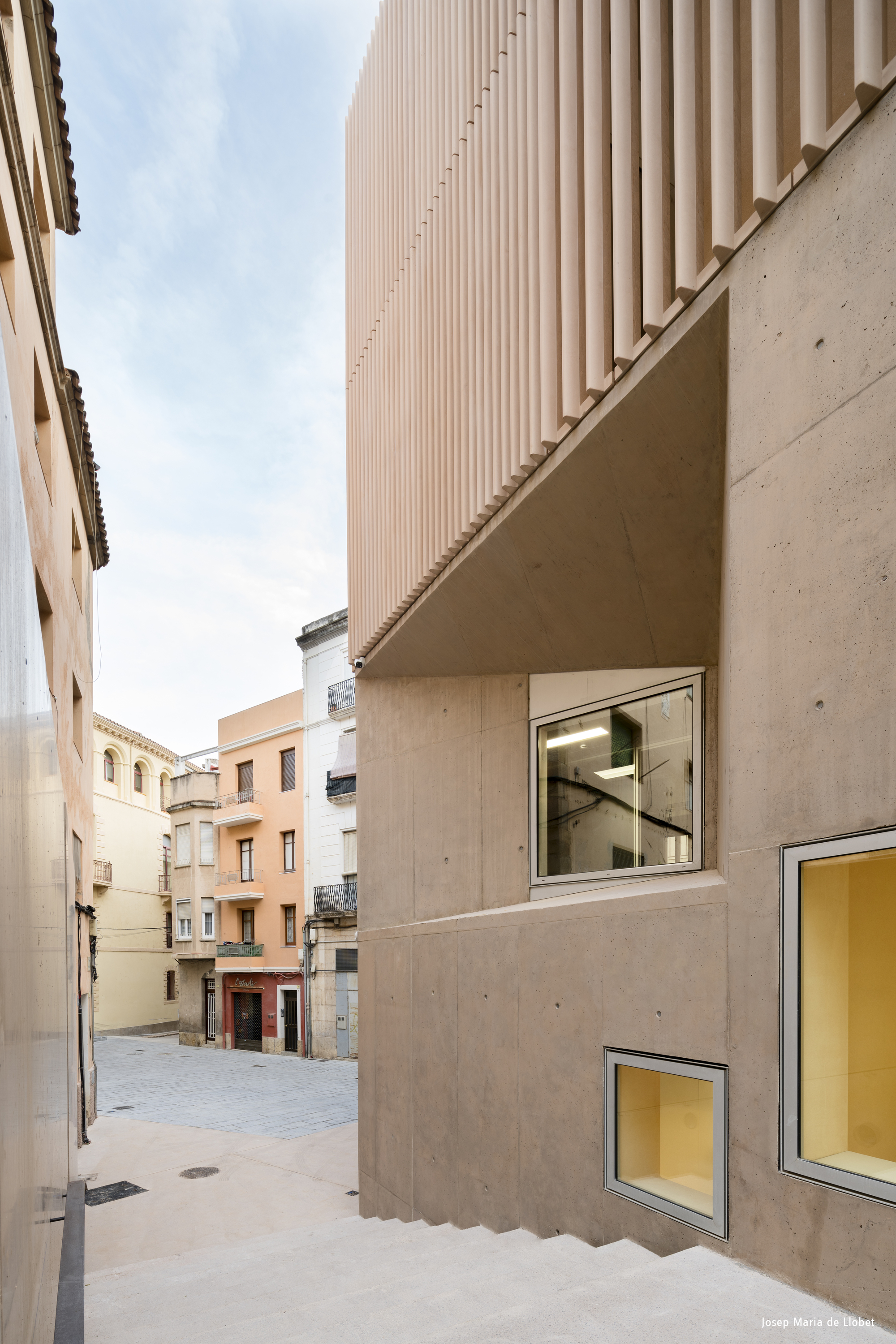 The city of Tortosa throughout its history is built from the overlapping of fortifications, walls, churches and palaces. Its historic center with narrow alleys and complex geometry, adapts on the hillside of the mountain. The new Law courts building responds effectively to the specific judicial program and its strict functional requirements and, to the topography and geometry of the site, located on one of the corners of la “Plaça dels Estudis”.
