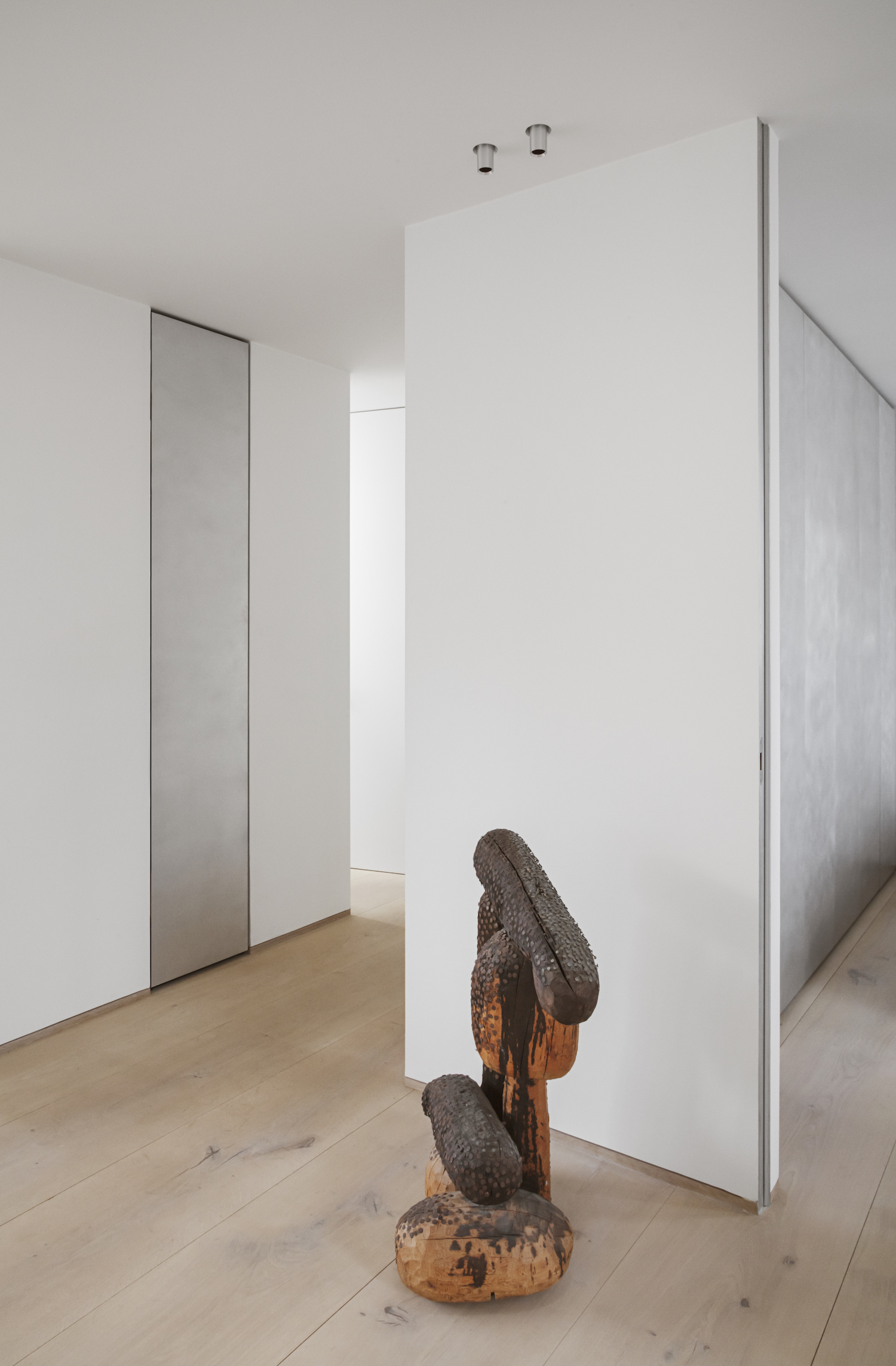To accommodate the client’s wish for a bright and spacious home, Thulstrup focused on interventions that would support such transformation. “By opening up the volumes of the living spaces both vertically and horizontally and using quality materials, I re-introduced a feeling of calmness and balance into a space that was marked by low ceilings and limited natural light”, notes Thulstrup.