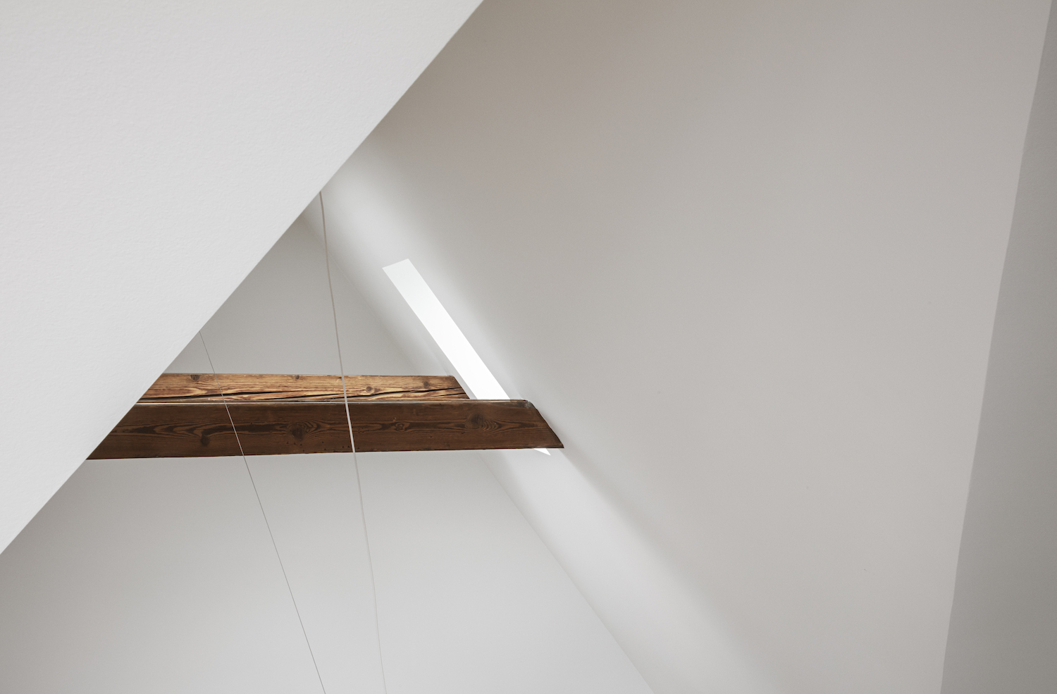 시간의 차이가 있는 두개의 공간을 하나의 장소에 합친다. 리모델링 작업은 기존 것, 현황을 인정하고 현재에 유효한 형태와 기능으로 연결시키는 작업이 필요합니다. 1890년대 지어진 코펜하겐 아파트의 리모델링 작업은 박공지붕 아래, 다락공간을 현재에도 유효한 미니멀 거주공간으로 탈바꿈한 작업입니다. 심플한, 매우 단순화한 백색공간을 바탕으로 기존 목구조는 멋스러운 오브제, 디자인 요소로 앙상블을 이룹니다. 관점에 따라 덧 붙여진 장식물 같이 보이지만, 기존 구조물을 존중하는 디자인 어휘로 바라본다면 시공간을 뛰어 넘는 작업으로 보입니다.