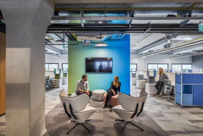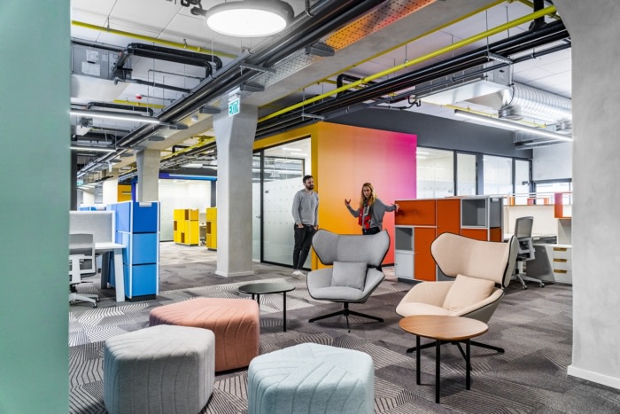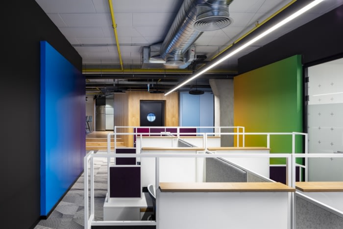 Auerbach Halevy Architects was trusted with the design of the KLA offices, the semiconductor manufacturing company, located in Migdal Ha’Emek, Israel. KLA’s offices are designed as one open space divided into “neighborhoods”, with executive rooms and meeting rooms attached to each neighborhood. Each such neighborhood has been given a bright color that sets its identity apart from the furniture that is custom made for it. To unify the space, despite the multiplicity of colors, the walls that connect the neighborhoods have been painted in colors that gradually change and thus connect continuously.