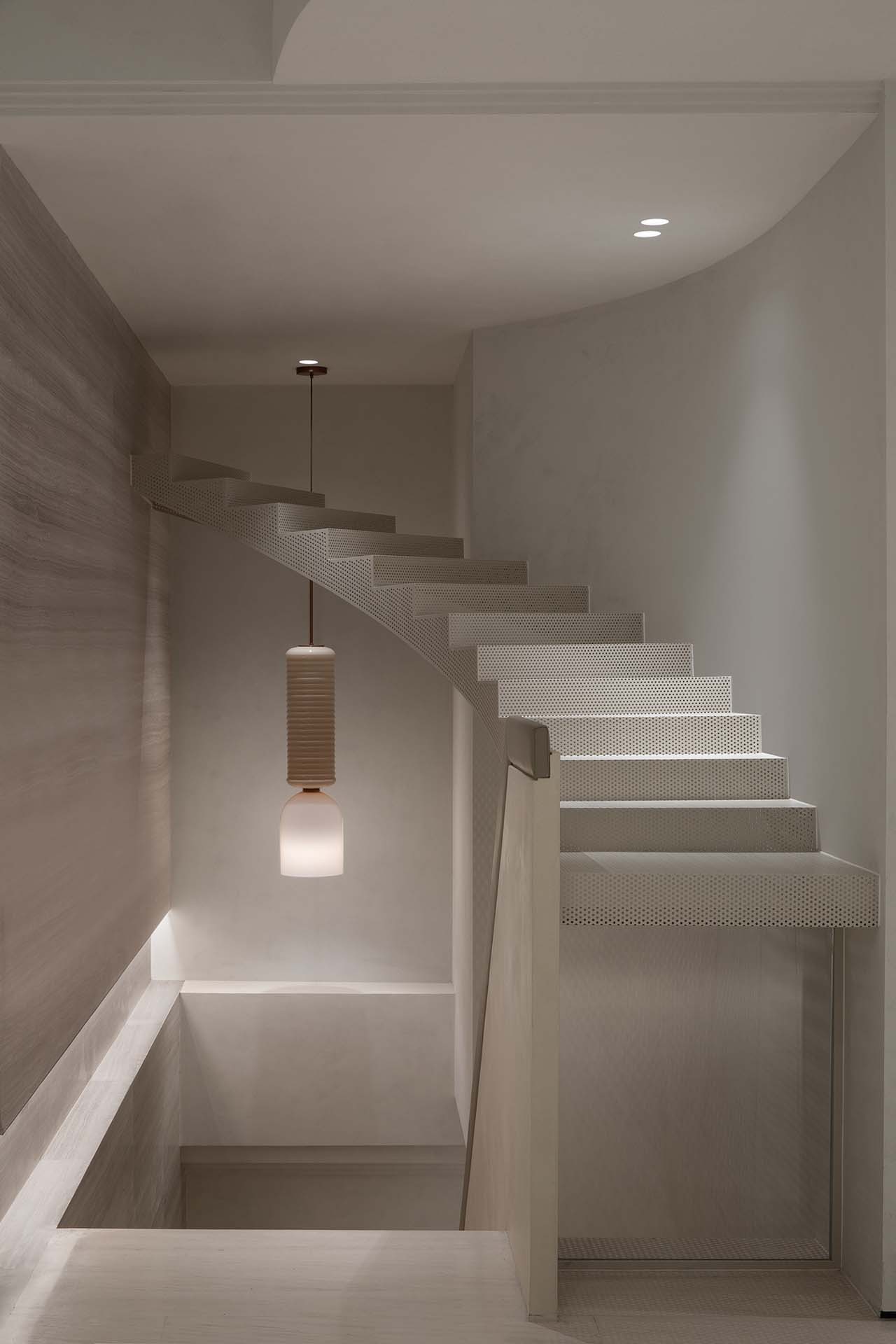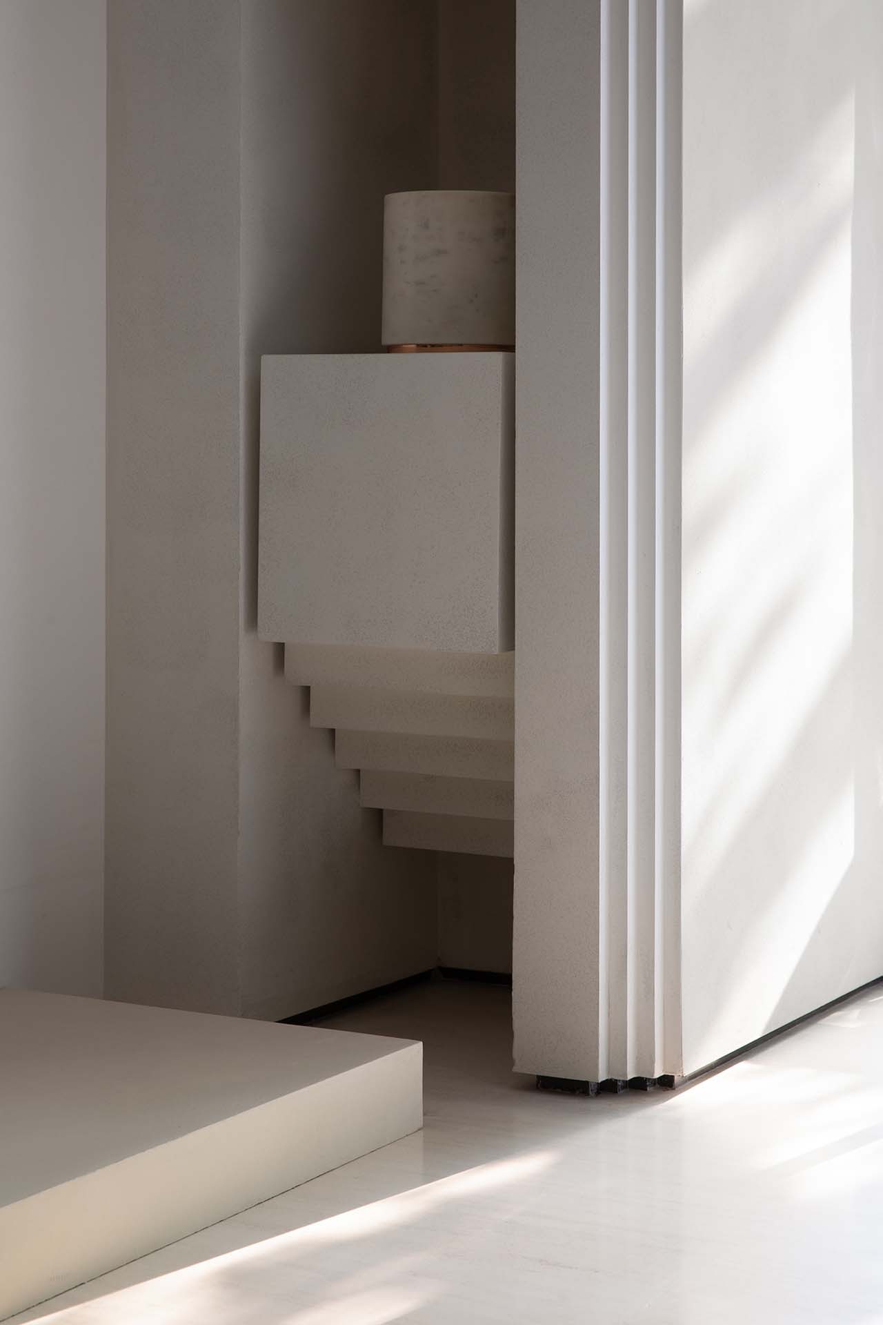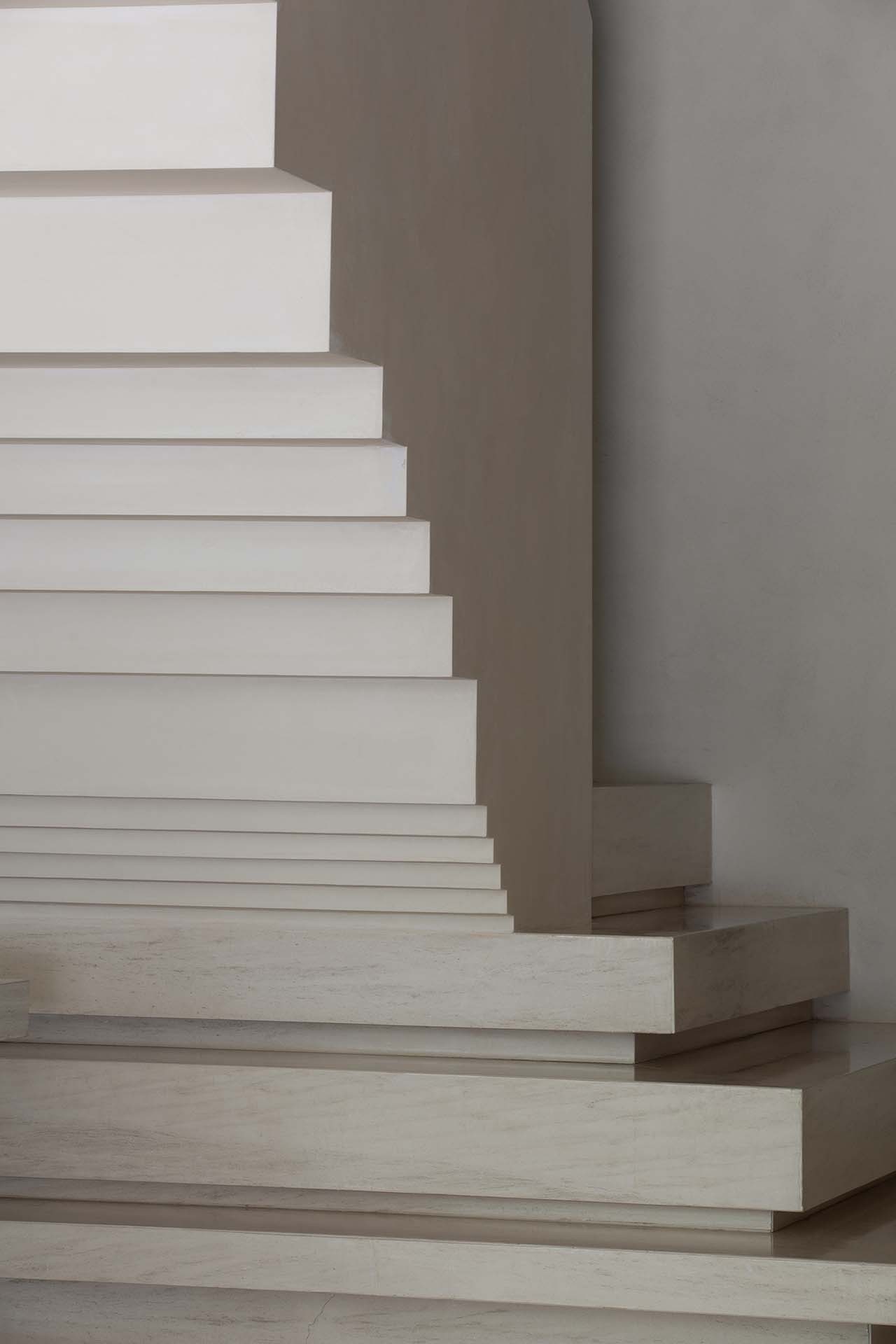 At the same time, the shadows between the stairs faint deep or shallow images indoors. Through the shadows, you can perceive the height of the building and the power of the sculptures, stack the weight of the entity in the void and point out the direction of time when they rise and fall. This thought-provoking profoundness enriches the visual levels of different stairs’ cross-sectional and top views. The picture is still, and the years are tranquil, endowing the light with the outline of the story.