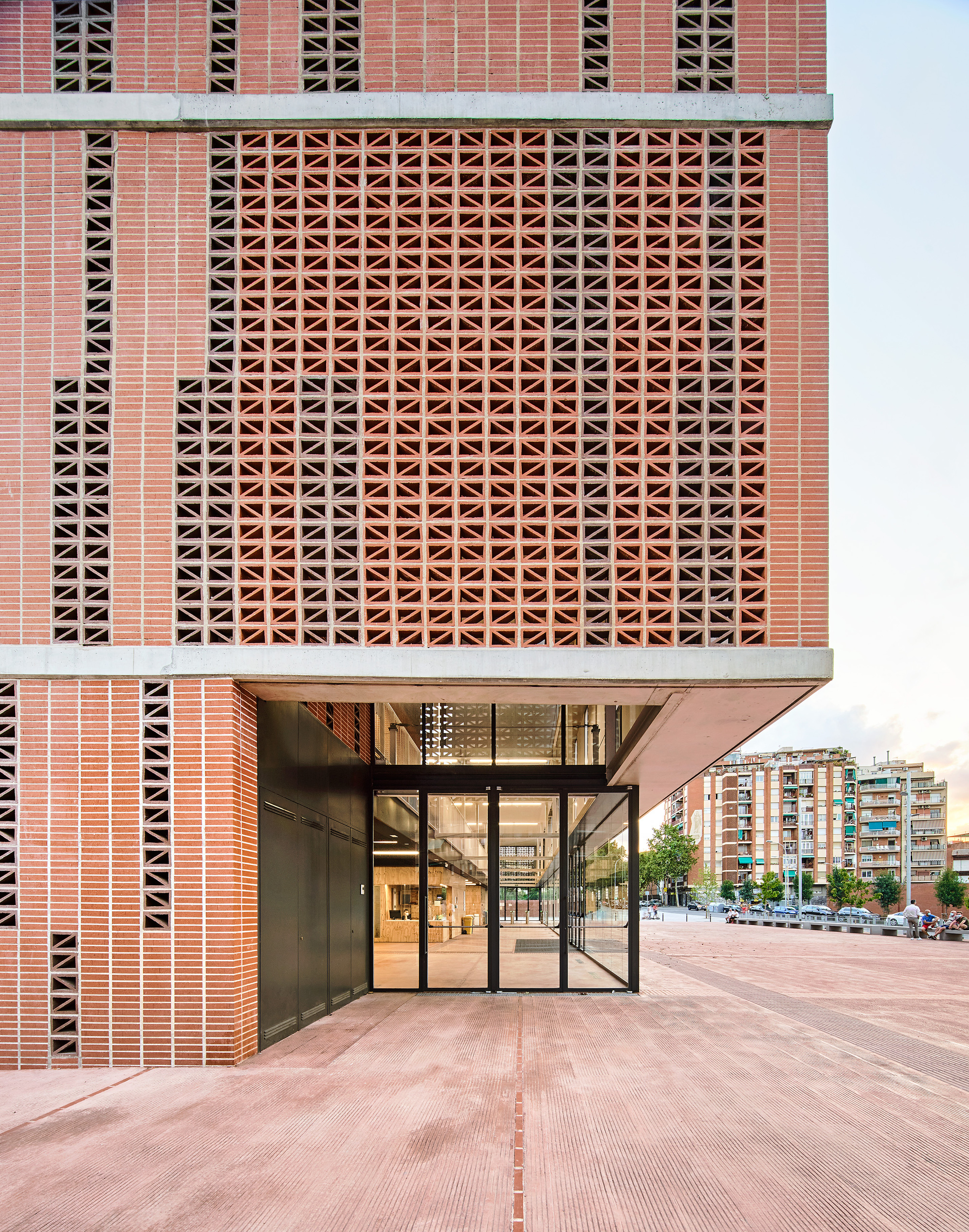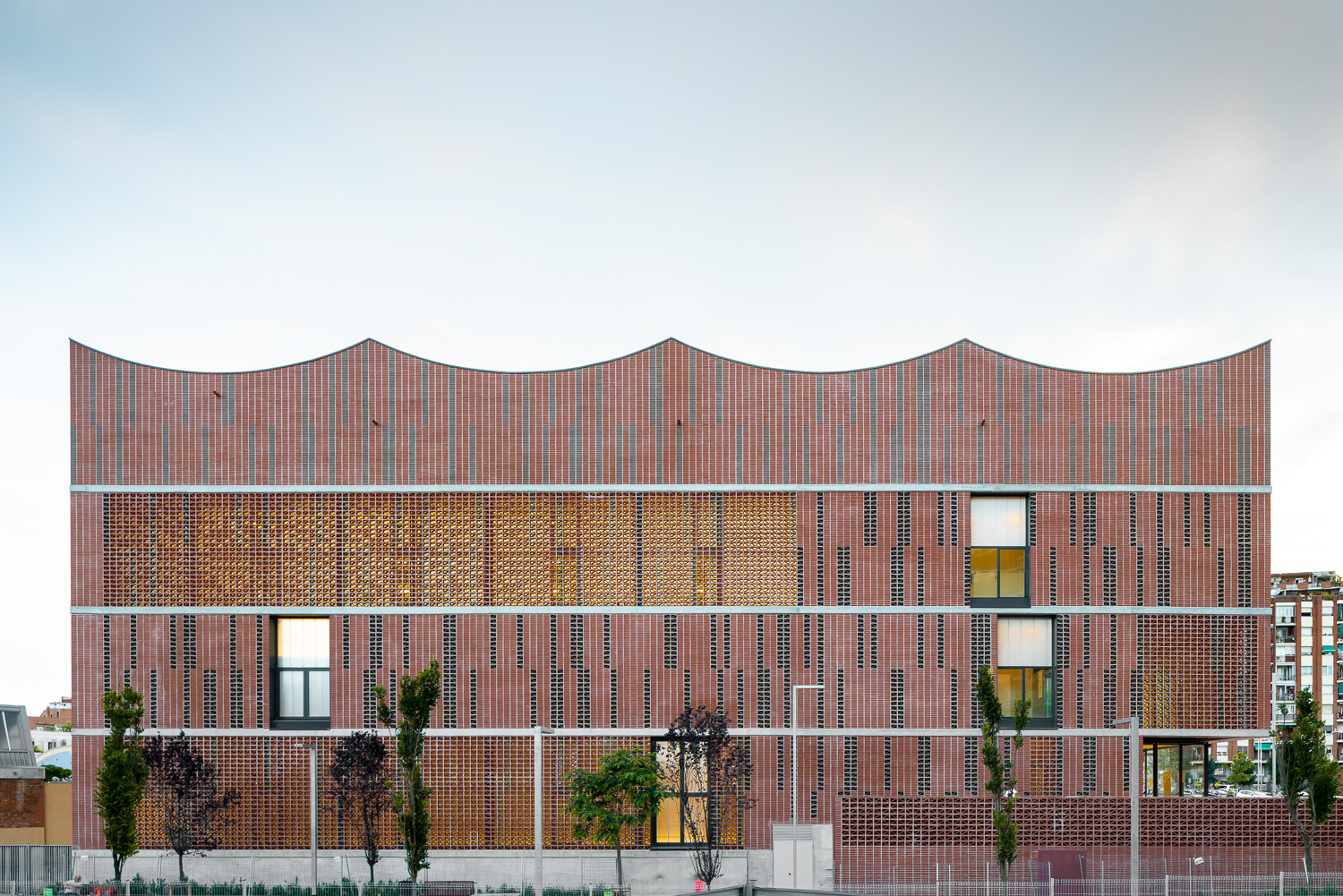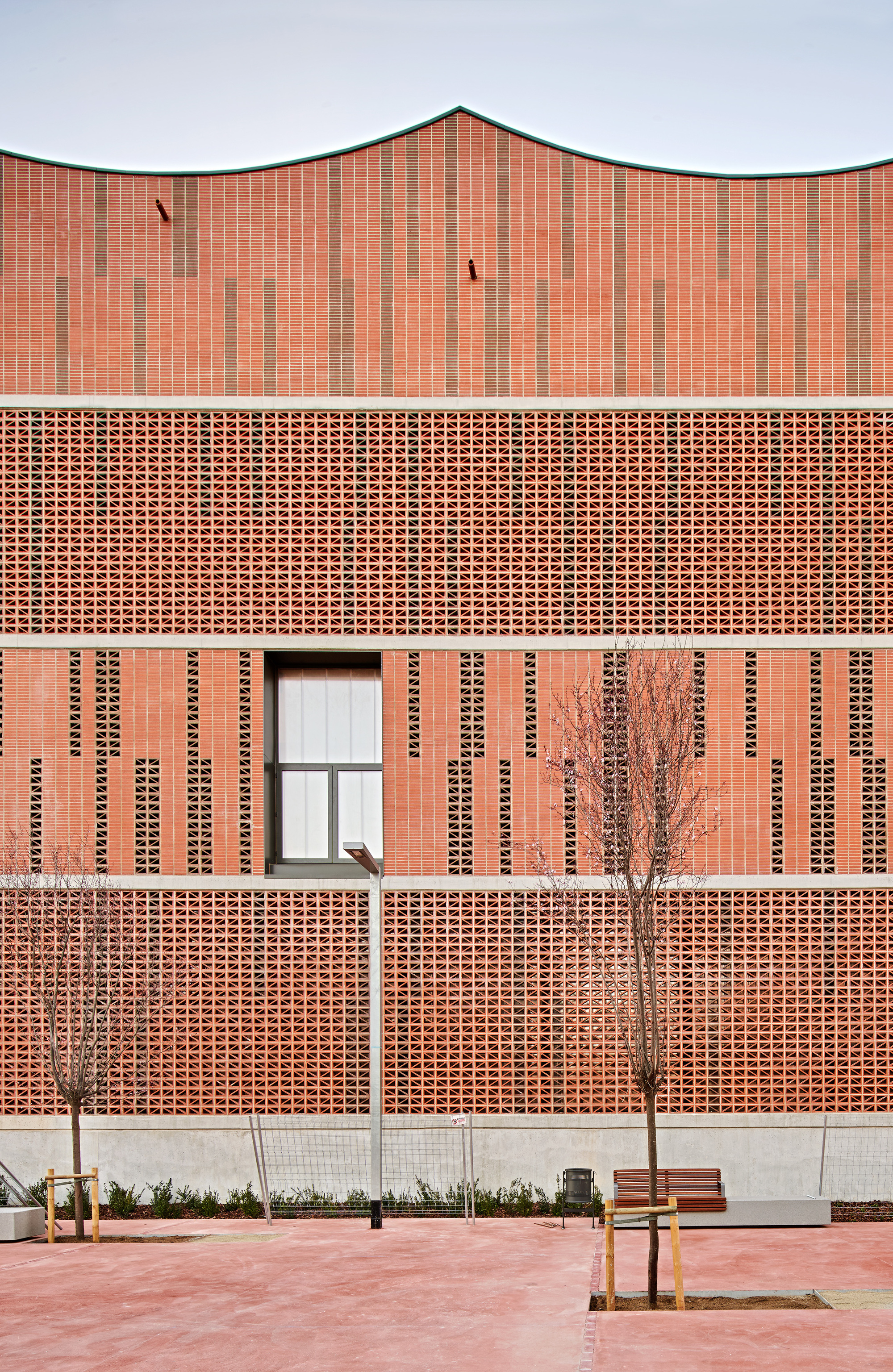 The used construction process arises from the understanding and recovery of the local traditions through the use of materials such as ceramics, very common in old factories, warehouses, workshops and neighbouring industrial buildings. Following the criteria of austerity of resources and means, the construction system itself constitutes in a large part of the building itself and its final finish, avoiding overlapping elements. As in the facades, exposed materials ensure good ageing and long duration. With the aim of lightening the building on all its facades, opaque, translucent or transparent voids and bodies alternate, using ceramic pieces of different formats and colours.