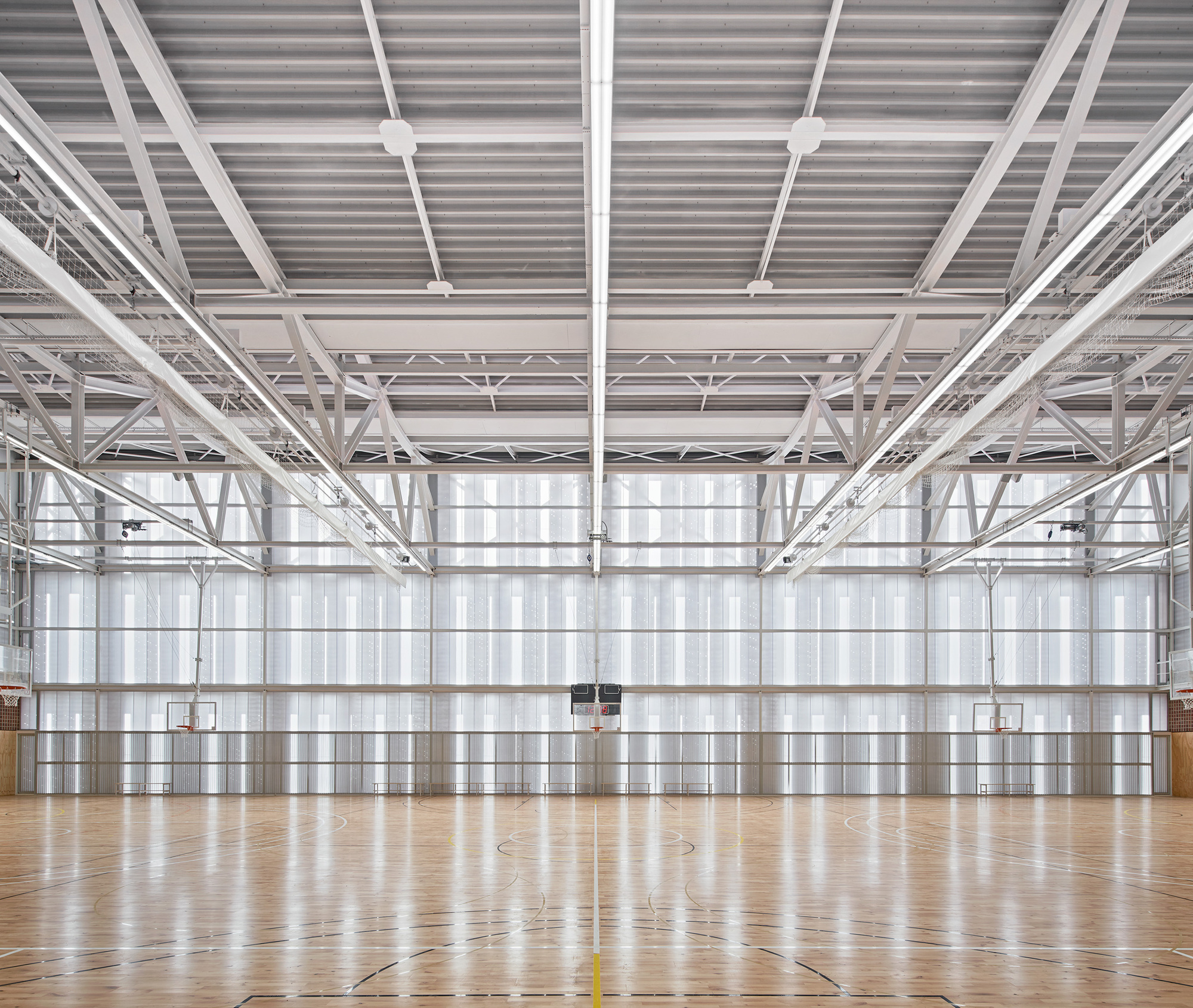 The project by the architects Albert Salazar Junyent and Joan Carles Navarro (partners of AIA), by Antoni Barceló and Bárbara Balanzó (members of the Catalan firm Barceló-Balanzó Arquitectes) and by the architect Gustau Gili Galfetti for the construction of the Camp del Ferro municipal facility in the Sagrera neighbourhood (Barcelona) won the first prize in the public competition called by BIMSA in 2015. The project, with an area of 7,237 m2, began construction in 2017 and now, recently inaugurated, provides the Sant Andreu district with a facility that includes three sports courts, as well as a public space that improves accessibility and connection to the new infrastructure.
