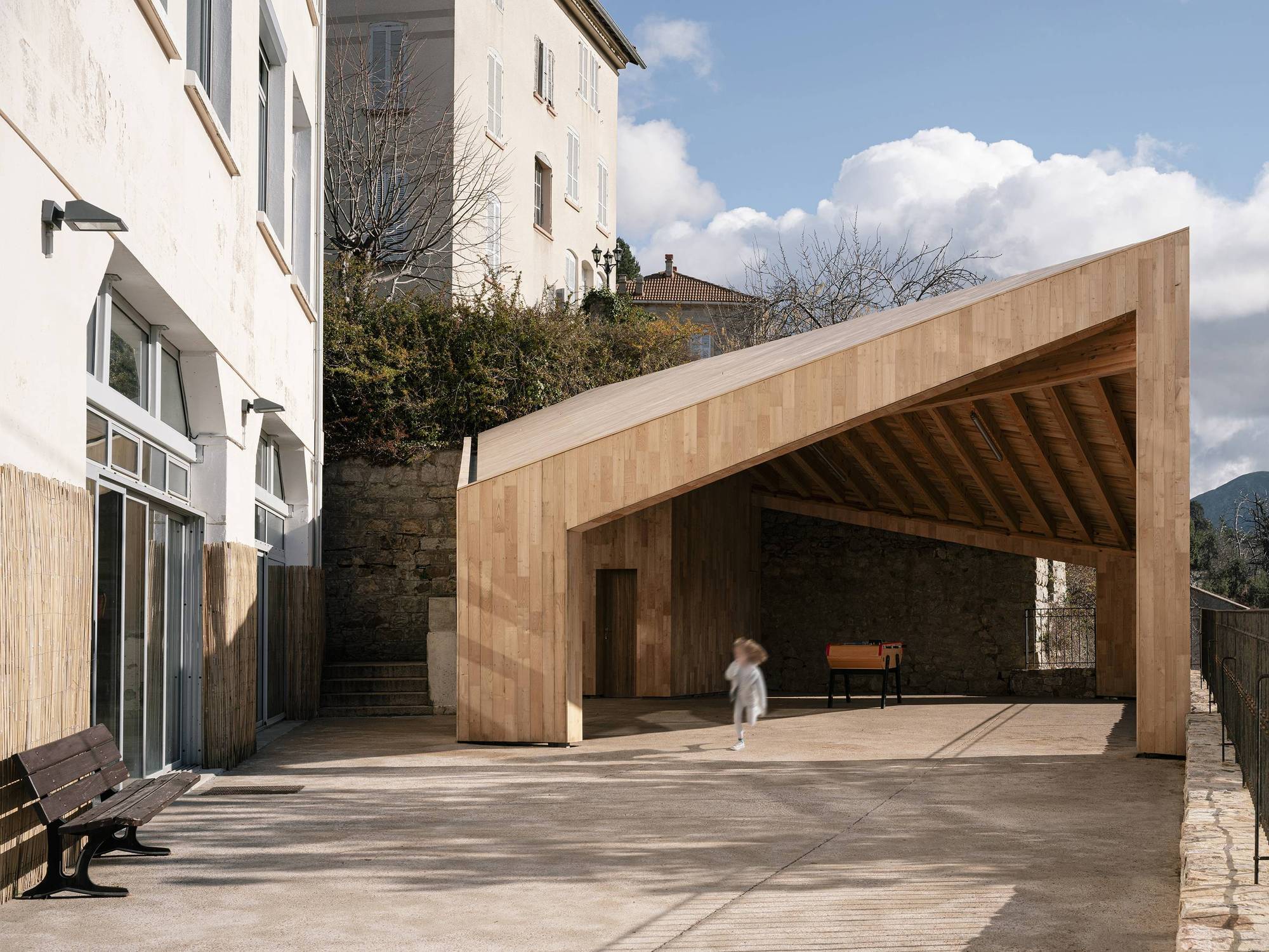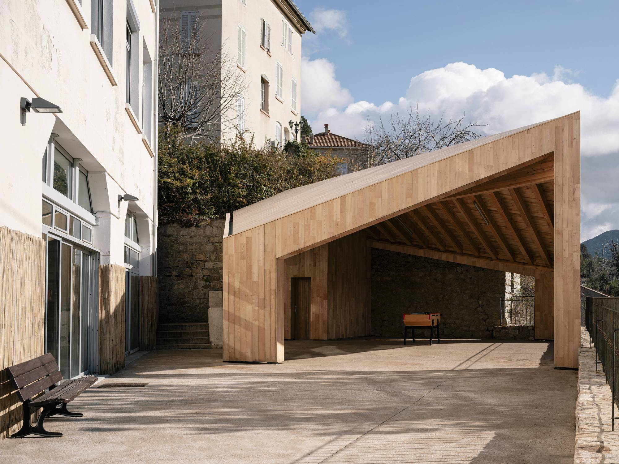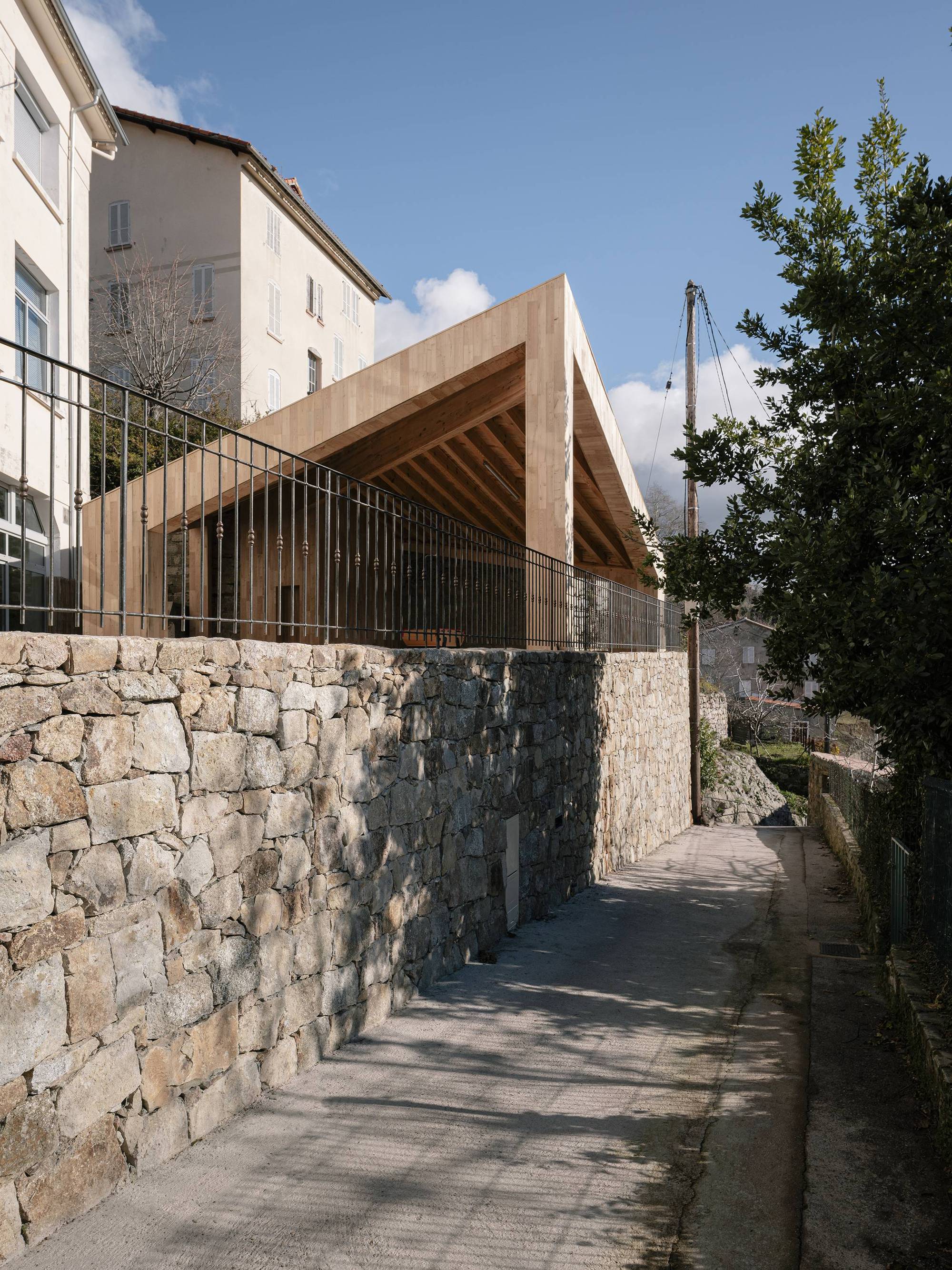 Evisa is a secluded mountain village of 200 souls, with limited access to construction materials and strong meteorological constraints. However, there is an abundance of local resources, such as a Laricio pine and chestnut trees forest and the ancestral know-how of local craftsmen, which were of tremendous economic significance and made Evisa the capital of the micro-region. The completion of this project is the result of a consensual relationship with the client.