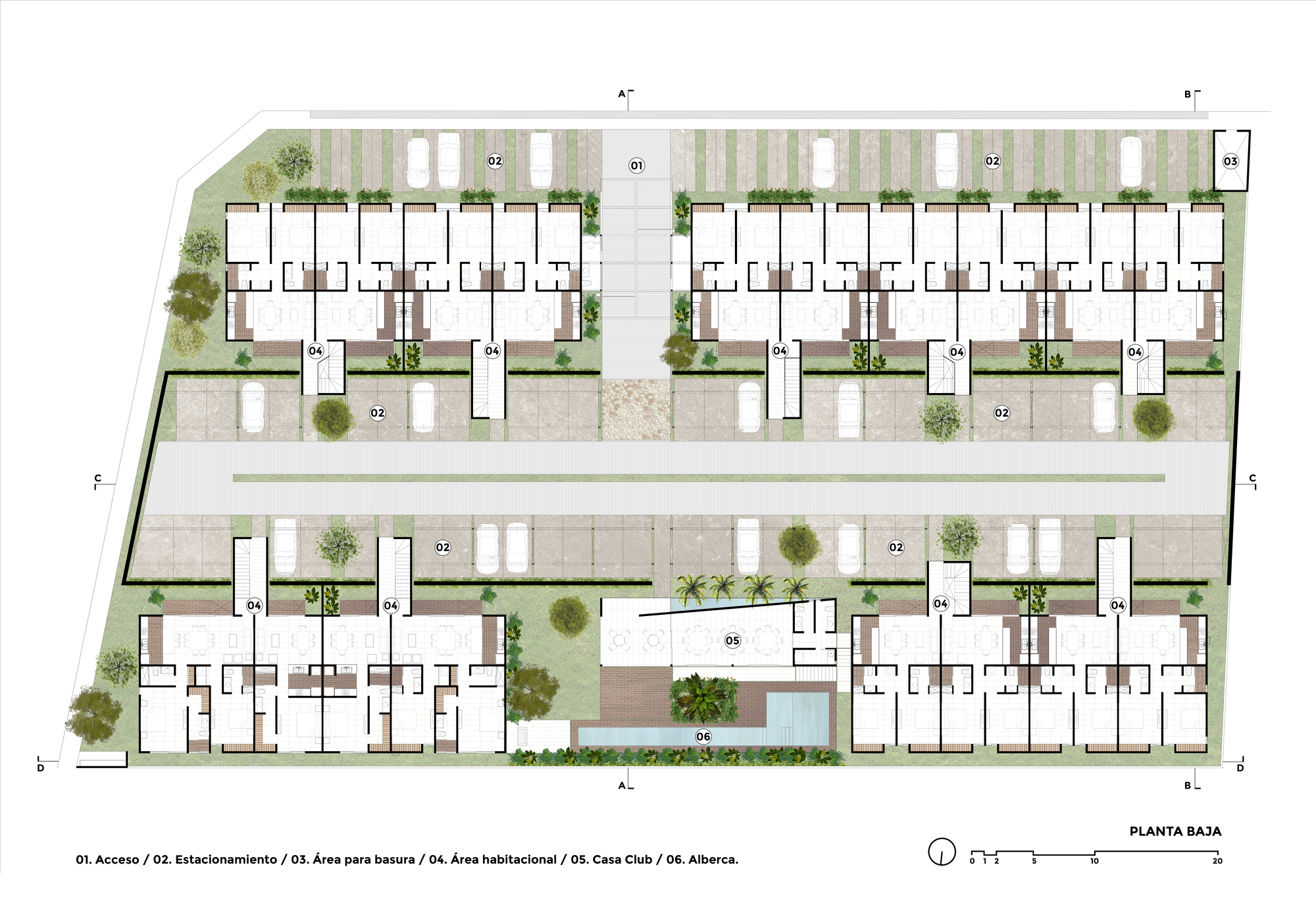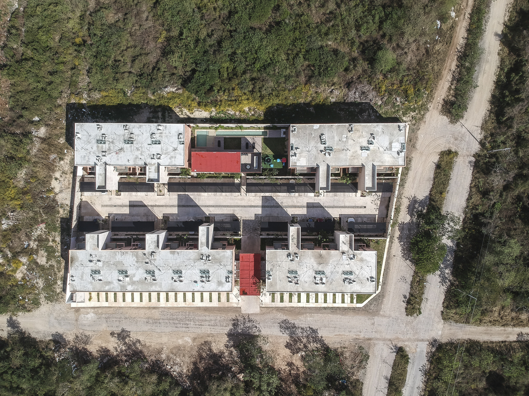 Corazón de Tierra is a multi-family complex consisting of 54 housing units. The project originates due to the great demand and current need for housing in the state. The site is located north of the city of Mérida in the state of Yucatán, on a rectangular-shaped corner lot facing south-north, with a surface of 4,700 m2.