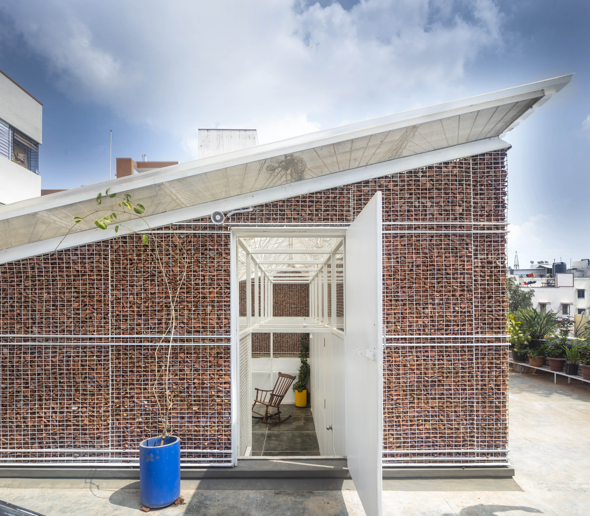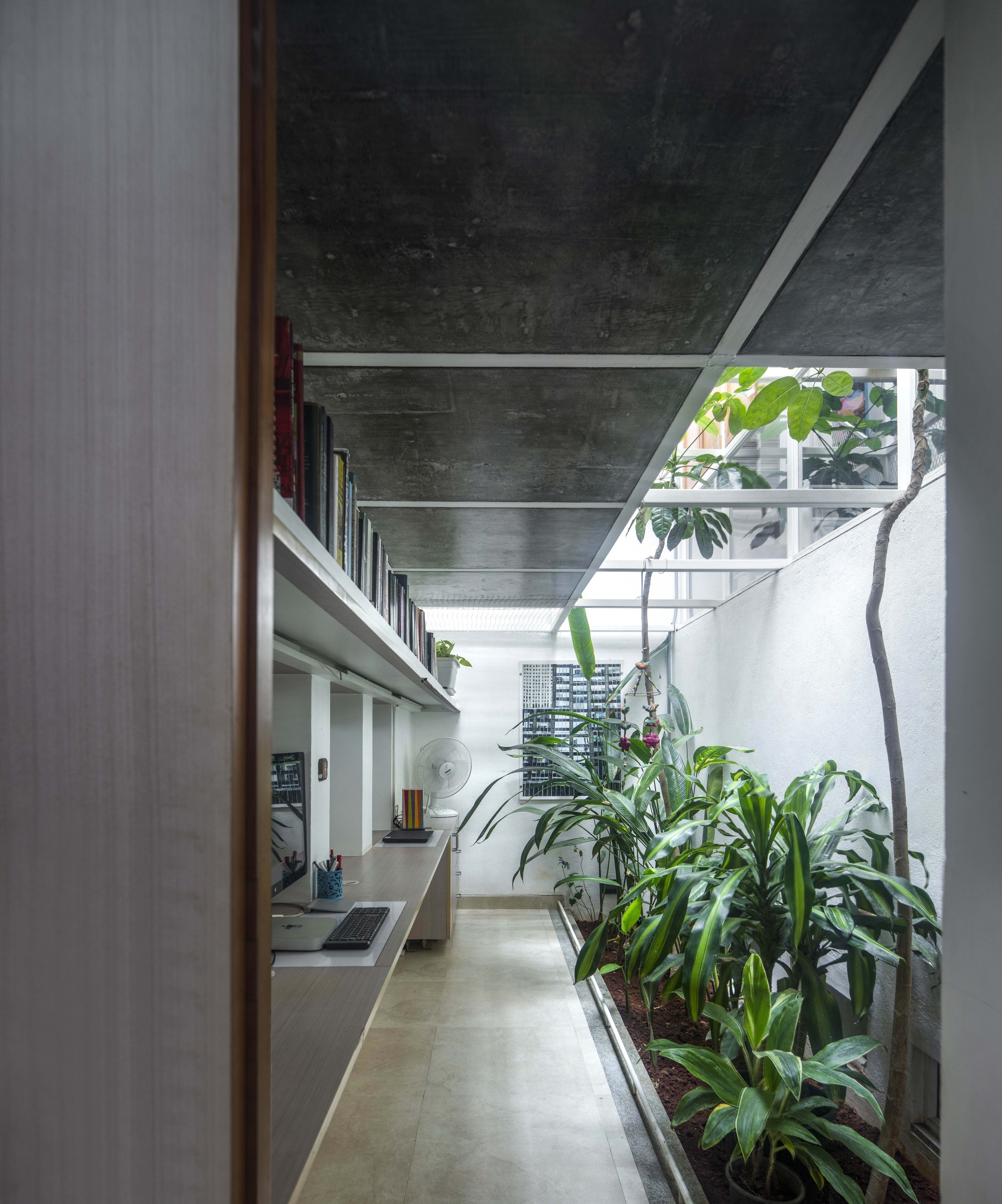 The format of the house came into question once their son moved to Bangalore. A reconsolidation of the house was needed. The idea of the Scaffold house stems from a pragmatic approach towards renovation, clarifying the understanding of the 'new' in context to the 'old'.