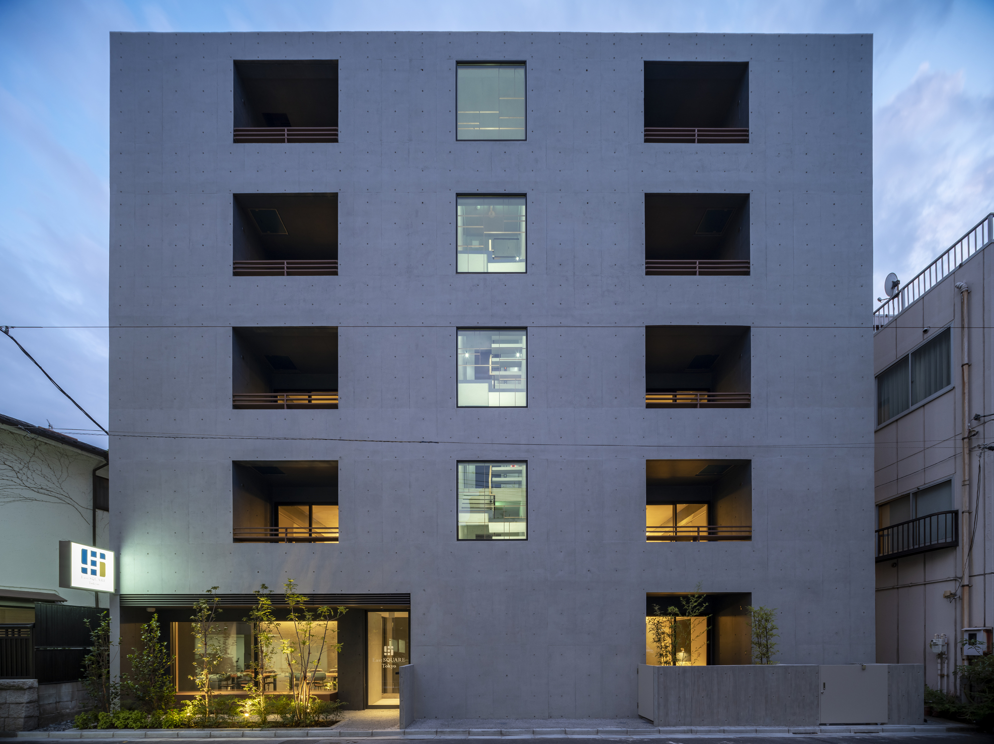 Using the local community to convey the charm of downtown - Situated in Koto ward, Morishita used to prosper as a temple town during the Edo period. Currently standing as a residential and commercial area, we can still find some long-established stores participating in an old fashion atmosphere typical of the downtown. In order to absorb this charming familiarity, we created a hotel that would introduce to visitors the local stores. An opened terrace is placed in front of the entrance, aiming to create a new place of communication for the guests and the neighborhood.