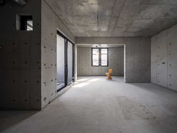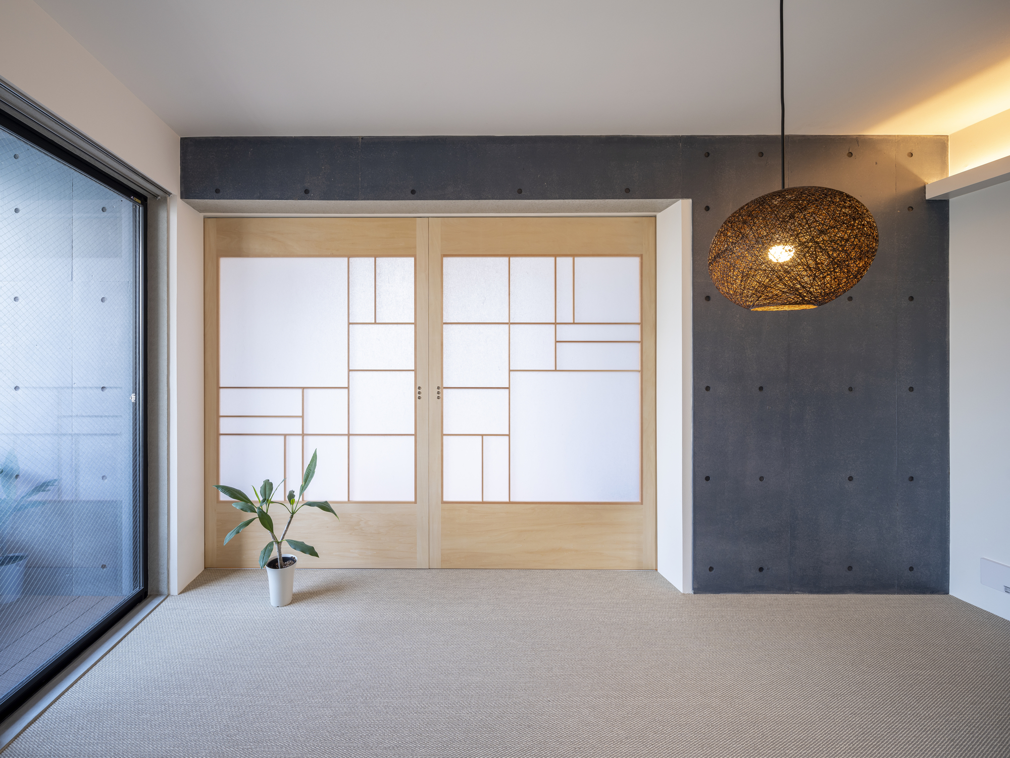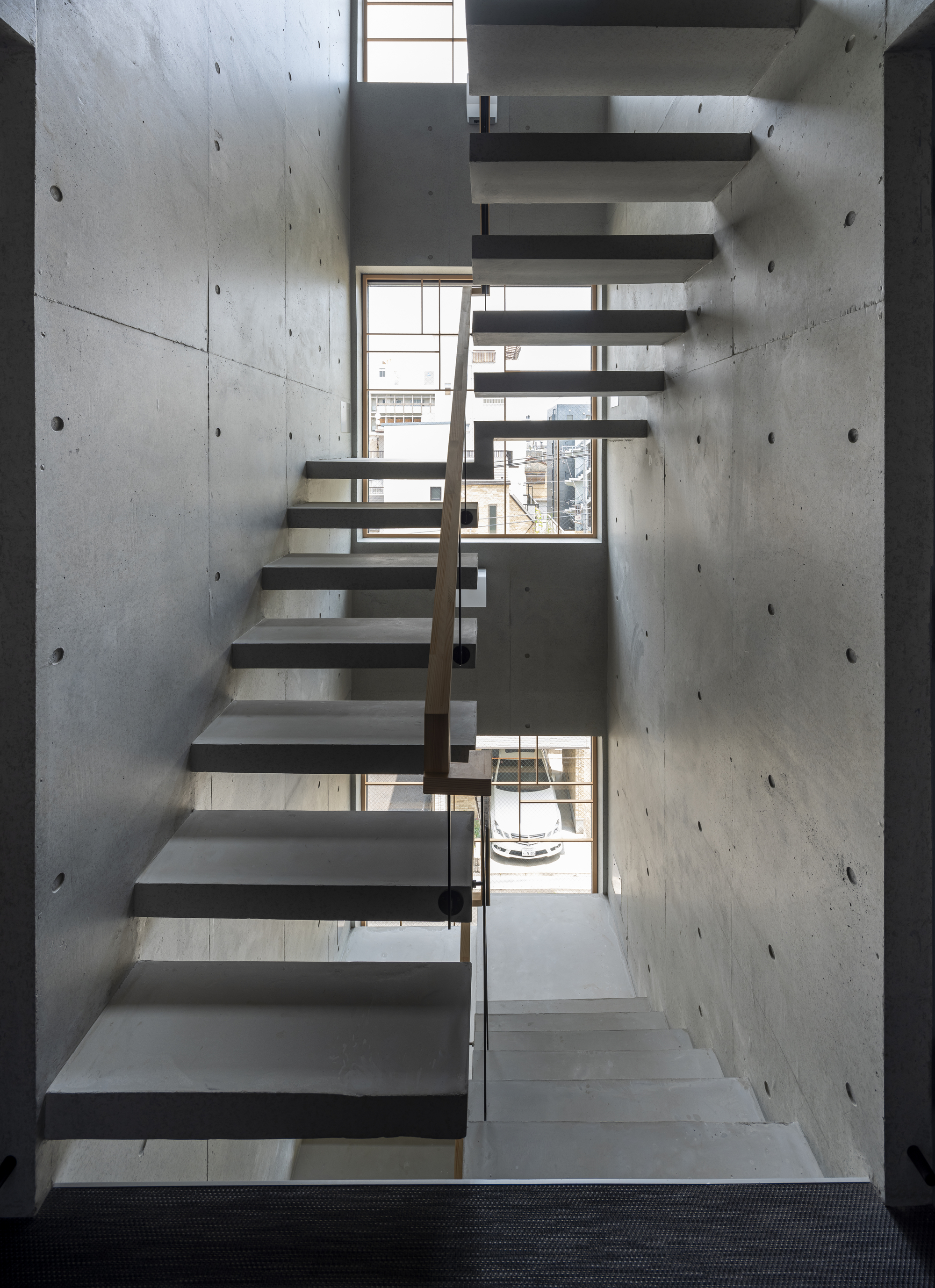 We chose to use a modern structure made of reinforced concrete, while keeping a Japanese traditional way to conceive the space. For example, the reversed concrete beam is used for the upper tatami room, while the lower floor contains a traditional sitting table and lower chairs. This configuration ensures privacy from the outside, and a sense of security. On the other hand, by widening the opening on the ceiling, we encourage the line of sight upwards. This gives a feeling of openness to the outside surroundings, and the opportunity to admire the exceptional location and feel a sense of unity with the city.
