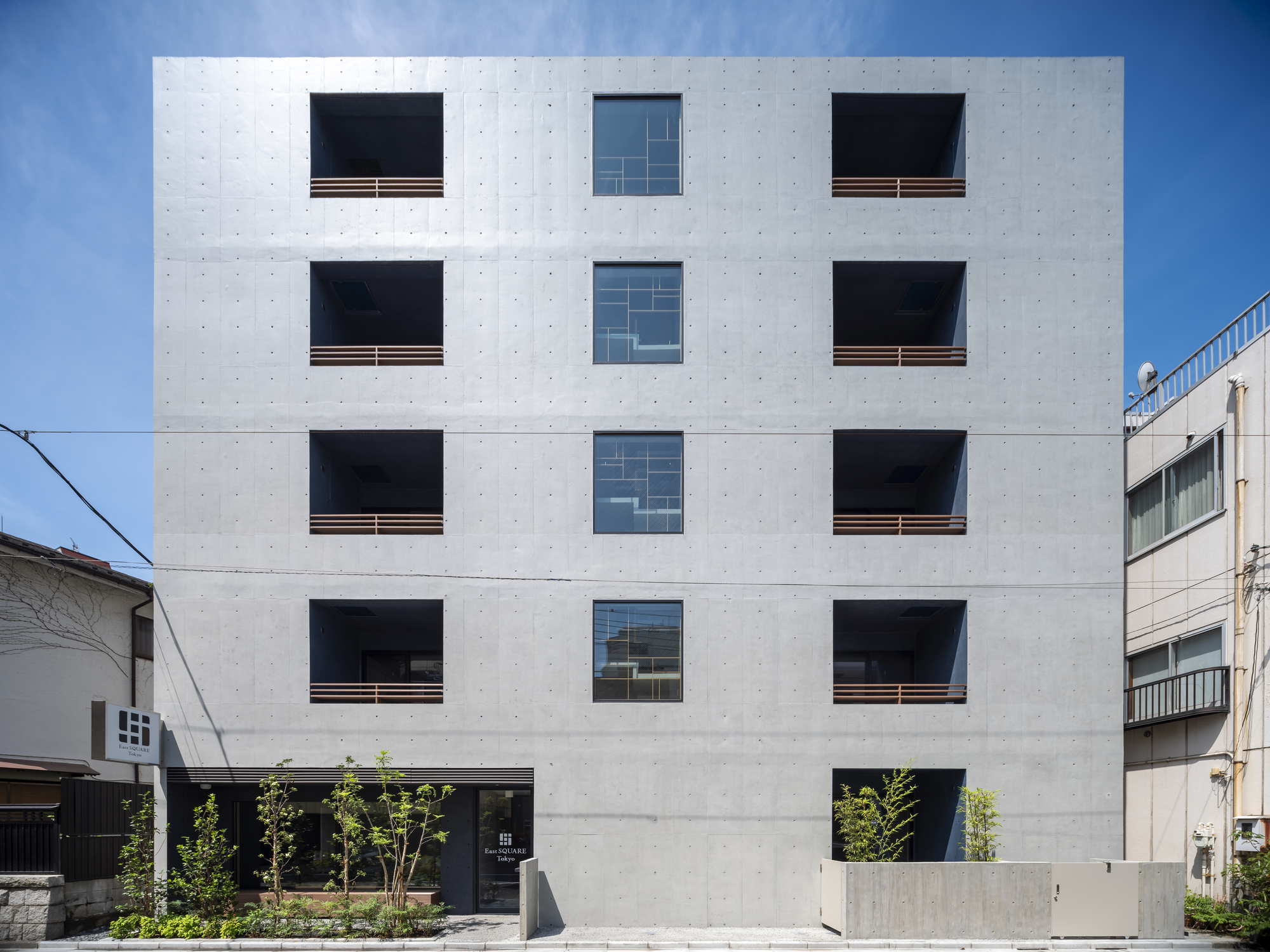 Using the local community to convey the charm of downtown - Situated in Koto ward, Morishita used to prosper as a temple town during the Edo period. Currently standing as a residential and commercial area, we can still find some long-established stores participating in an old fashion atmosphere typical of the downtown. In order to absorb this charming familiarity, we created a hotel that would introduce to visitors the local stores. An opened terrace is placed in front of the entrance, aiming to create a new place of communication for the guests and the neighborhood.