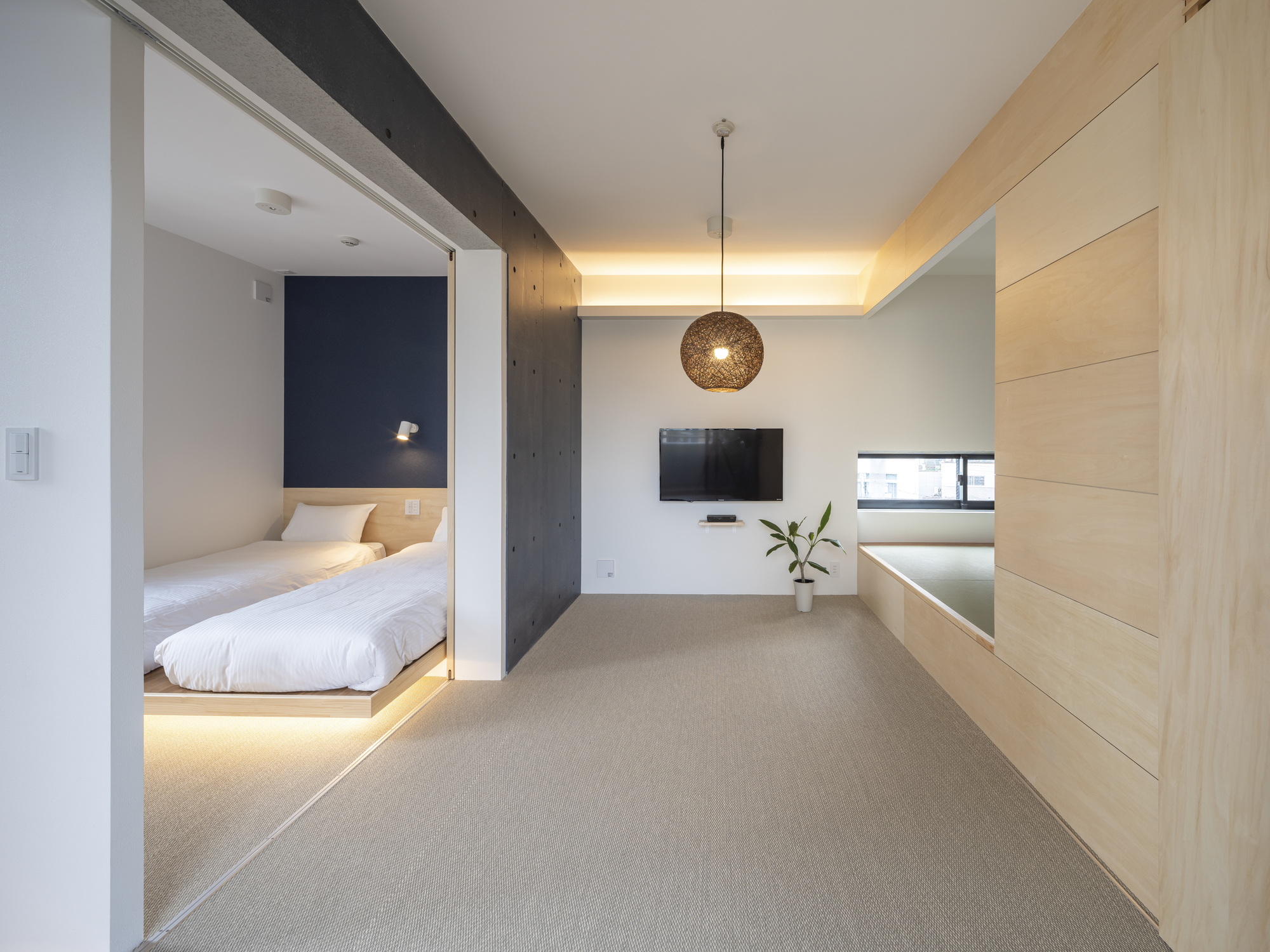 일본 전통방식의 주거를 재해석한 호텔 프로젝트 입니다. 좌식생활의 다다미방을 바탕으로 싱글 또는 트윈베드 타입의 객실이 준비됩니다. 현대적이면서도 정갈한 공간이 제공됩니다.