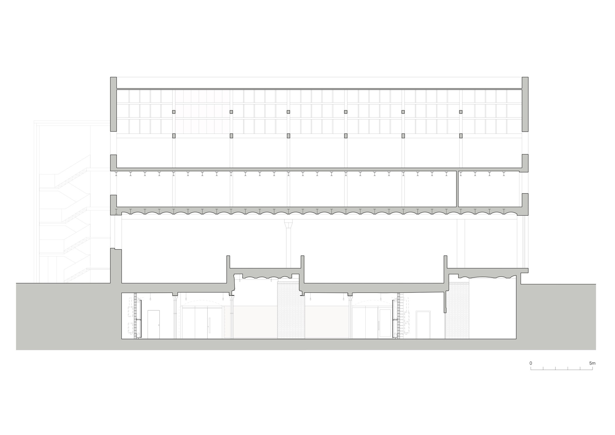 The new entrance from the museum’s Lower Yard rehabilitates the vaulted under- croft of the historic viaduct, also known as the “Pineapple Line” (over which railway tracks run into the New Warehouse), now transforming this area into a bright and welcoming space, which clearly orientates visitors and provides an uplifting arrival.