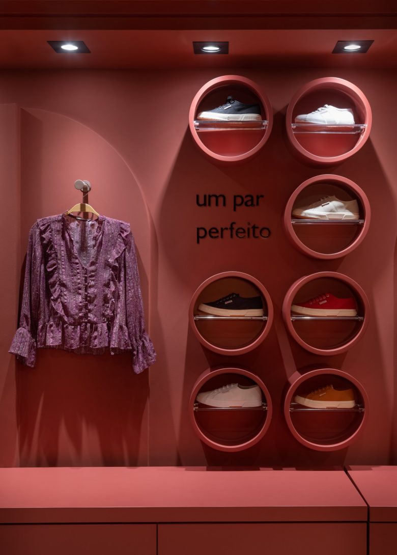 Após o coração da romã, chegamos aos provadores – pensados para a melhor experiência possível nesse local, onde nos conectamos com nossa essência. A Romã segue uma sequência de cores e de arcos que trazem sensações diversas para quem percorre a loja e se conecta com a marca.