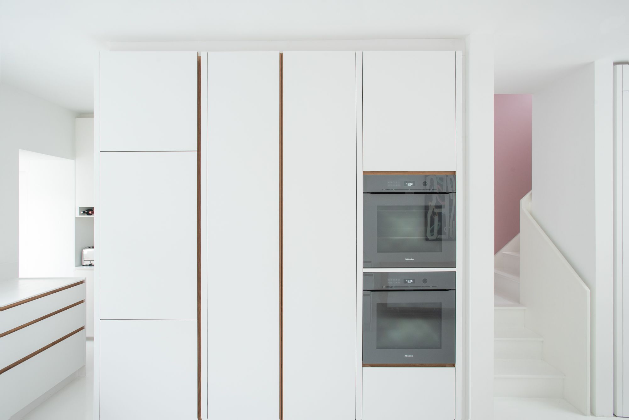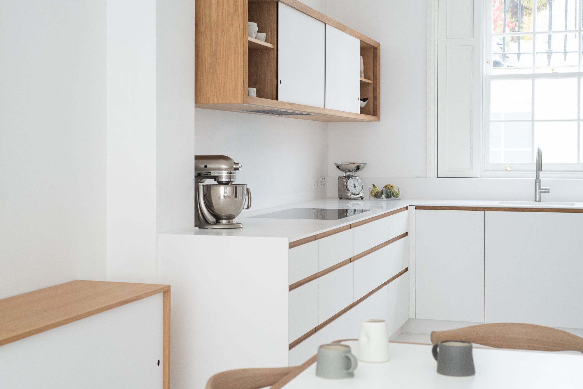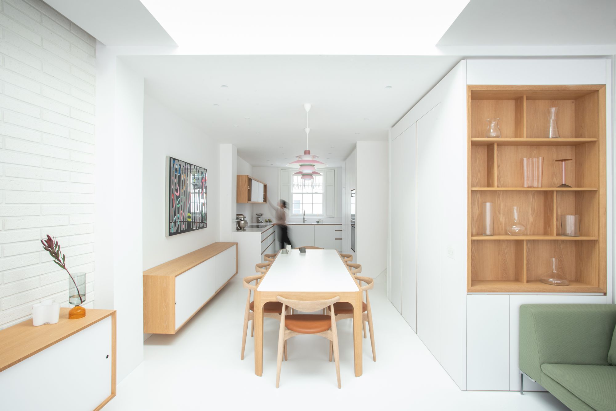 The layout, materials and details were all tailored to the requirements of the client whom the architects worked with a decade earlier. In order to make the most of the tight plot, the entire lowest level was excavated, creating an efficient yet generous, full width living space that opens into a sunken garden. A sense of calmness can be attributed to the restrained material palette, well positioned glazing and carefully integrated storage and amenities. An exquisitely crafted kitchen by Jack Trench completes the light filled living space that feels a world away from the property’s previous incarnation.