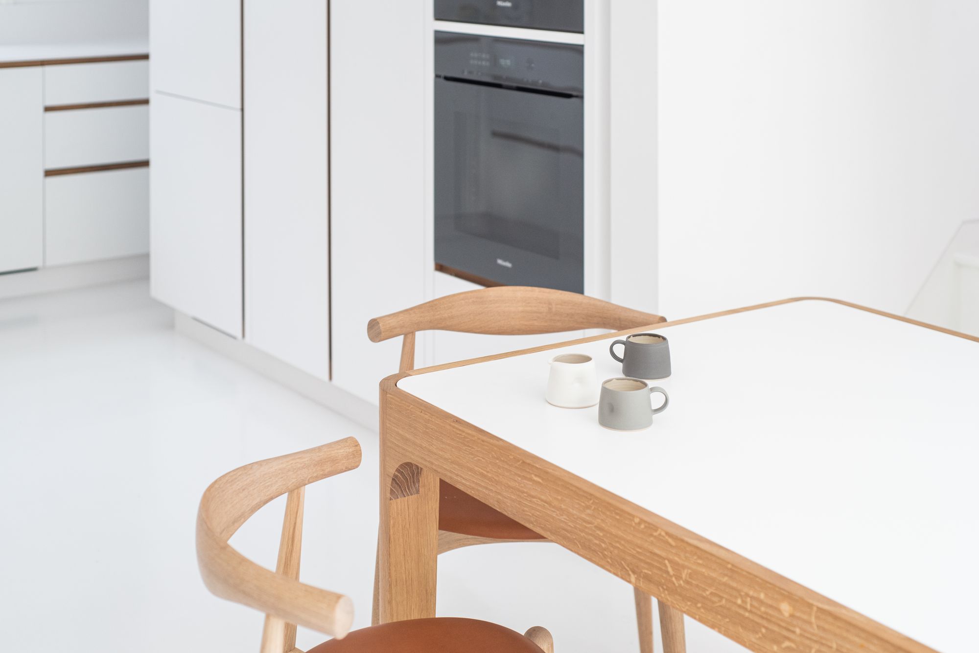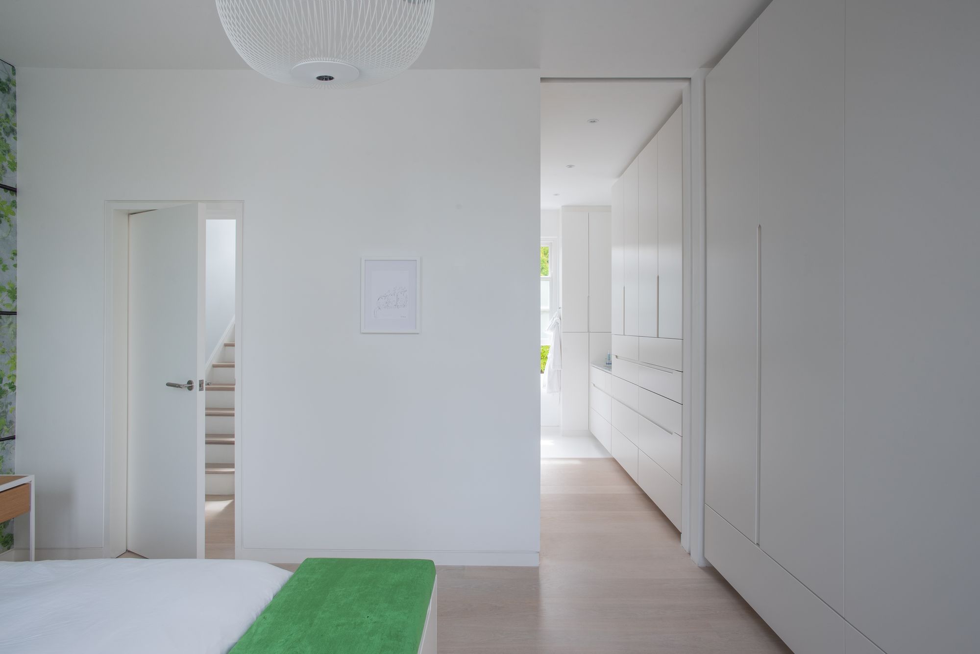 정갈한 백색을 바탕으로 따뜻한 질감의 원목이 군데군데 삽입되어, 분위기의 발란스를 맞춥니다. 이 집의 가장 큰 핵심은 정원을 중심으로 하는 공용공간; 거실, 주방 그리고 식당입니다. 원활한 소통을 이끄는 장소로 거주자에게 제공됩니다.