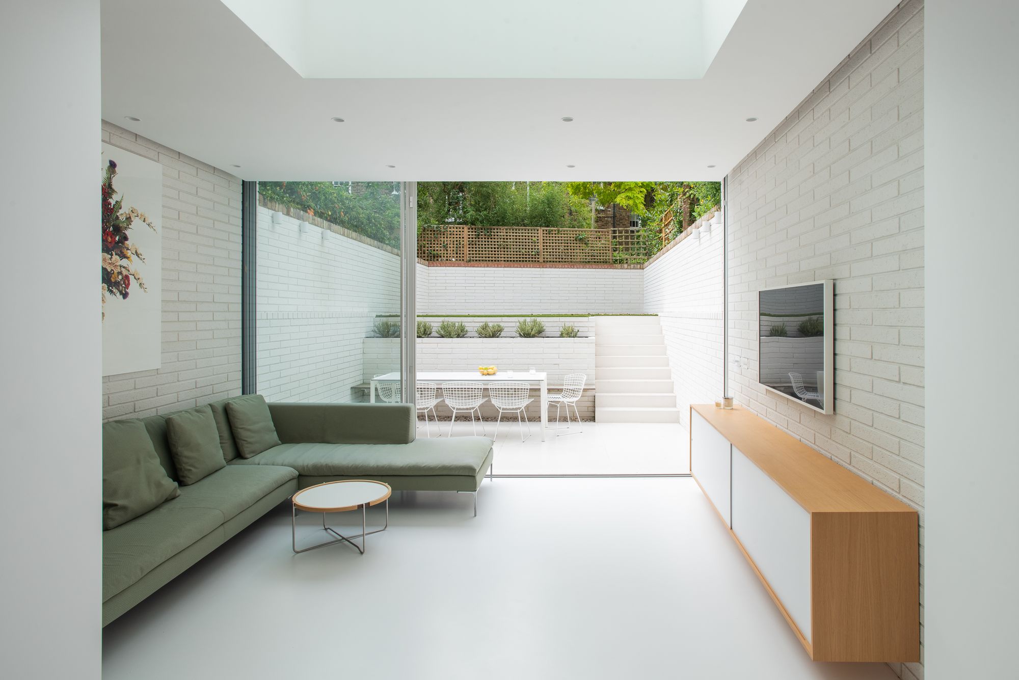 Rydon Street is a minimal home located in London, United Kingdom, designed by Moxon Architects. This project carefully inserts a completely modern living space within a sensitively restored traditional Victorian terraced house in Islington, London. Chosen for its south facing garden, the tall yet narrow building was oppressively cellular and disconnected from the rear garden, both factors at odds with the client’s lifestyle. The entire building was reconfigured from bottom to top, maintaining the overall hierarchy of entertaining spaces at the bottom with cosier private bedrooms above.