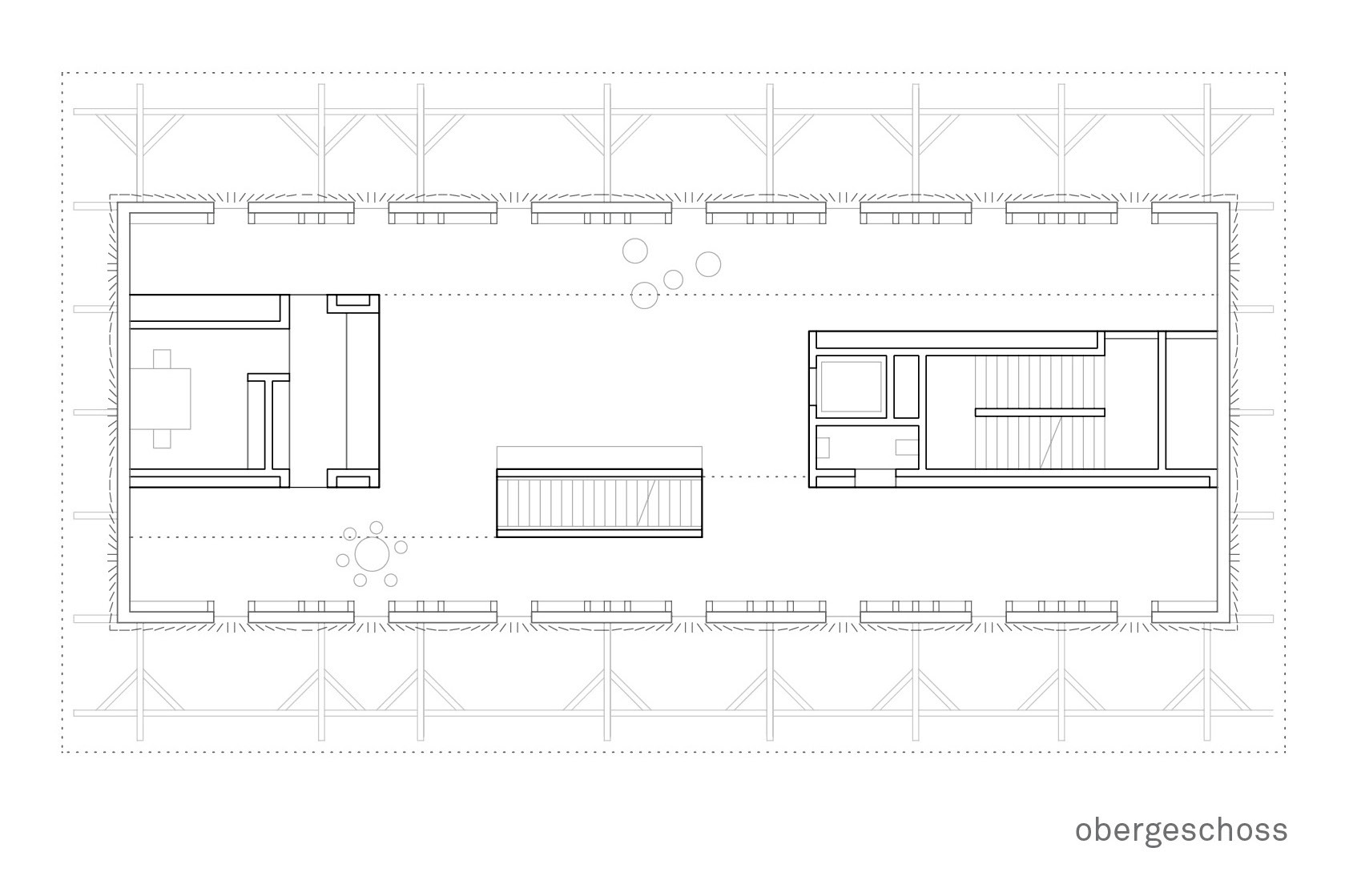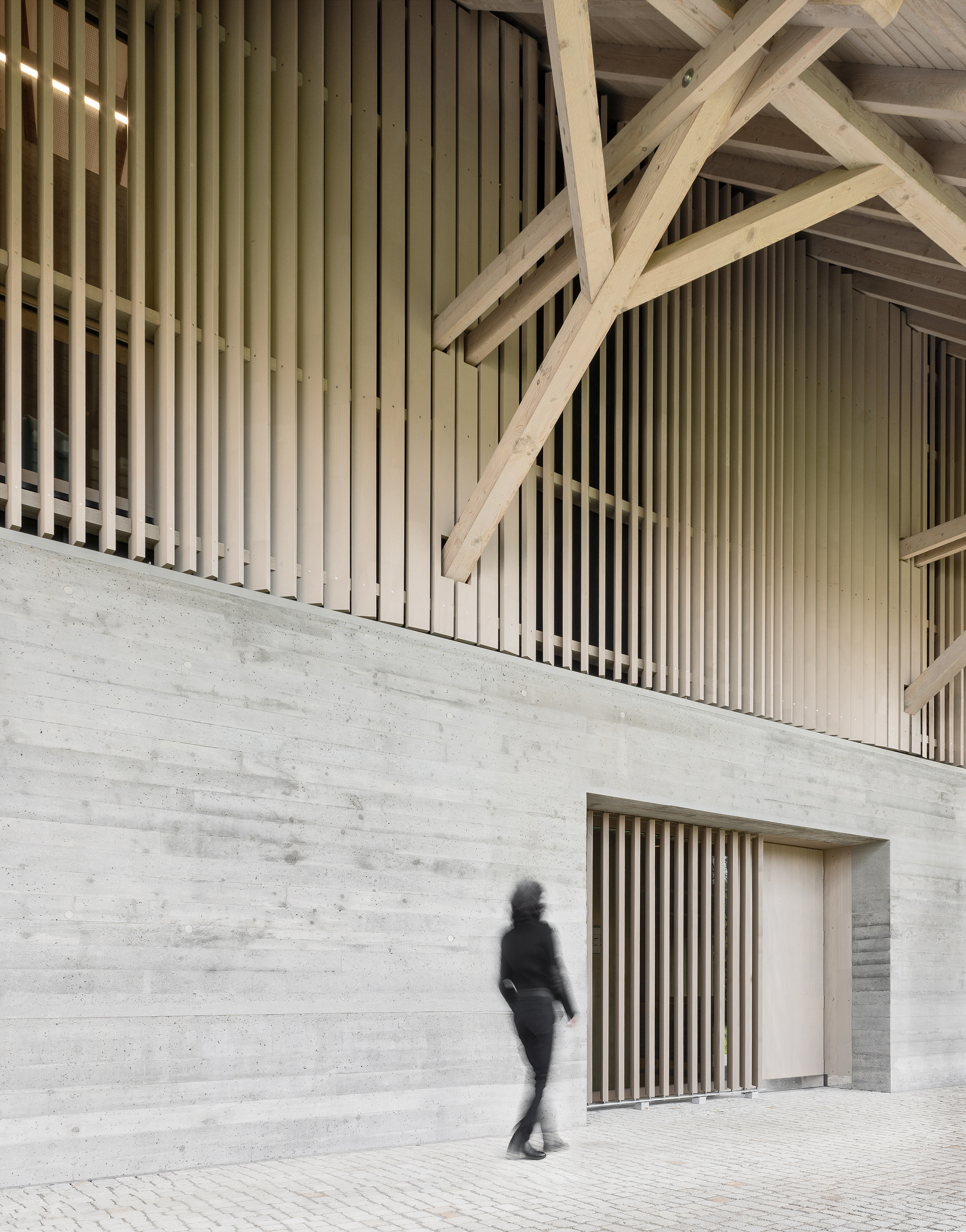 Above the new base, delicate wooden openwork now replaces the old facade, reacting to the existing structure sensitively and altering it gently. Proceeding from the historical significance of the stable’s architecture and the emotional ties people have to it, the building was resituated in the present, using few architectural means and without suppressing its history. By maintaining the existing urban structure, with no external addition and no change to the striking, deeply overhanging saddleback roof, the preservation-worthy historical building fabric was strengthened.