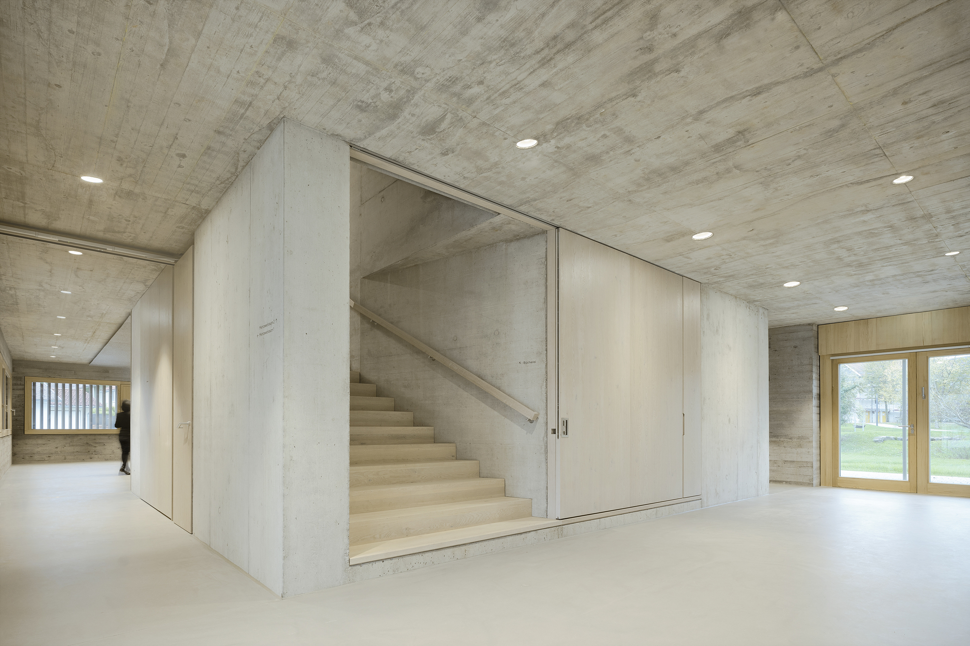 To this end, the barn was revamped with simple, precisely conceived interventions. Its stone-like new base, homogeneously constructed of insulating concrete with deep, generously proportioned reveals, preserves the solid impression of the original. The new openings not only admit significantly more daylight inside, but also enable the entire interior to be experienced in an entirely fresh way – inside and outside open up to each other on the ground floor through the large glazed openings.