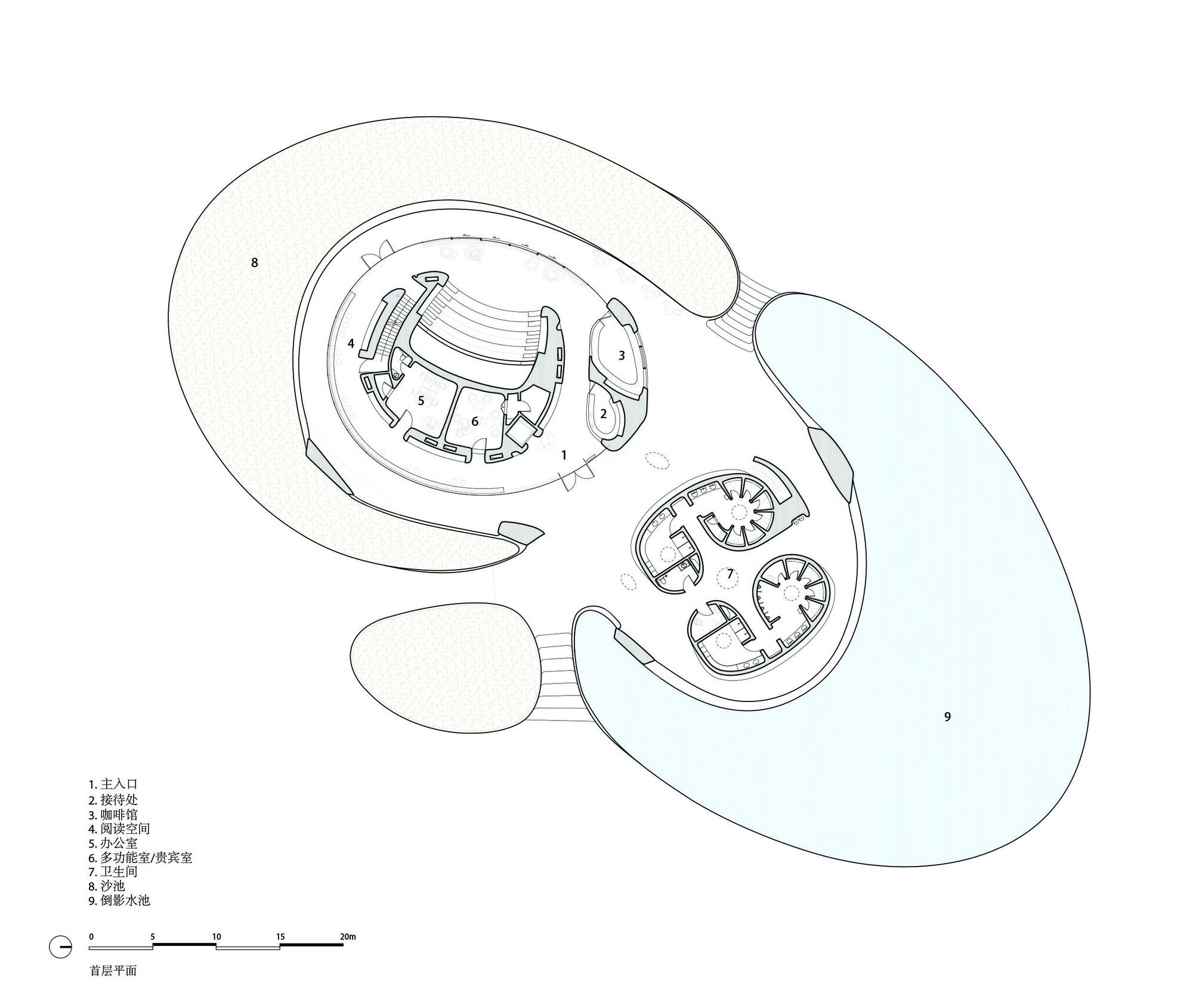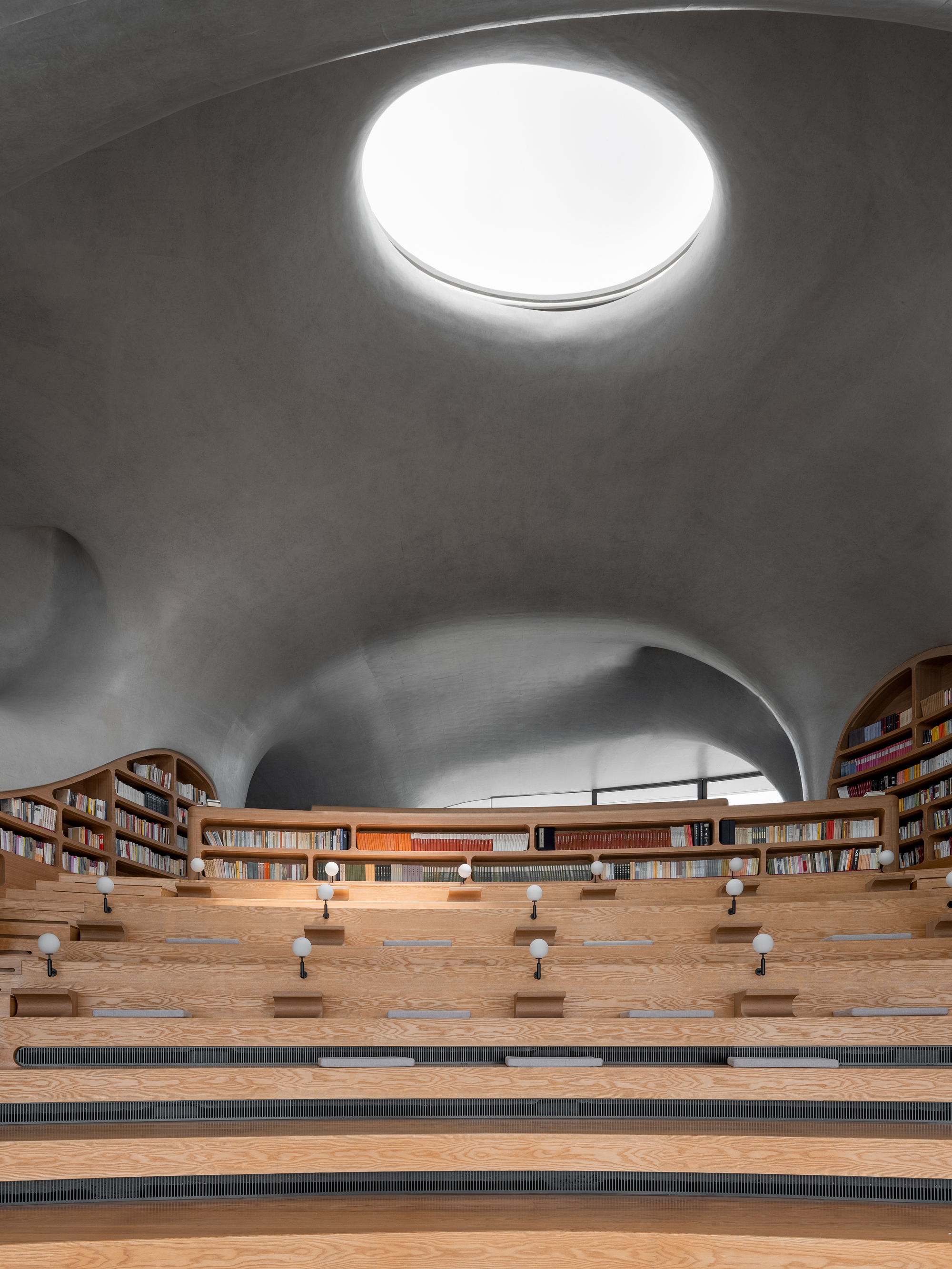 Beginning a new book is often a moment that readers cherish: a venture into the surreal or unknown and gentle removal from everyday reality. The visiting experience of the Cloudscape is similar. The architecture enables people to approach the building removed from our familiar urban reality, and begin a new journey transcending time and space. The complexity of the cave-shaped form deconstructs the space layer by layer, offering readers a weightless field to be inhabited by their imagination.