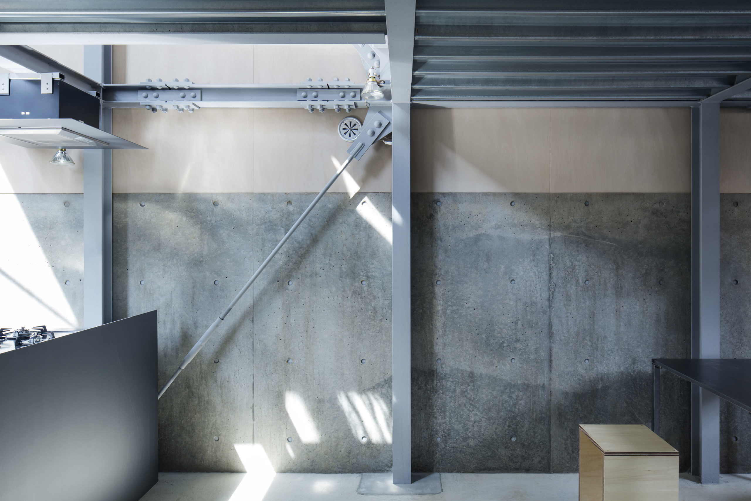 건축의 설계과정은 거주자들의 개별적인 생활영역의 존중과 공유공간에 합리성을 찾는 과정이었다. 1.7*2.2의 스판을 5개의 모듈로 구분짓고 100*100mm H형강을 통해 구축하였다.