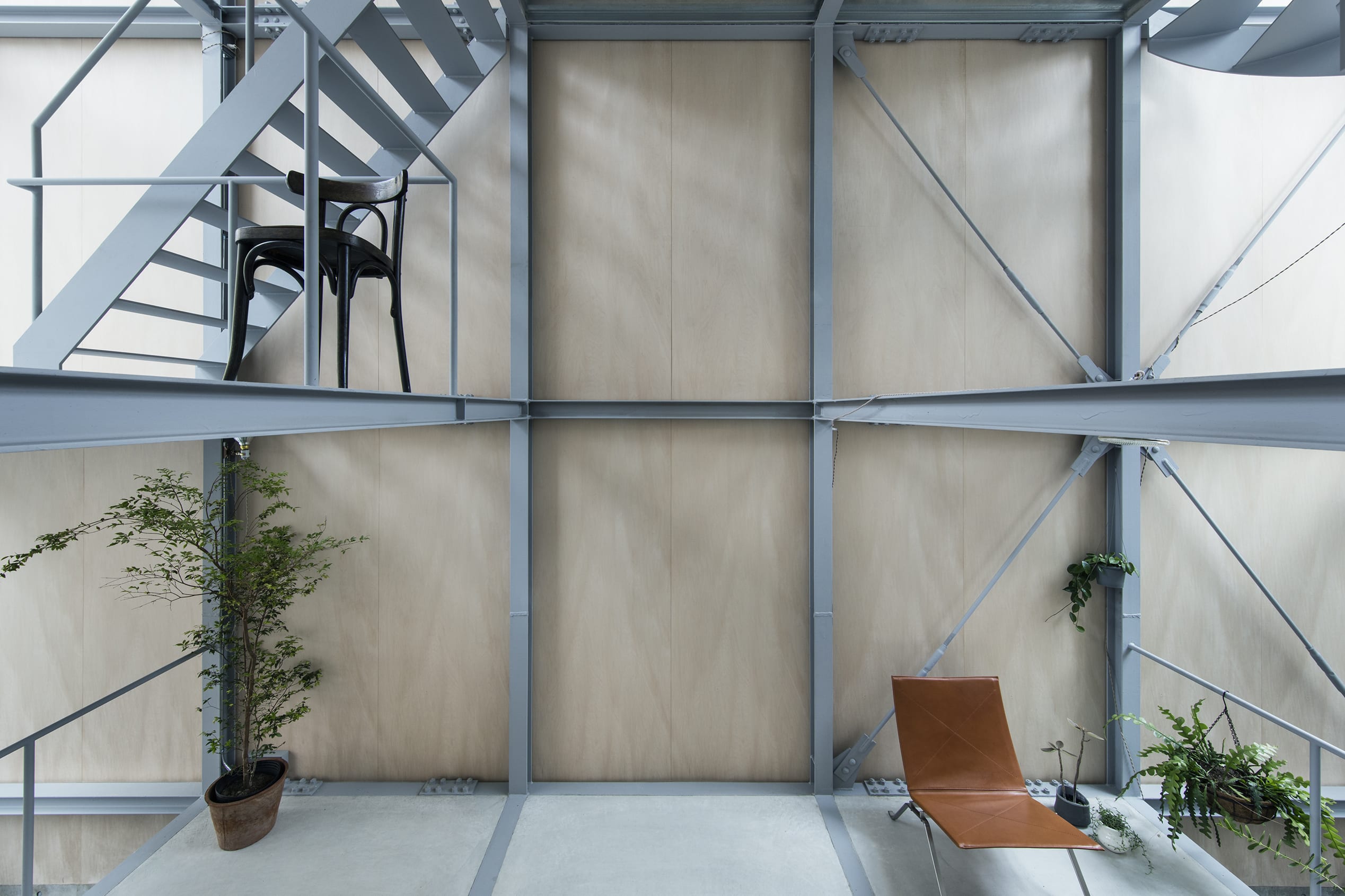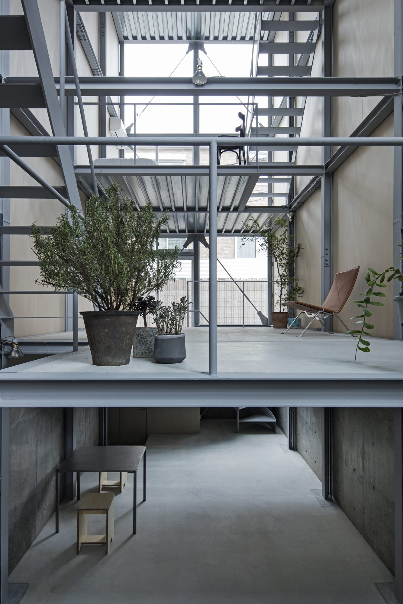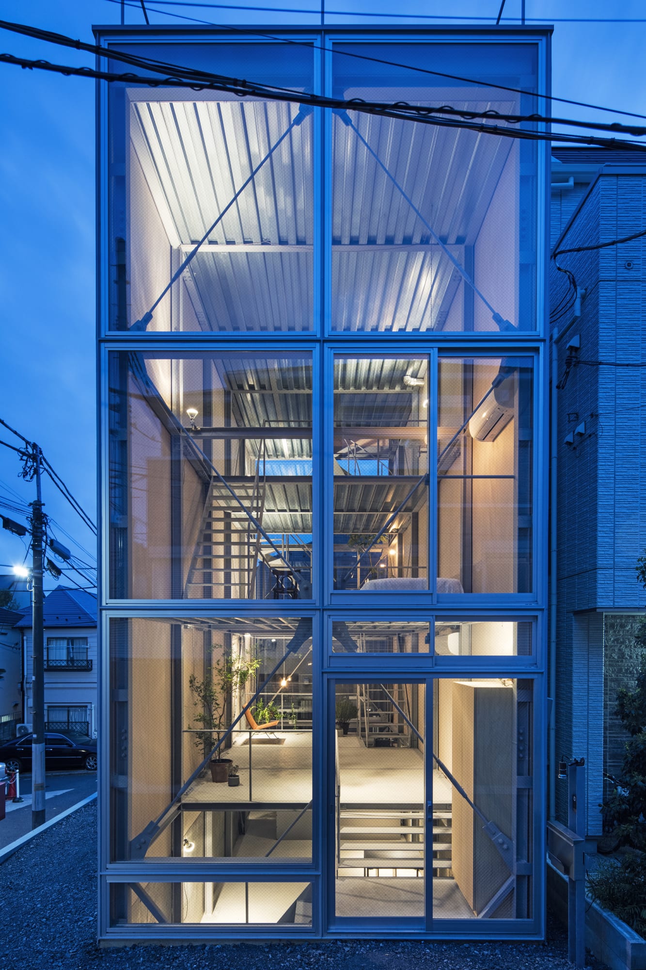 Ebisu No Ie is a minimal residence located in Tokyo, Japan, designed by Tetsuo Yamaji Architects. This house is for a man; it is also positioned as a place where three generations of families, including parents and future families, can easily gather, and the design was advanced with a free idea that is not tied to a fixed image of a house. The process of designing an architecture that can live, work, and gather was the task of editing the enormous demands of each individual. First, the legal maximum volume was divided into five by a 1.7m x 2.2m module, and a grid-like form consisting of only 100mm x 100mm H-beams was created for both columns and beams.