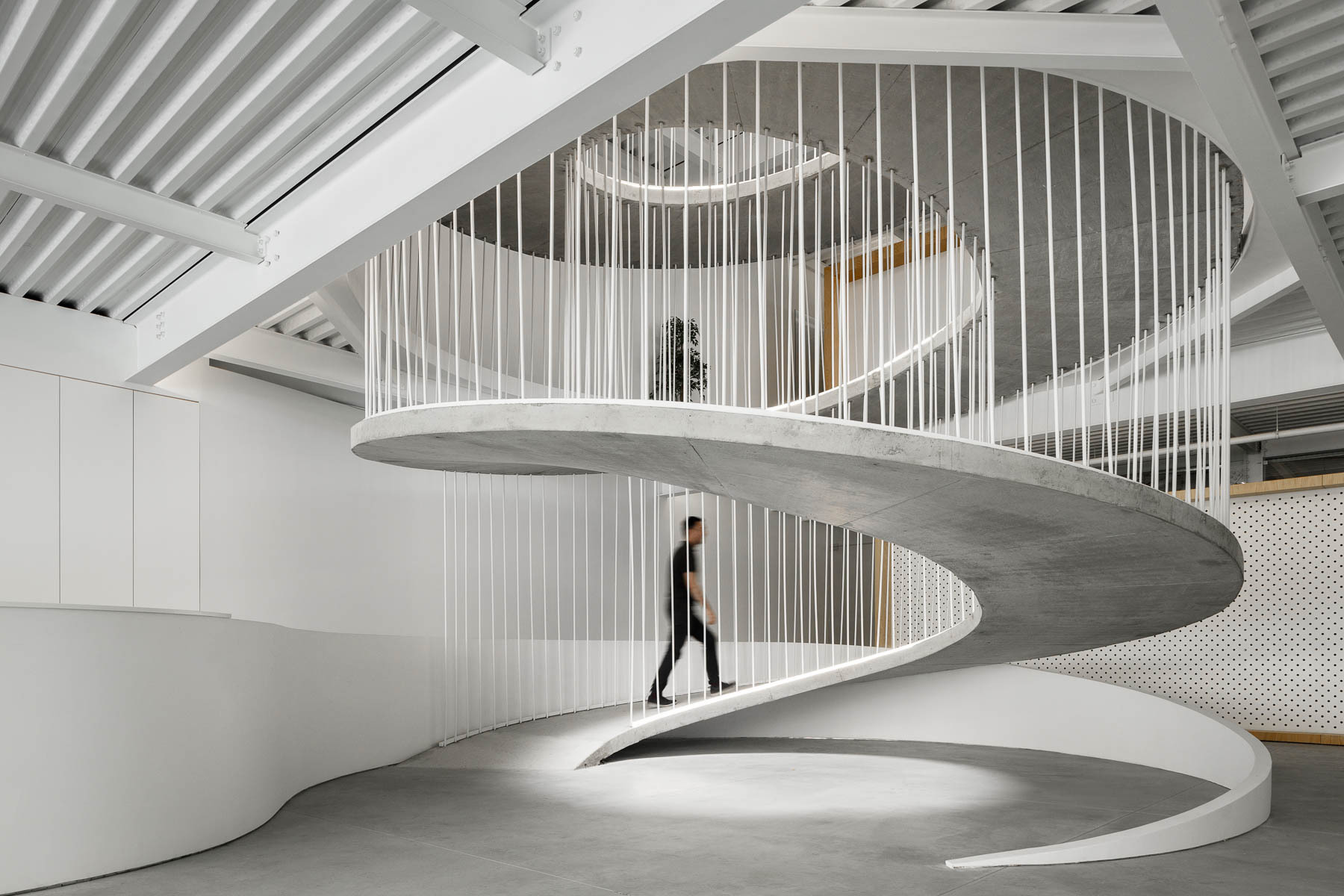 The main challenges of this intervention were the interconnection of the two warehouses, in order to be able to seam the original space and the new space in the most fluid and natural way possible, and the creation of dynamics between the two companies, which although distinct, work synergistically. One of the most important issues in designing a company's headquarters is to create a space that expresses and is in line with the corporate culture.