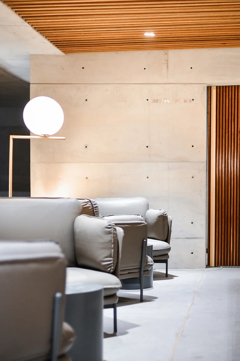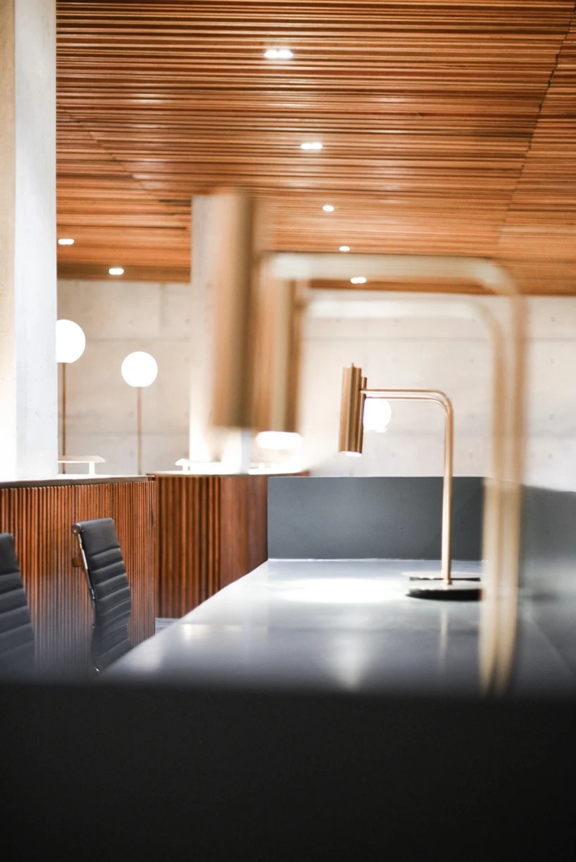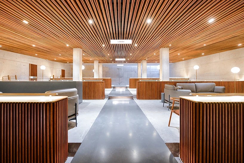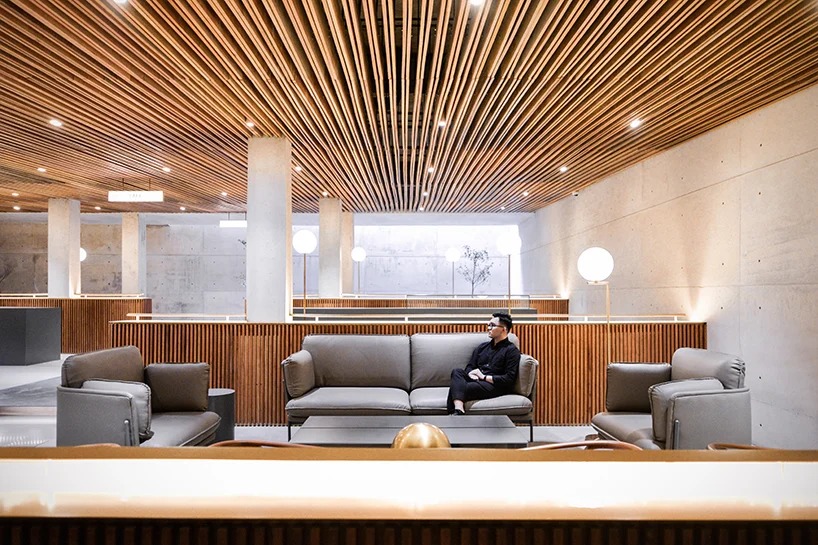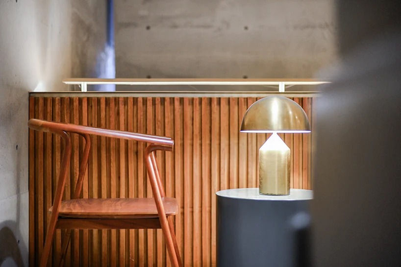 격자우드와 콘크리트를 통해 미니멀 공간을 완성한다.