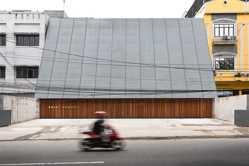 ‘prime complex’ by raymond boedi is a minimalist space consisting of a lobby, a café, and a study place, located in medan, indonesia. the space was converted from a four-house plot to a layout of three separate zoning areas. existing columns within the space were merged with the structure, concealing them from sight.