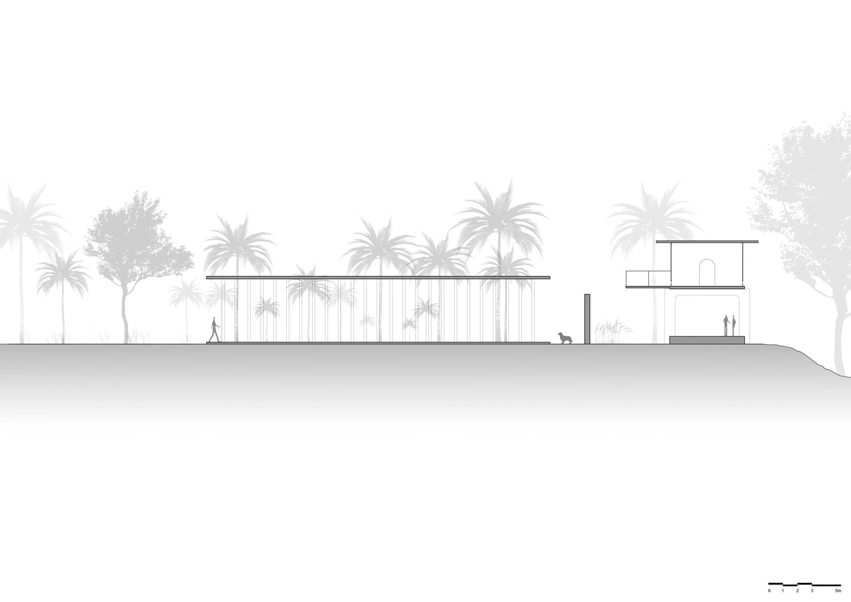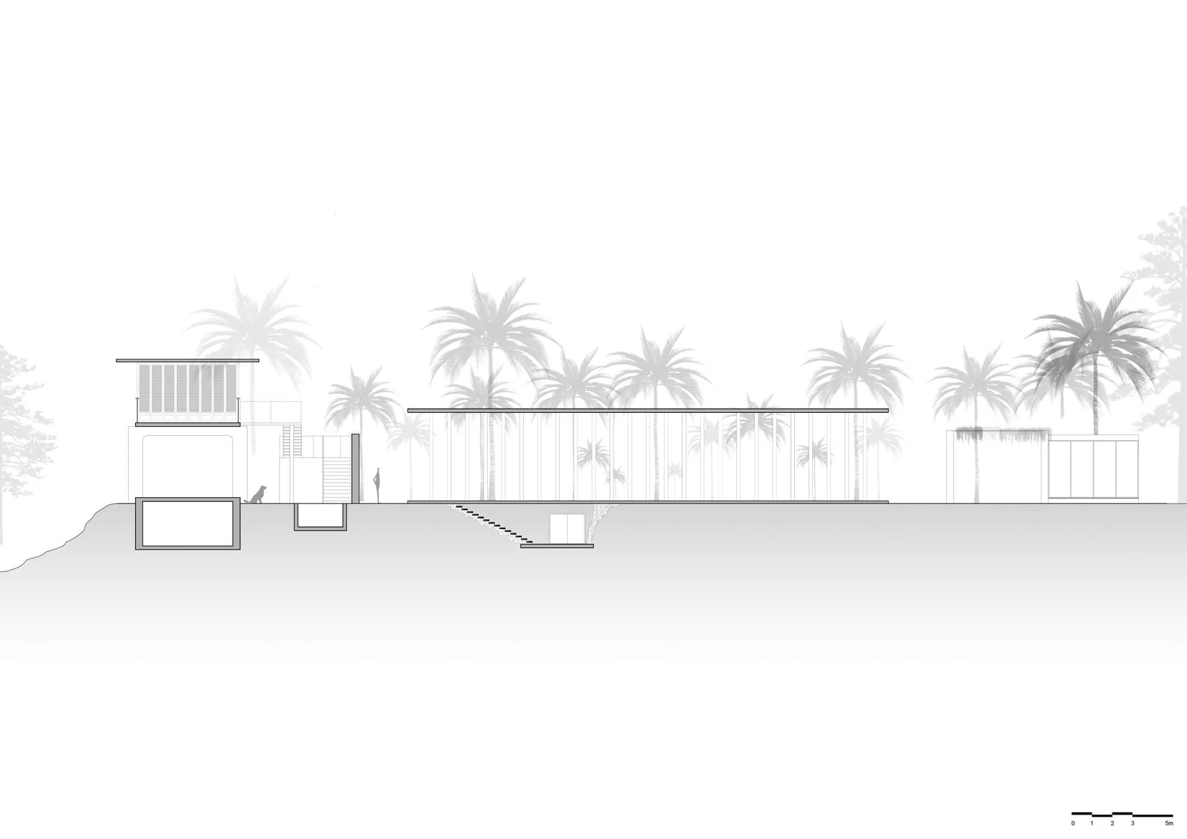 덥고 습한 열대기후 속에 건축은 직사광선을 피할 수 있는 차양 및 공간과 자연환기를 통해 내부 온도를 조절하는 열린 공간을 계획합니다. 콘크리트를 구조 바탕으로 우드재질의 마감재가 편안한 거주공간을 만들어 냅니다. 수평요소인 바닥 및 지붕과 수직요소인 기둥은 단순하면서도 직설적으로 구조화 되어, 미니멀 건축의 모습을 그립니다.