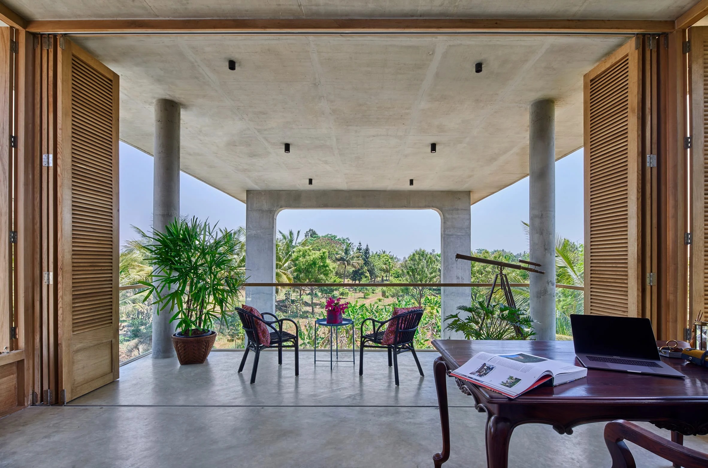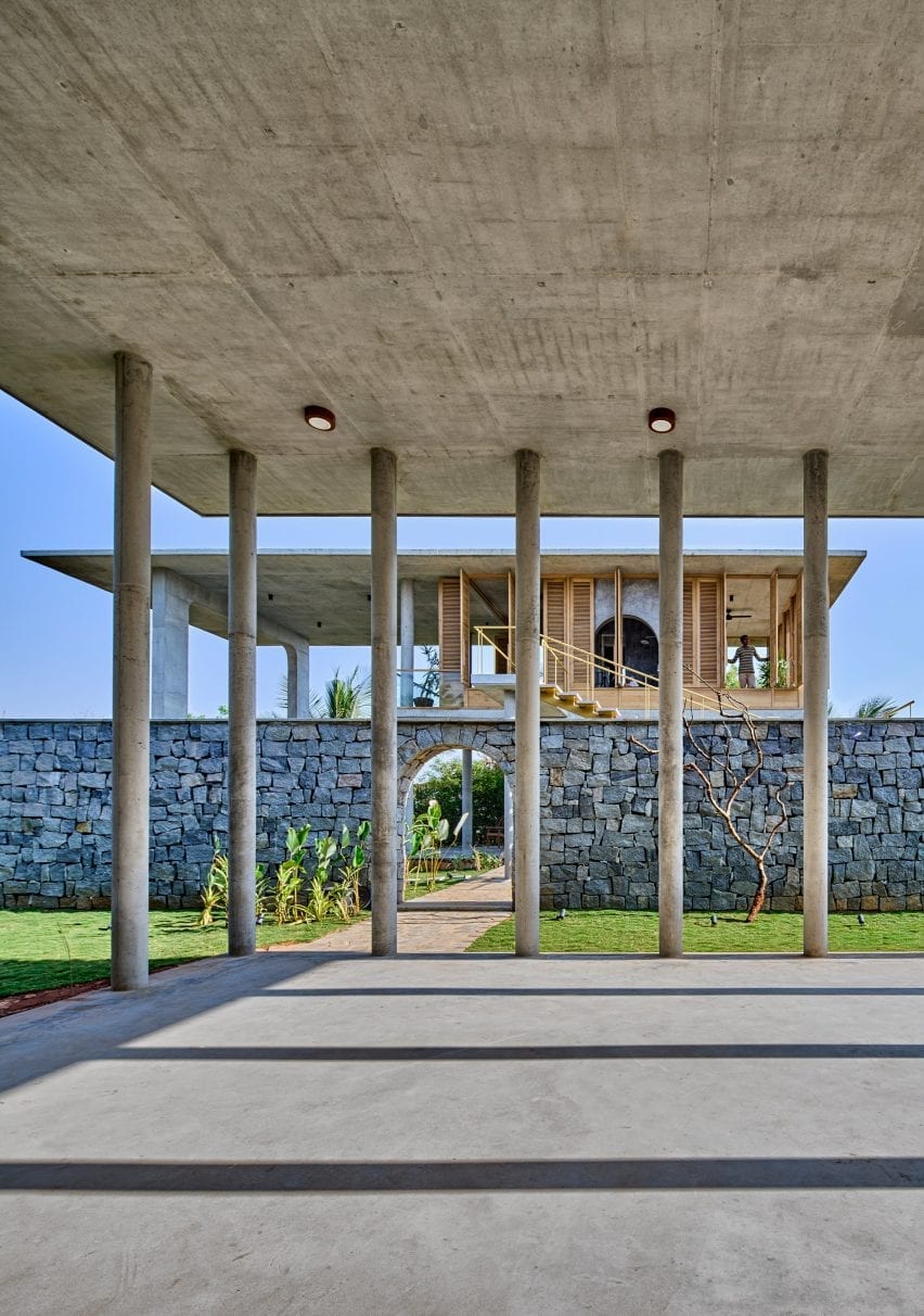 There are very few walls in this house in rural Bangalore, designed by architecture and design studio Taliesyn, so that residents can enjoy the tropical landscape surroundings.