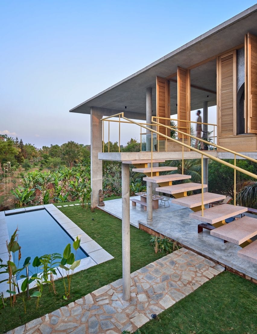 There are very few walls in this house in rural Bangalore, designed by architecture and design studio Taliesyn, so that residents can enjoy the tropical landscape surroundings.