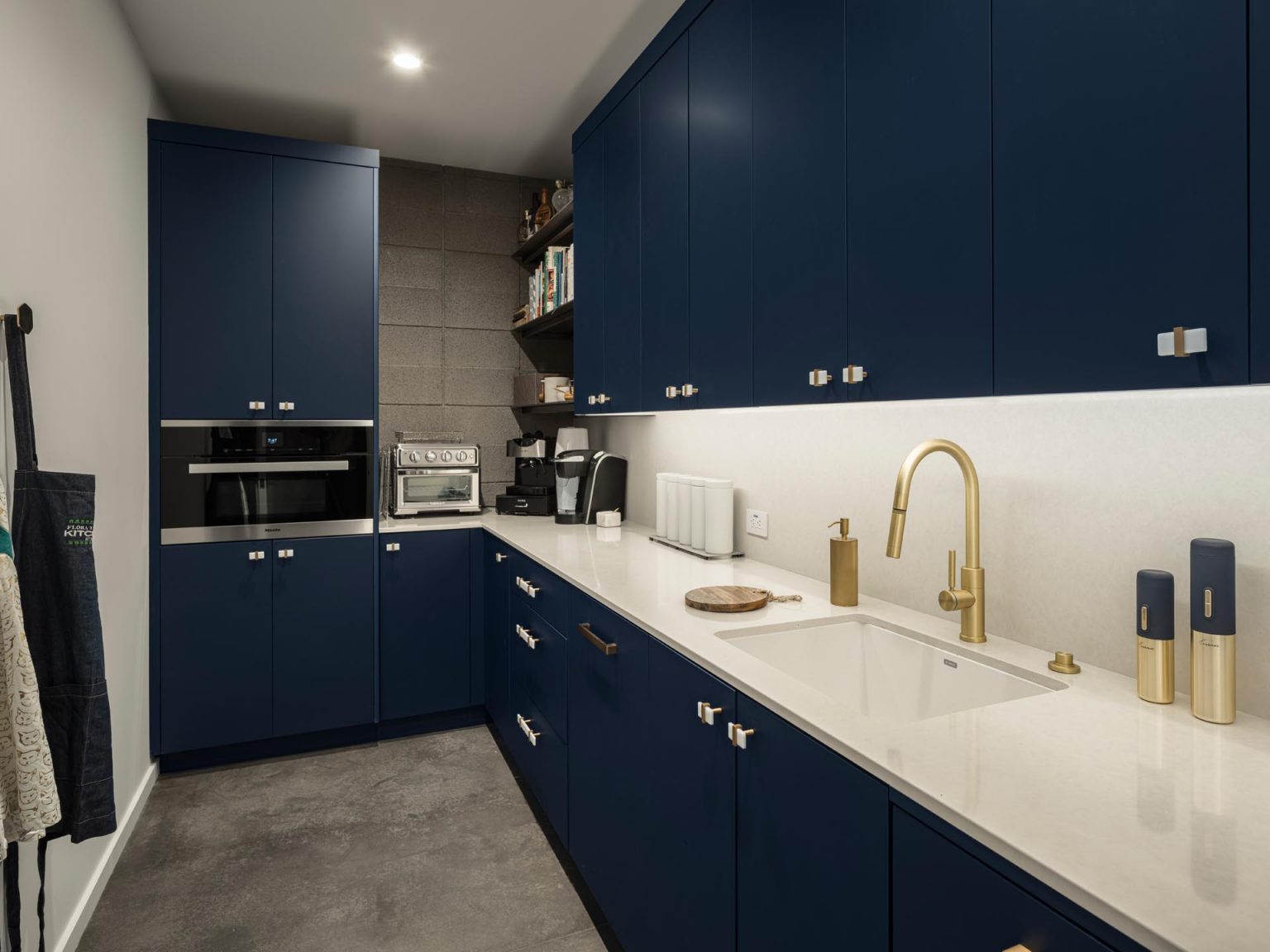 The lot had a mountain view but came with a concave property line that narrowed the allowable building depth in the middle of the long lot to just 20 feet, presenting an interesting design challenge.