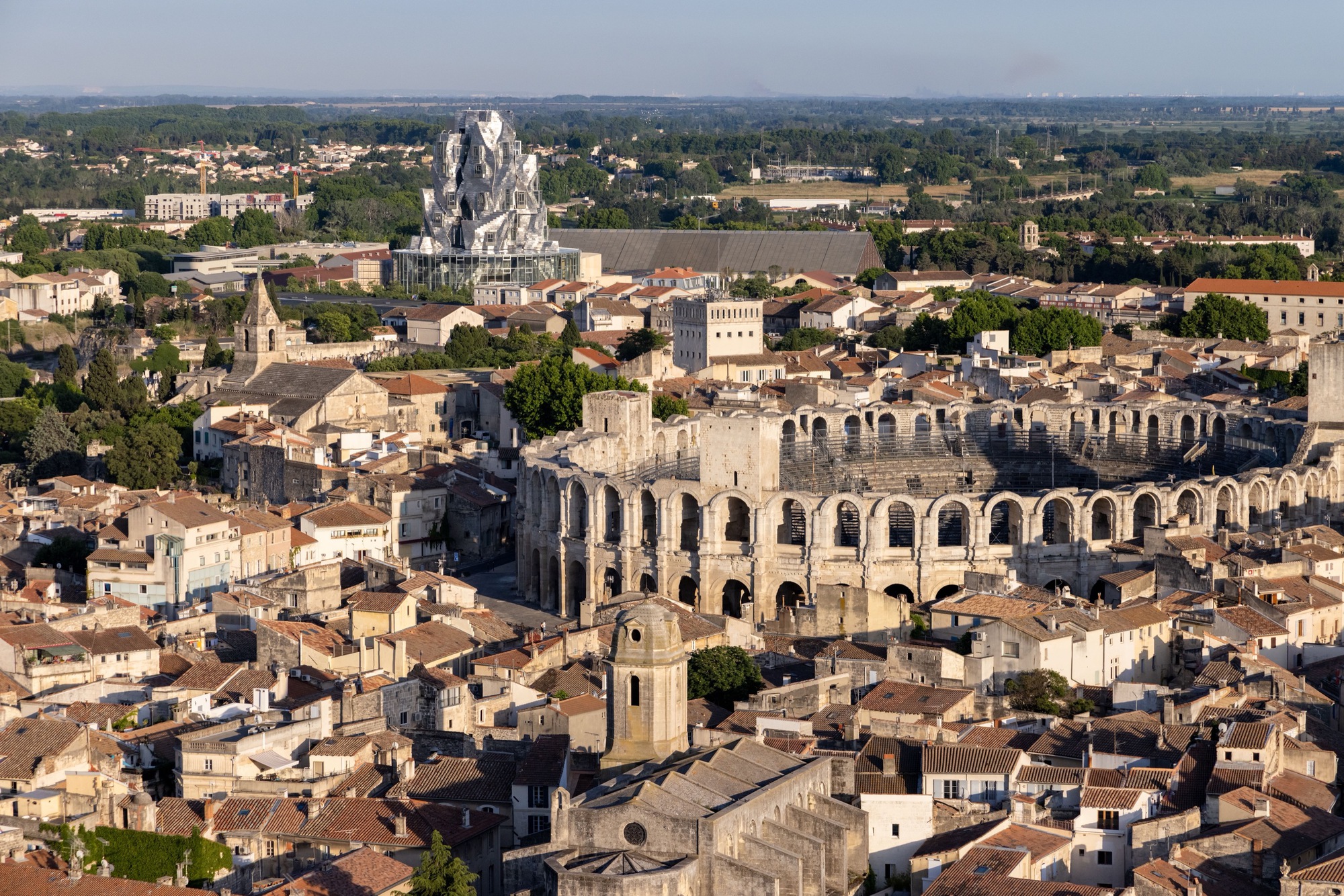 The centrepiece of LUMA Arles is The Tower designed by Los Angeles-based Canadian architect Frank Gehry, which houses exhibition galleries, project spaces, research and archive facilities, workshop and seminar rooms and a café.