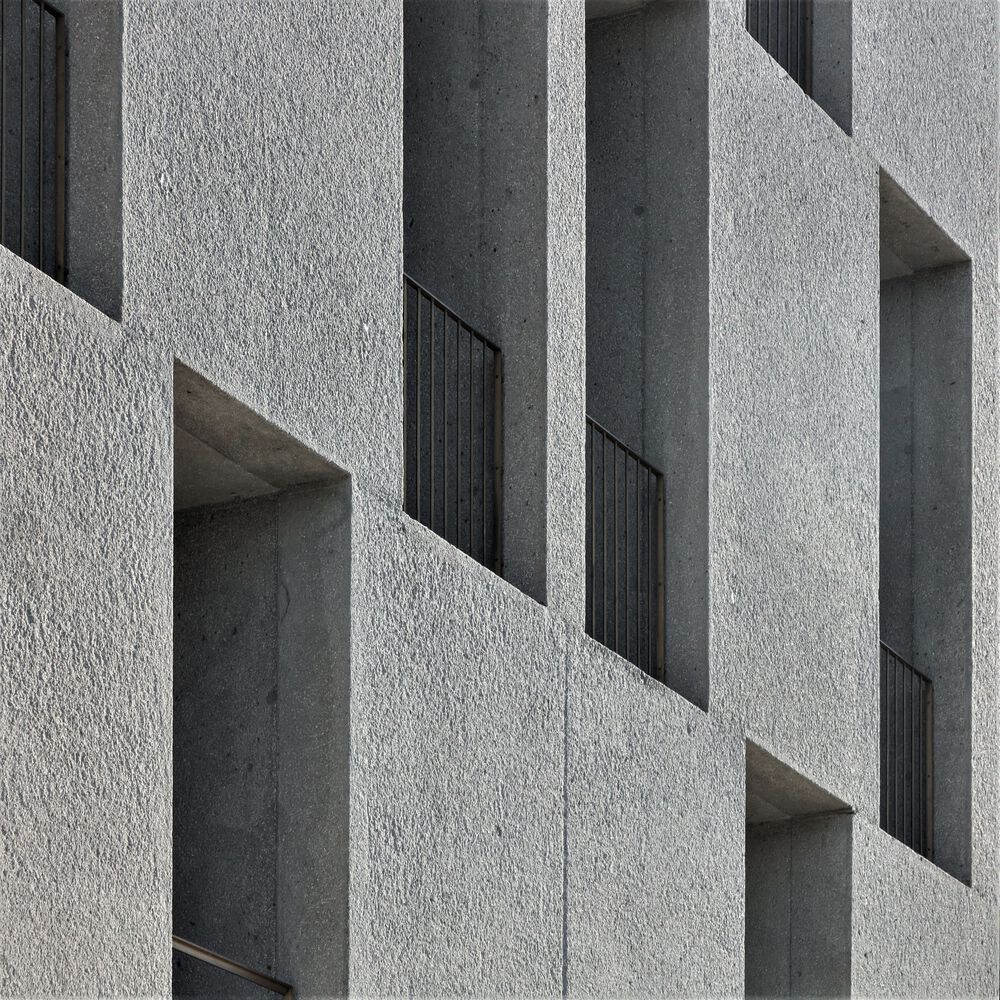 거대한 콘크리트 볼륨은 포르토의 전통적인 건축양식을 현대적 도시환경에 재해석한 입면 디자인 입니다. 이 지역에서는 쉽게 찾아 볼 수 있는 패턴으로 지역기후에 대응하는 건축방법으로 보여집니다. 그보다 장중한 이미지를 전달하는 건축계획이 독창적인 공간을 표현합니다.