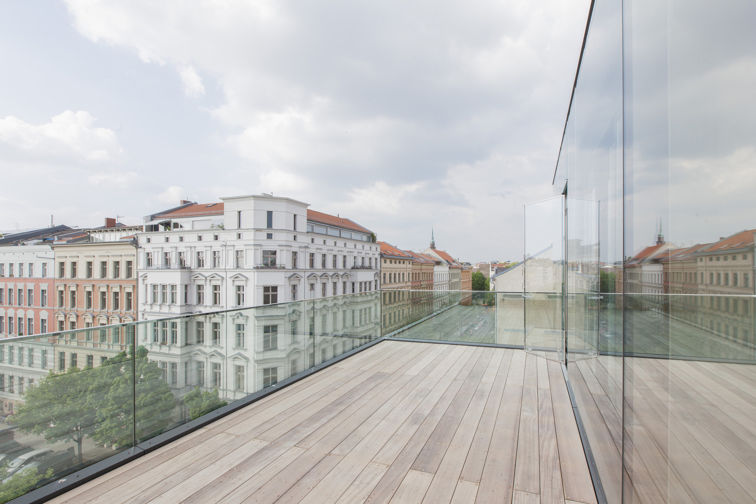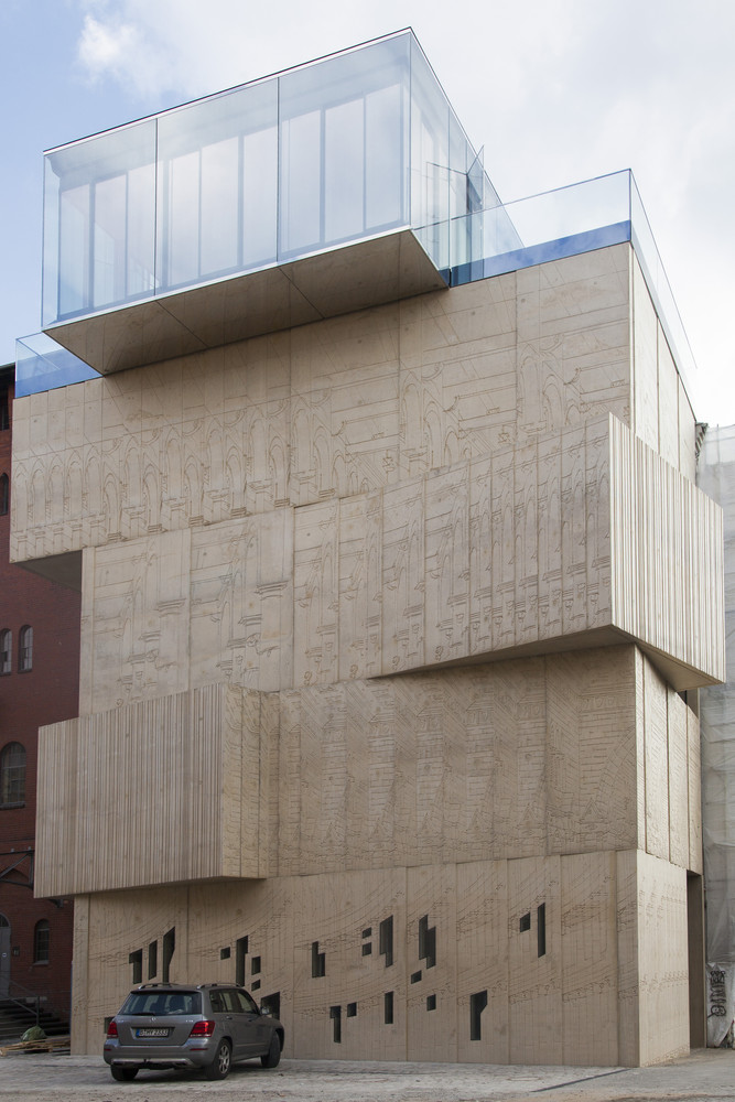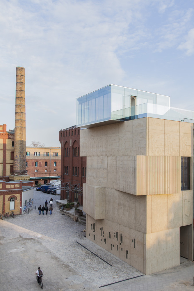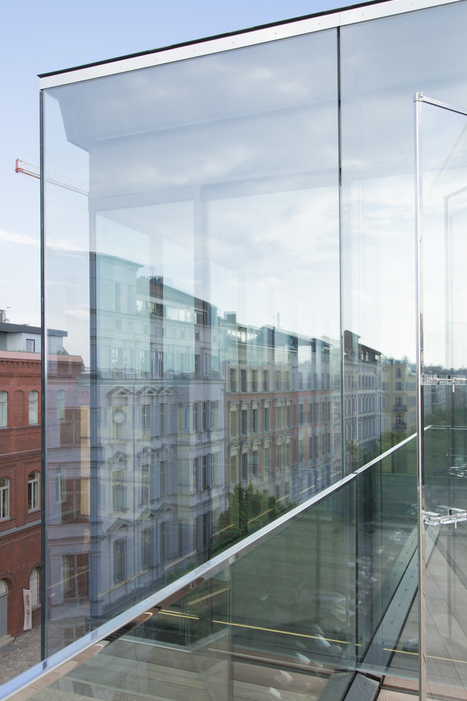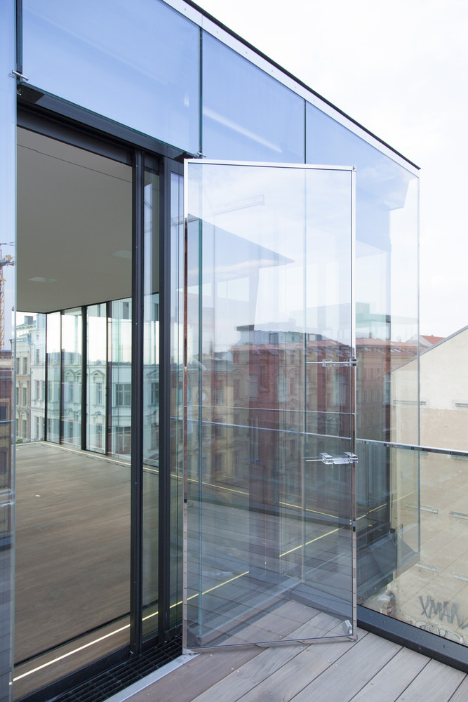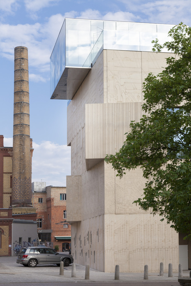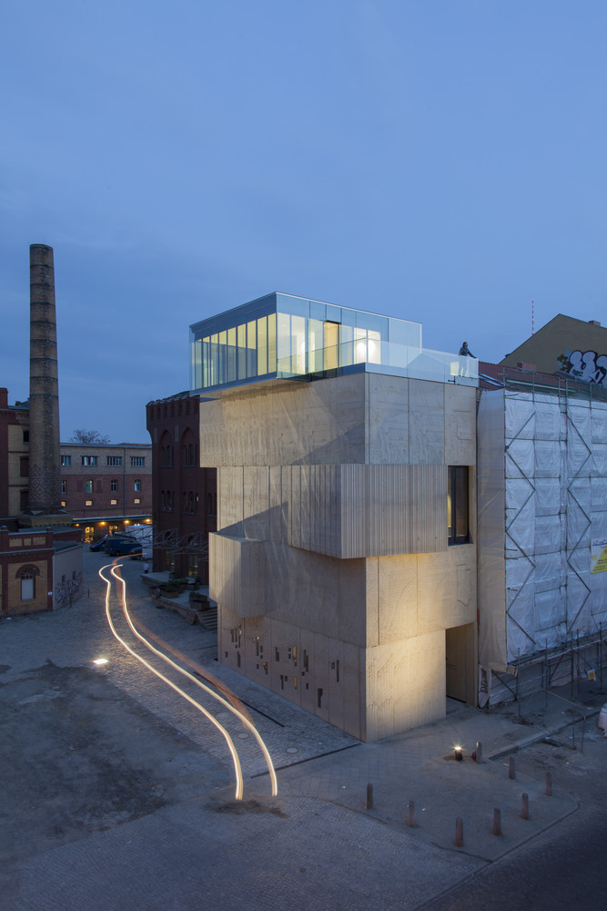매력적인 건축물의 구축은 오래된 베를린 하우스의 건축법이 허락하는 방화구획까지 확장된다. 4개층으로 이루어진 거대한 돌덩이 같은 솔리드 형상 위에 커튼월로 이루어진 글래스 박스 구조물이 위치한다. 이러한 구축형상은 자연스레 쌓아 올려진 블록을 연상시킨다. 건물이 연출하는 실루엣 또한 인접한 건물들의 관습적인 건물형태에 반하는 자유로움과 매력적인 형상으로 도시 랜드마크를 완성한다.