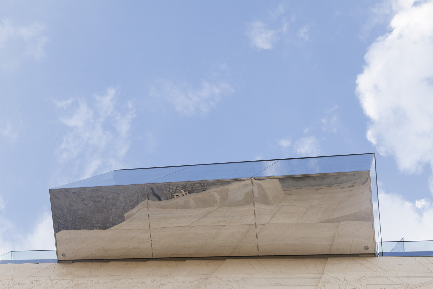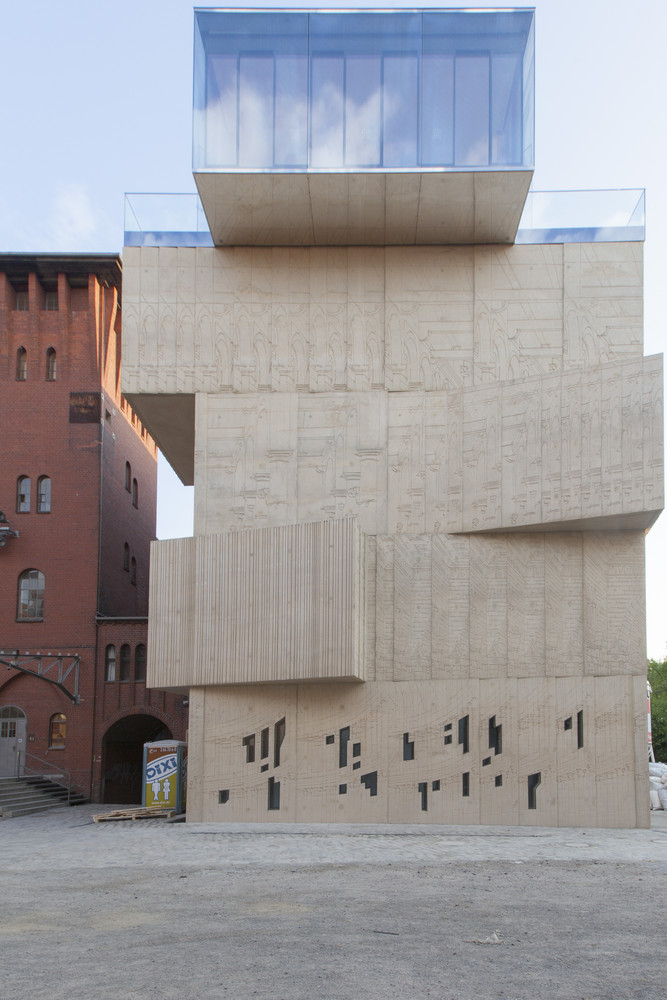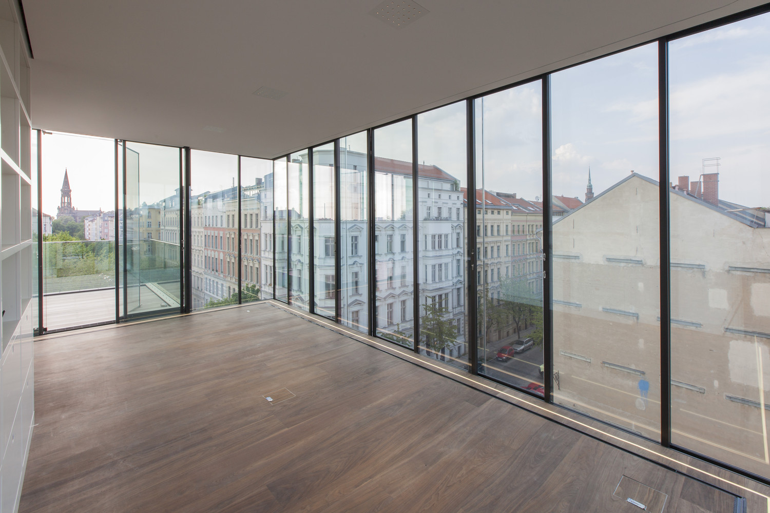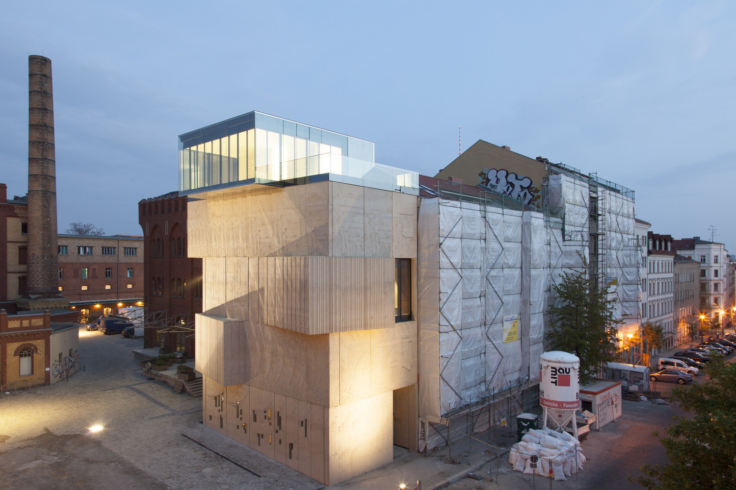 매력적인 건축물의 구축은 오래된 베를린 하우스의 건축법이 허락하는 방화구획까지 확장된다. 4개층으로 이루어진 거대한 돌덩이 같은 솔리드 형상 위에 커튼월로 이루어진 글래스 박스 구조물이 위치한다. 이러한 구축형상은 자연스레 쌓아 올려진 블록을 연상시킨다. 건물이 연출하는 실루엣 또한 인접한 건물들의 관습적인 건물형태에 반하는 자유로움과 매력적인 형상으로 도시 랜드마크를 완성한다.