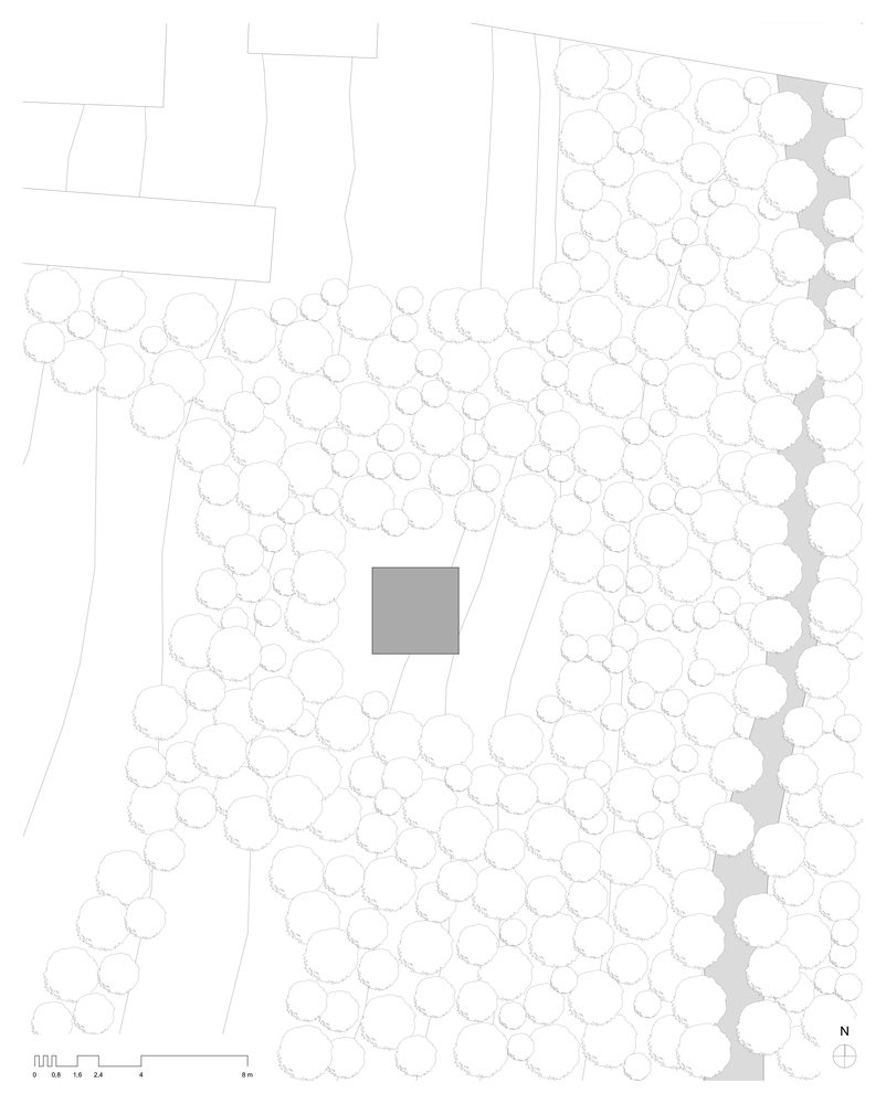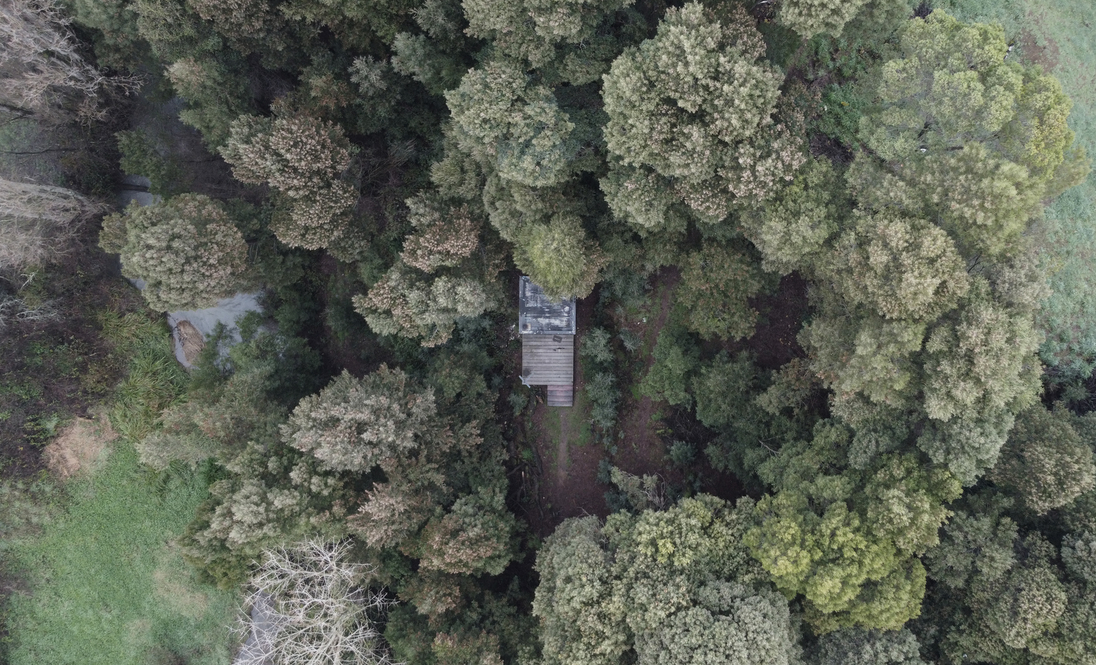 The place: it rises in a rainforest near La Unión city, south of Chile. After a long deciding walk it was selected the place near a risk on the short of Radimadi river, privileging the view, sunlight, and stream noises. This little, free of trees, the place was a perfect choice.