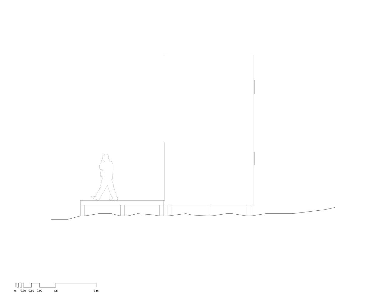 Program: Show on three acts. Start on the terrace with the same footprint as the refuge. It gives the sense of the space between the outside and inside. Is the place where people meet and have a barbecue.
