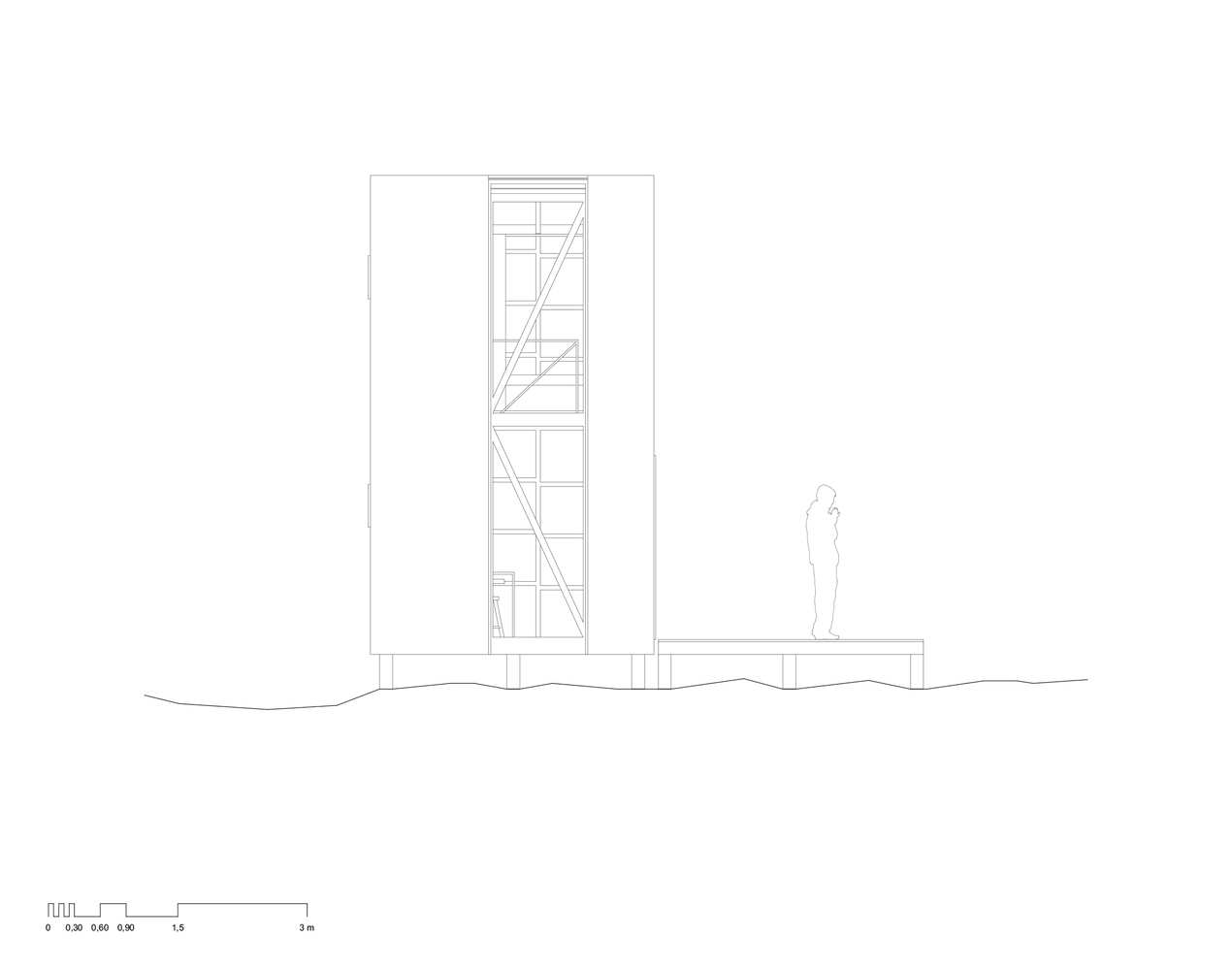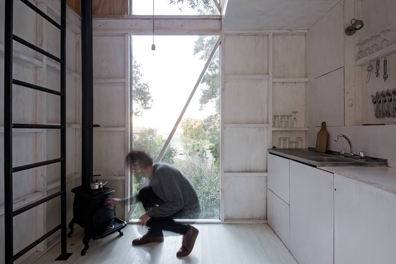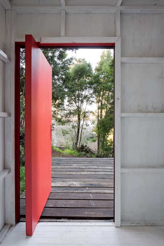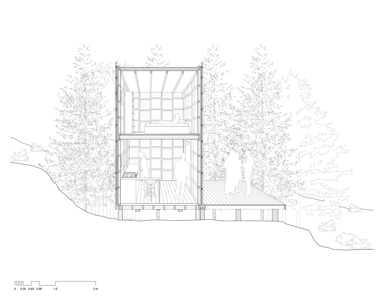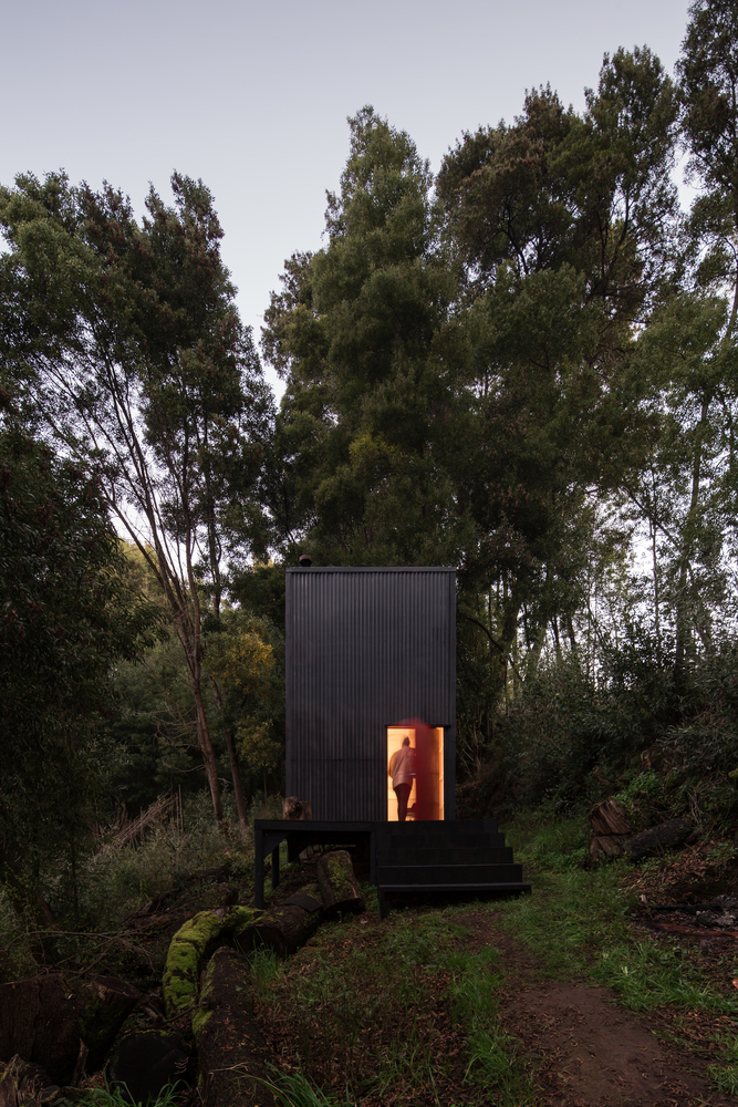 봄과 여름 그리고 가을 겨울을 즐기는 공간입니다. 칠레남부 열대우림 속에 위치한 작은 오두막은 나무로 제작된 소규모 거주공간입니다. 3개의 공간으로 구성되어 있습니다. 출입구와 외부공간을 즐길 수 있는 전면 데크공간과 1층의 거실, 주방 및 다양한 거주생활을 보장하는 리빙공간 그리고 숙면을 취할 수 있는 작은 침실이 복층형태로 2층에 자리합니다.