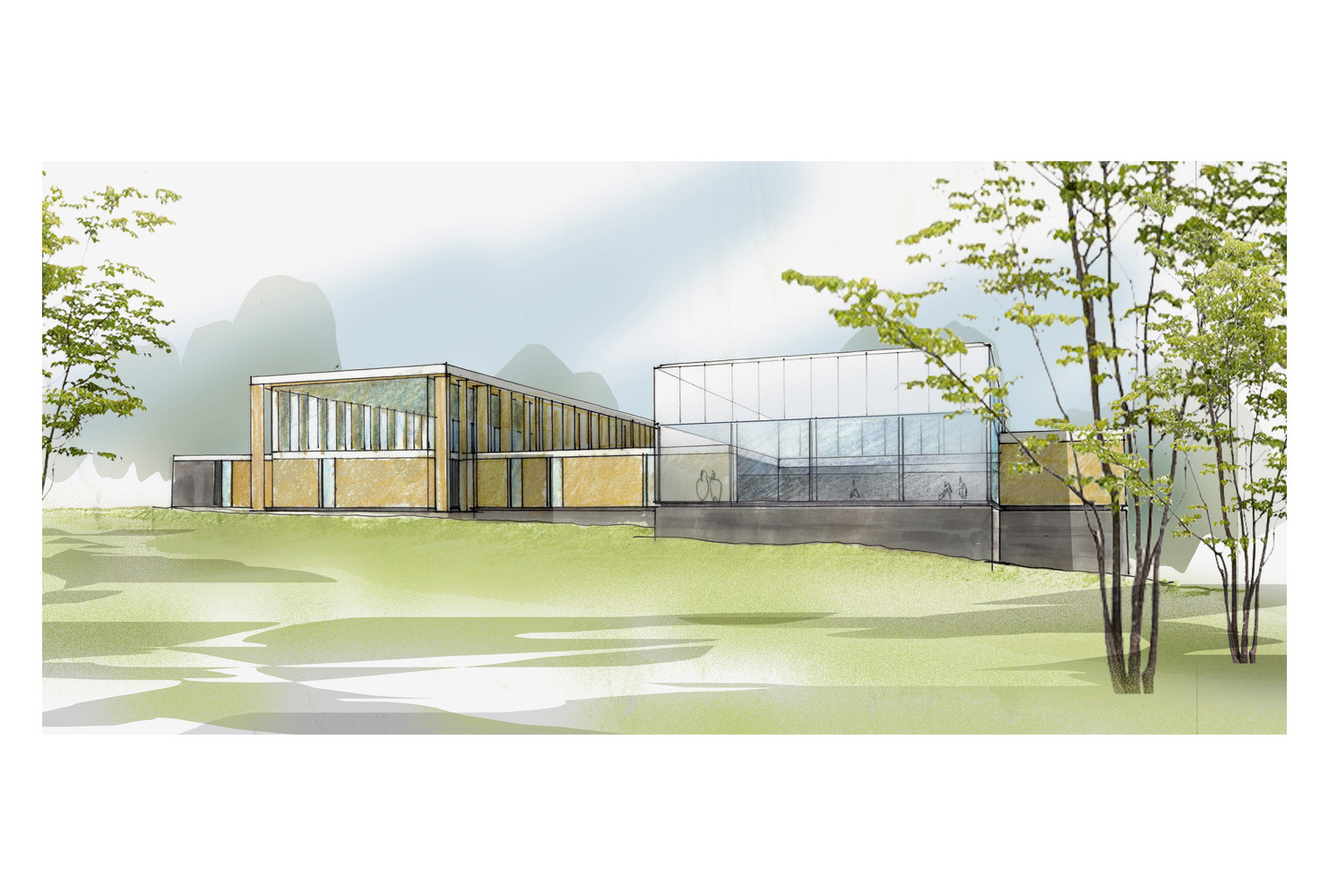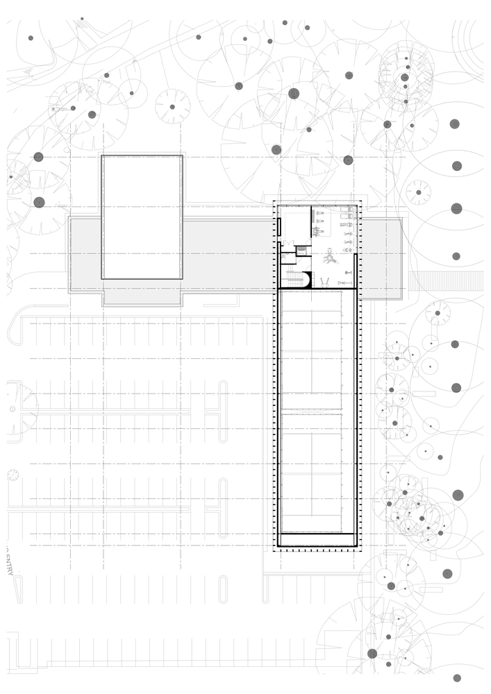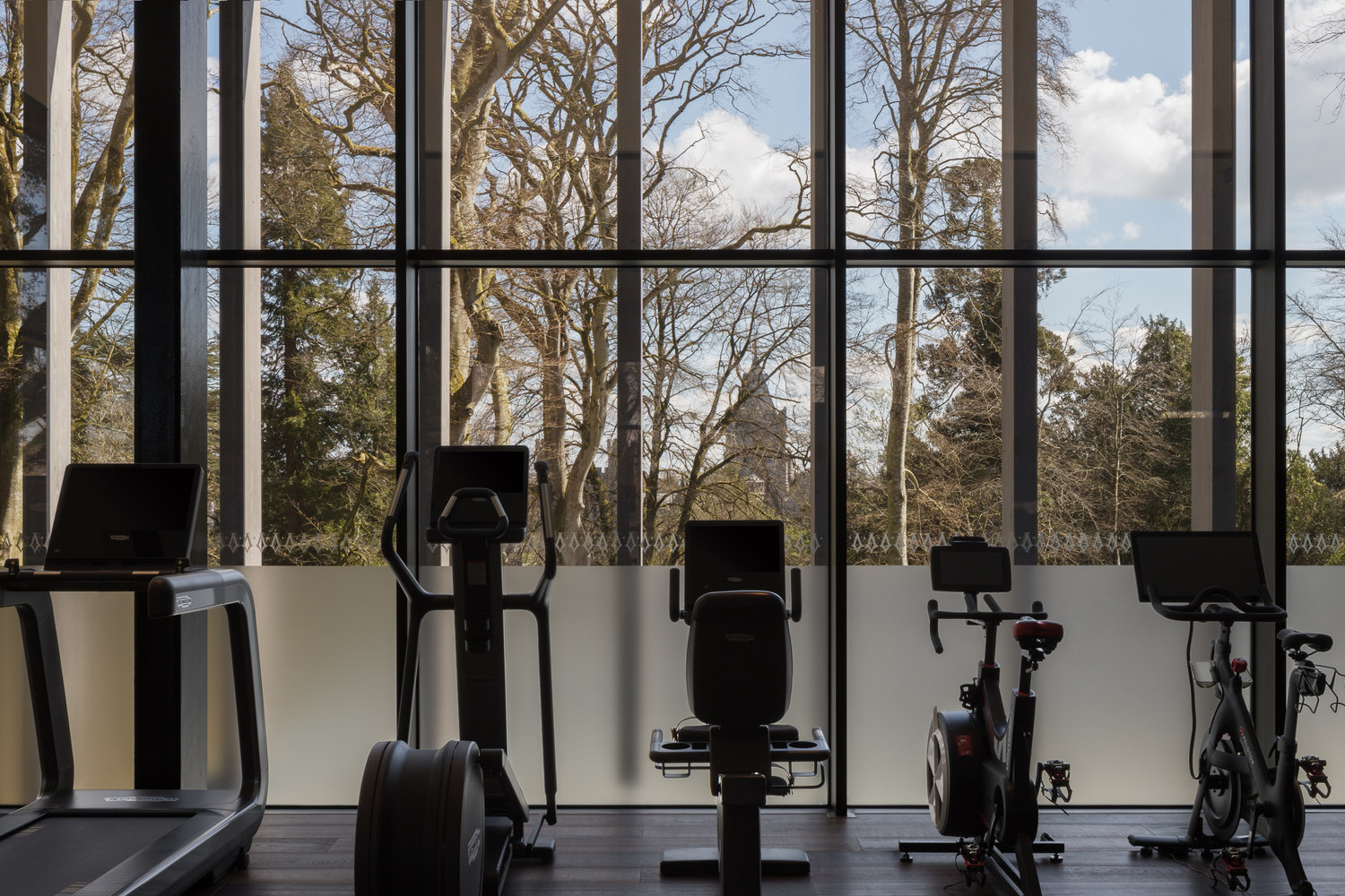 We are of the strong opinion that nature should have a life of its own and that we as architects should strive to bring nature and people together. The hotel guest using this facility experiences a sense of the existing woodlands while exercising at the base or in the canopy of the mature trees. The building incorporates large areas of glazing that create a synergy between the inside and outside allowing one to look through the glass framing the nature setting.