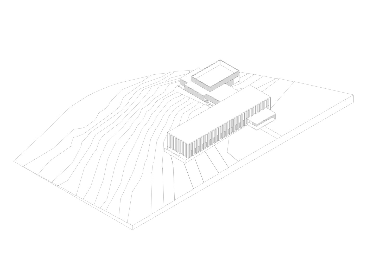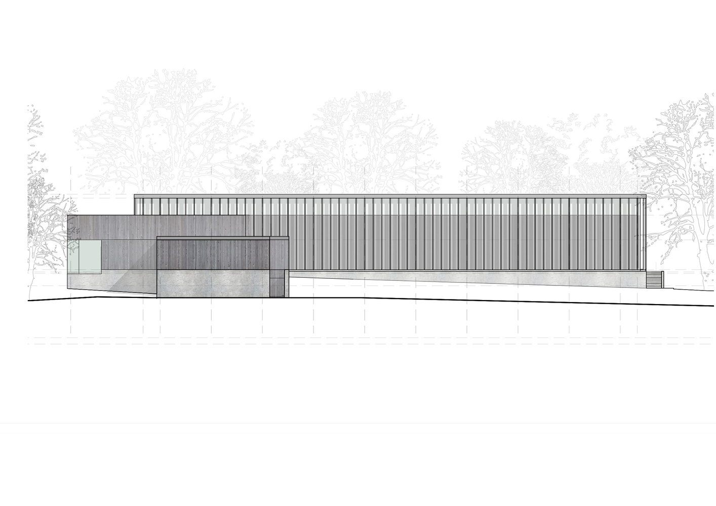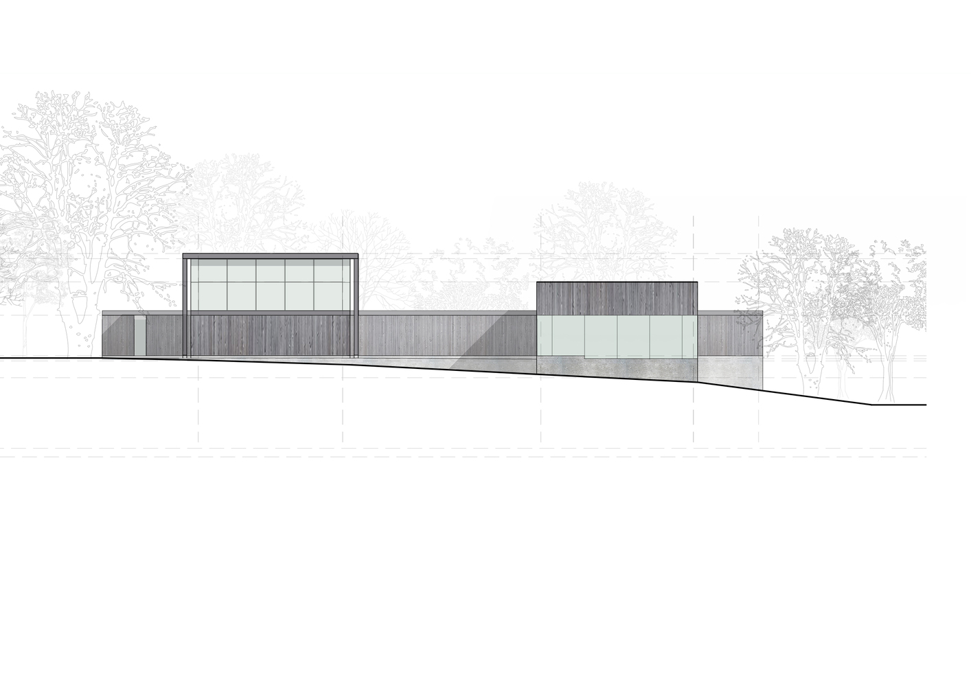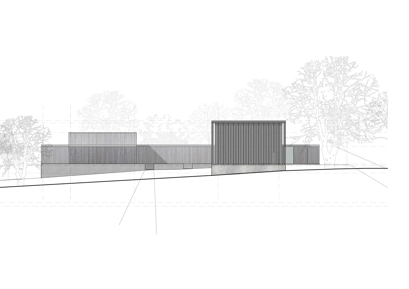 The existing site axes, prevailing winds, annual solar paths, protected structures, vistas, and landscape have determined the building's location, orientation, size, form, and materiality.