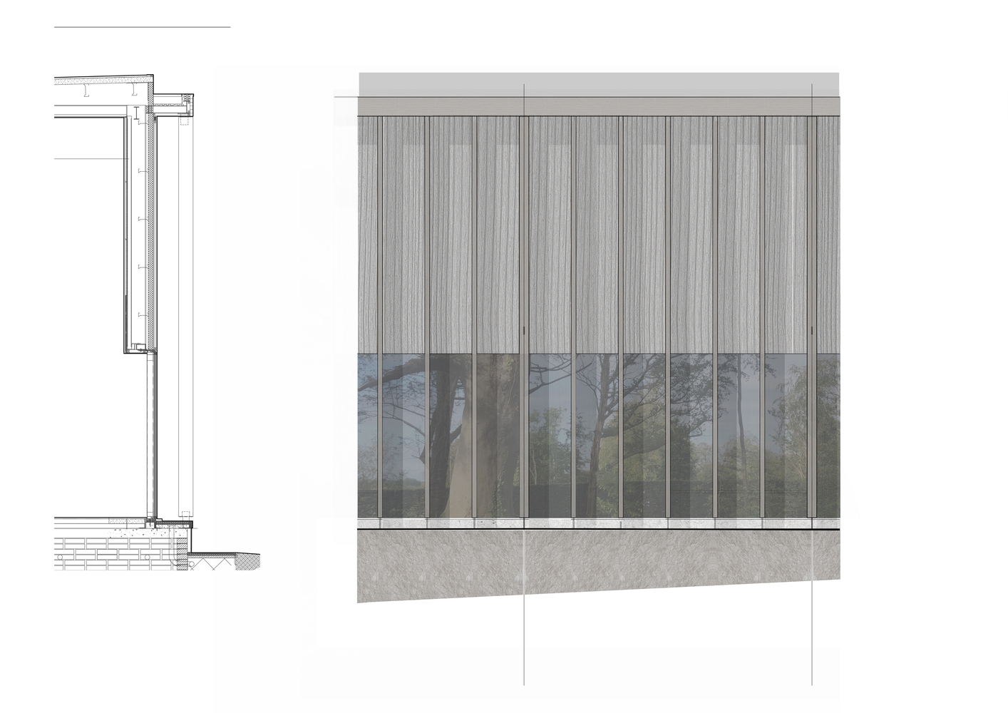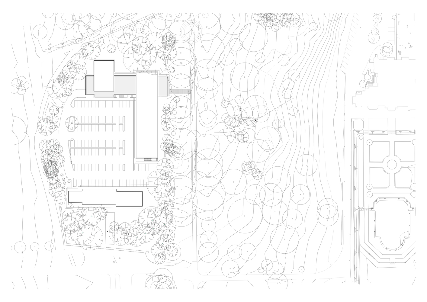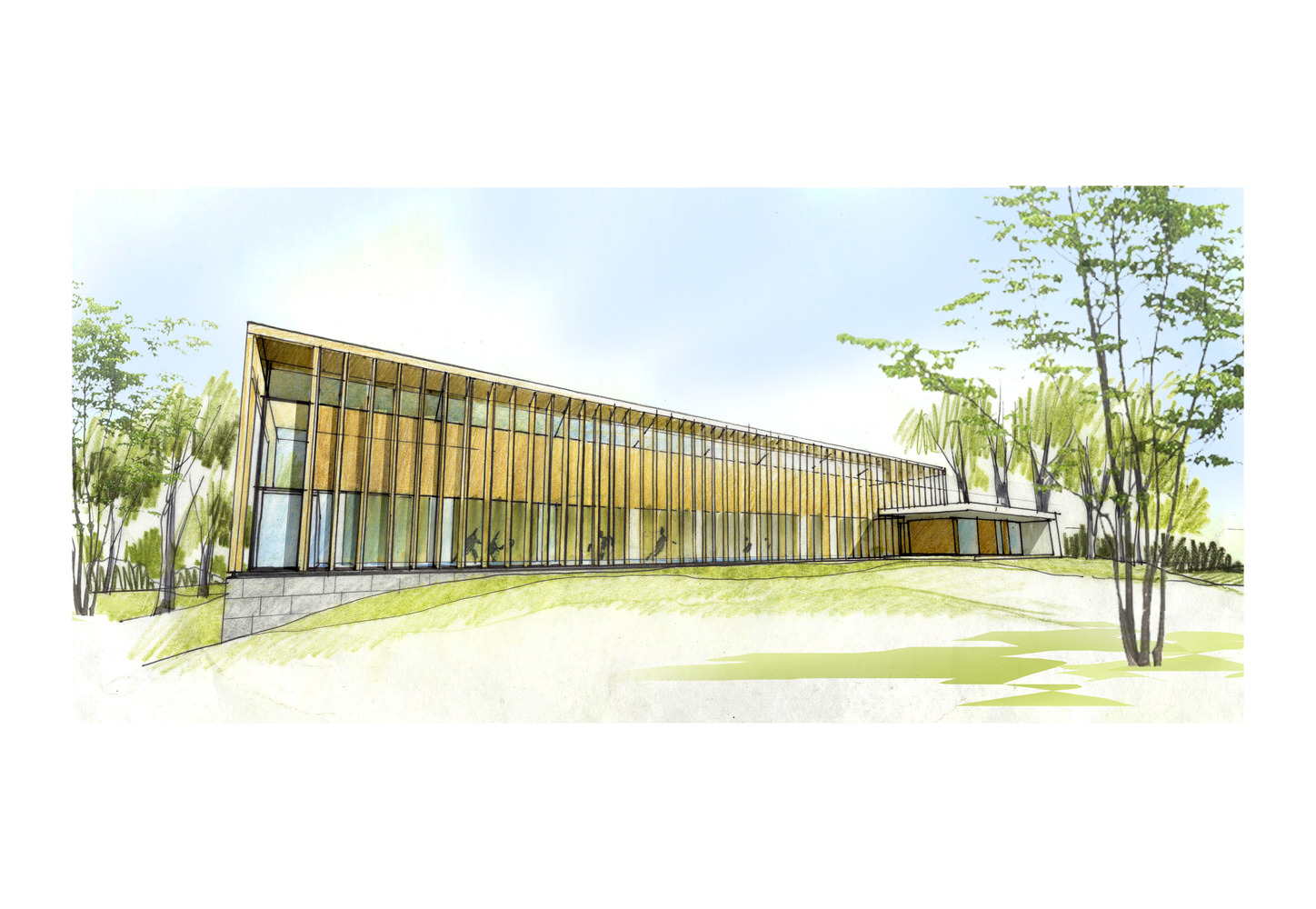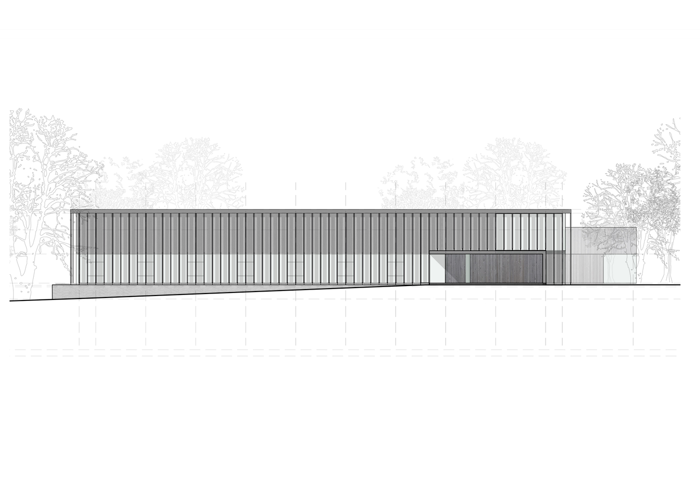 The existing site axes, prevailing winds, annual solar paths, protected structures, vistas, and landscape have determined the building's location, orientation, size, form, and materiality.