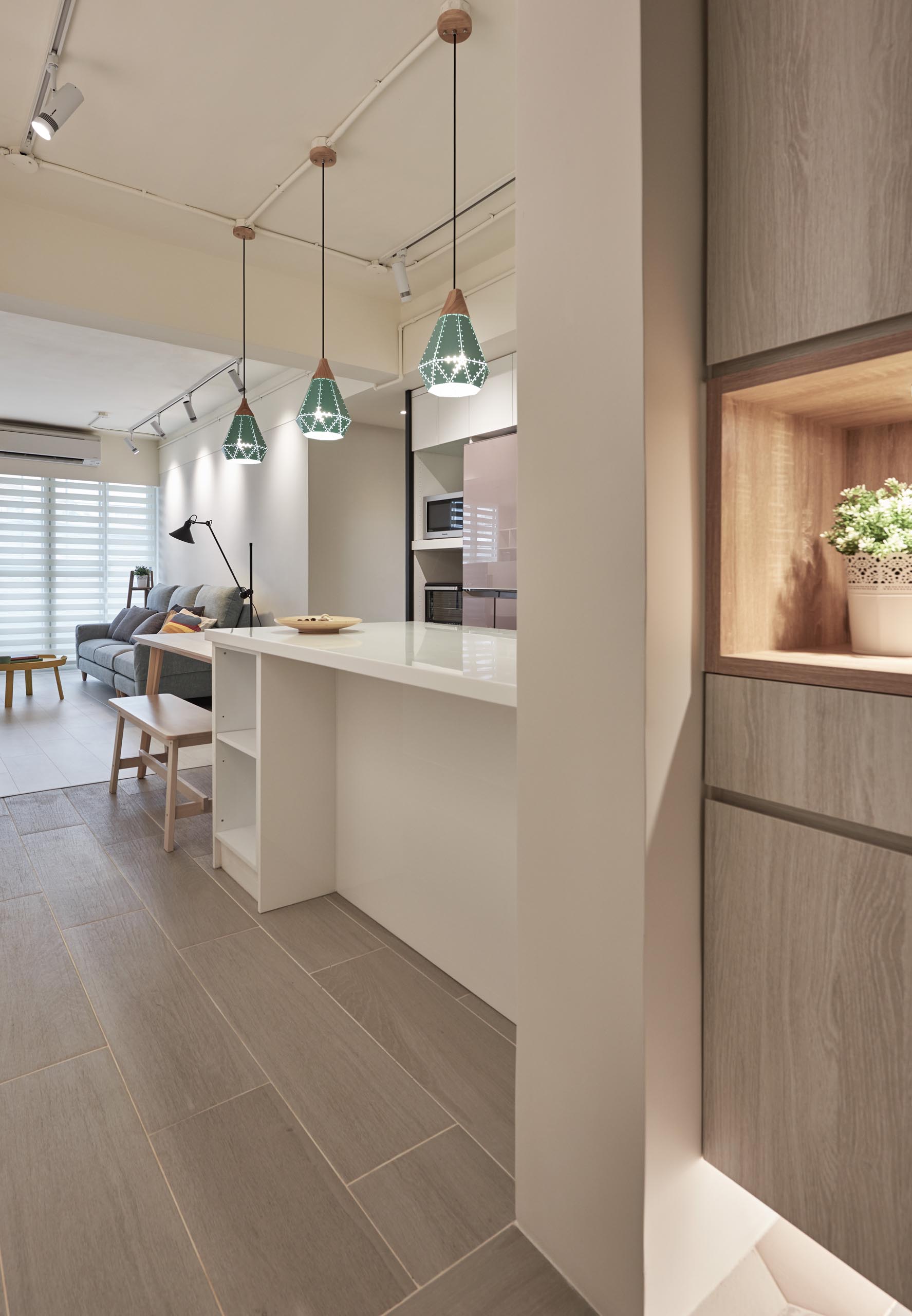 대만에 위치한 아파트 인테리어 디자인은 주거공간과 홈오피스 기능을 조화롭게 구성하는 것을 목표로 설정되었습니다. 열린 거실을 구분짓는 낮은 파티션을 경계로 쇼파와 TV가 위치한 거실과 업무용 책상과 캐비넷이 설치된 오피스공간으로 구성됩니다.