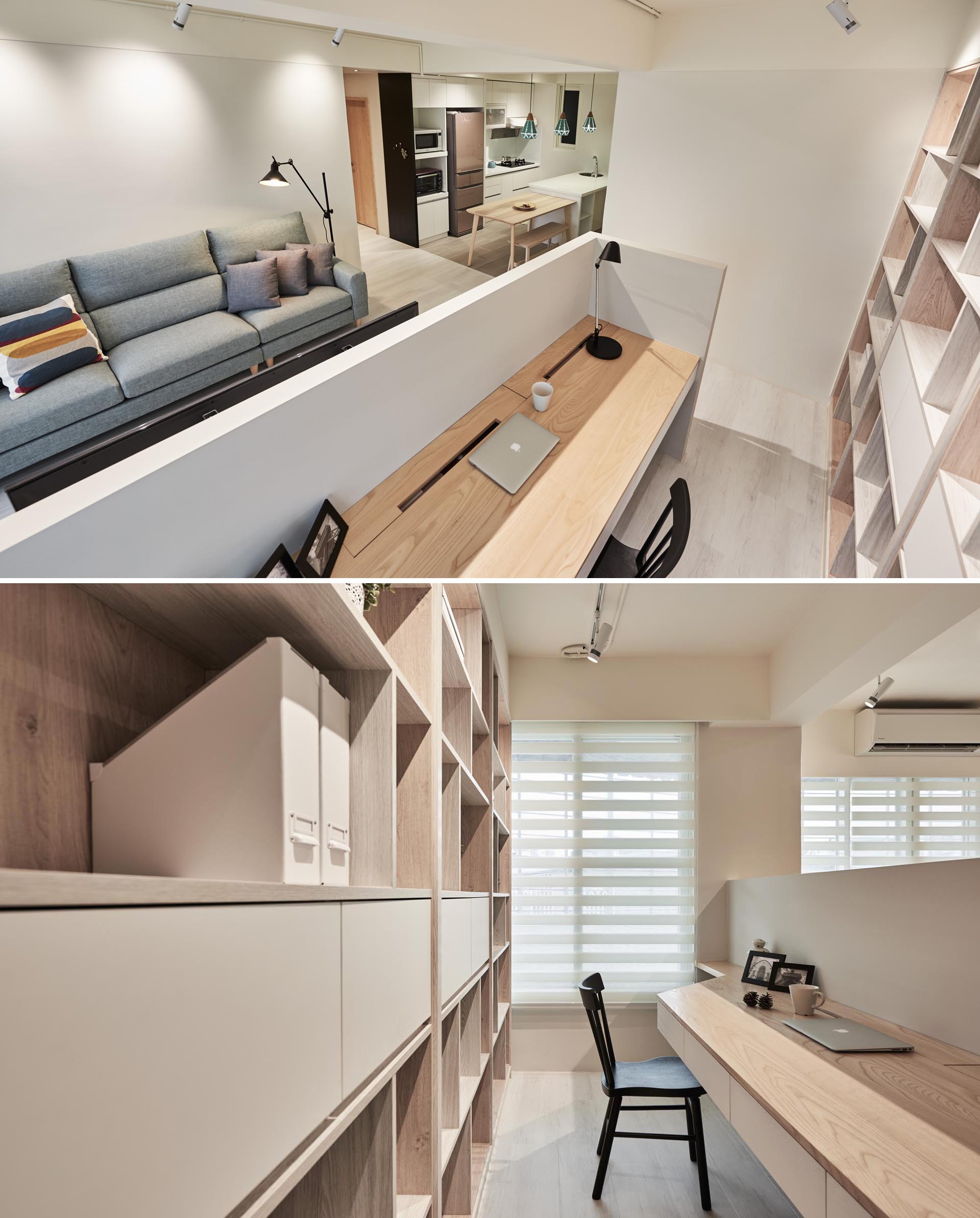 When designing the interior of this apartment in Taiwan, Life Creator Design included a multi-functional living space that can be used as both a living room and a home office.