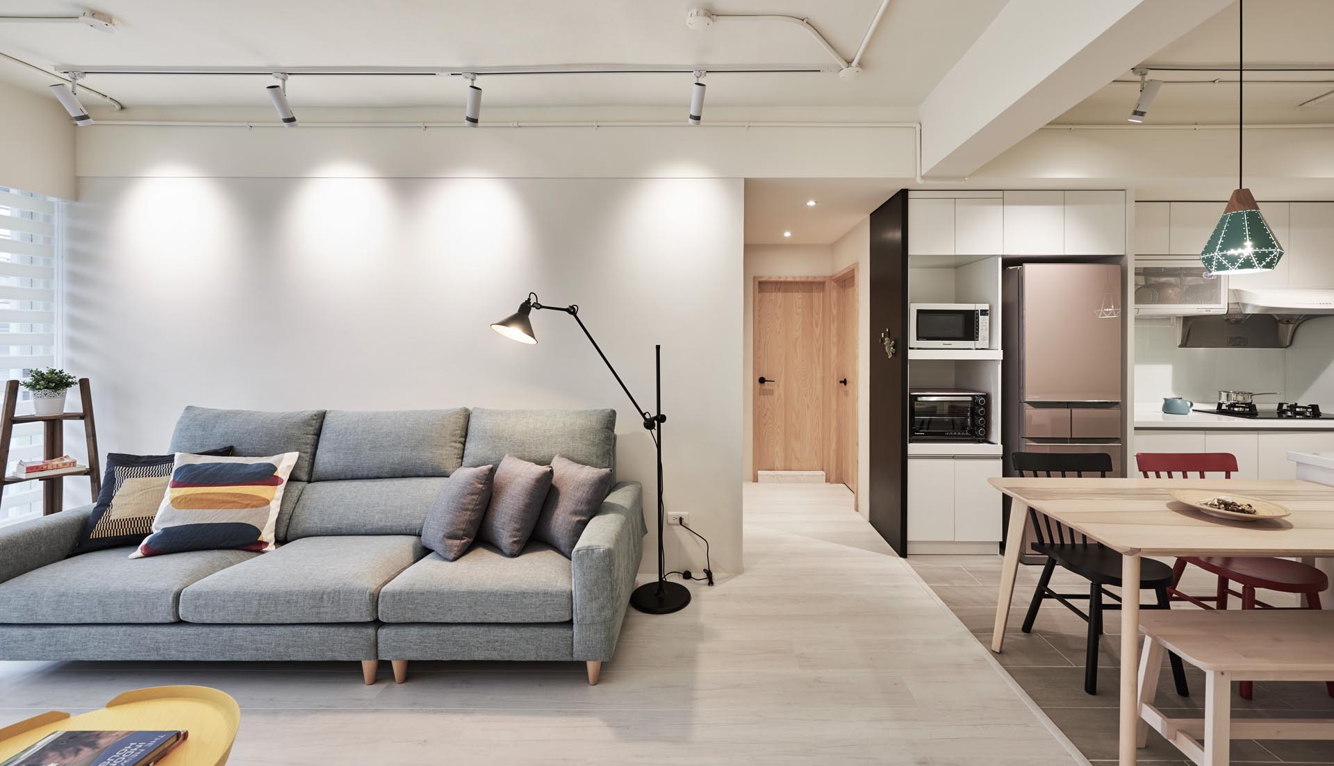 When designing the interior of this apartment in Taiwan, Life Creator Design included a multi-functional living space that can be used as both a living room and a home office.