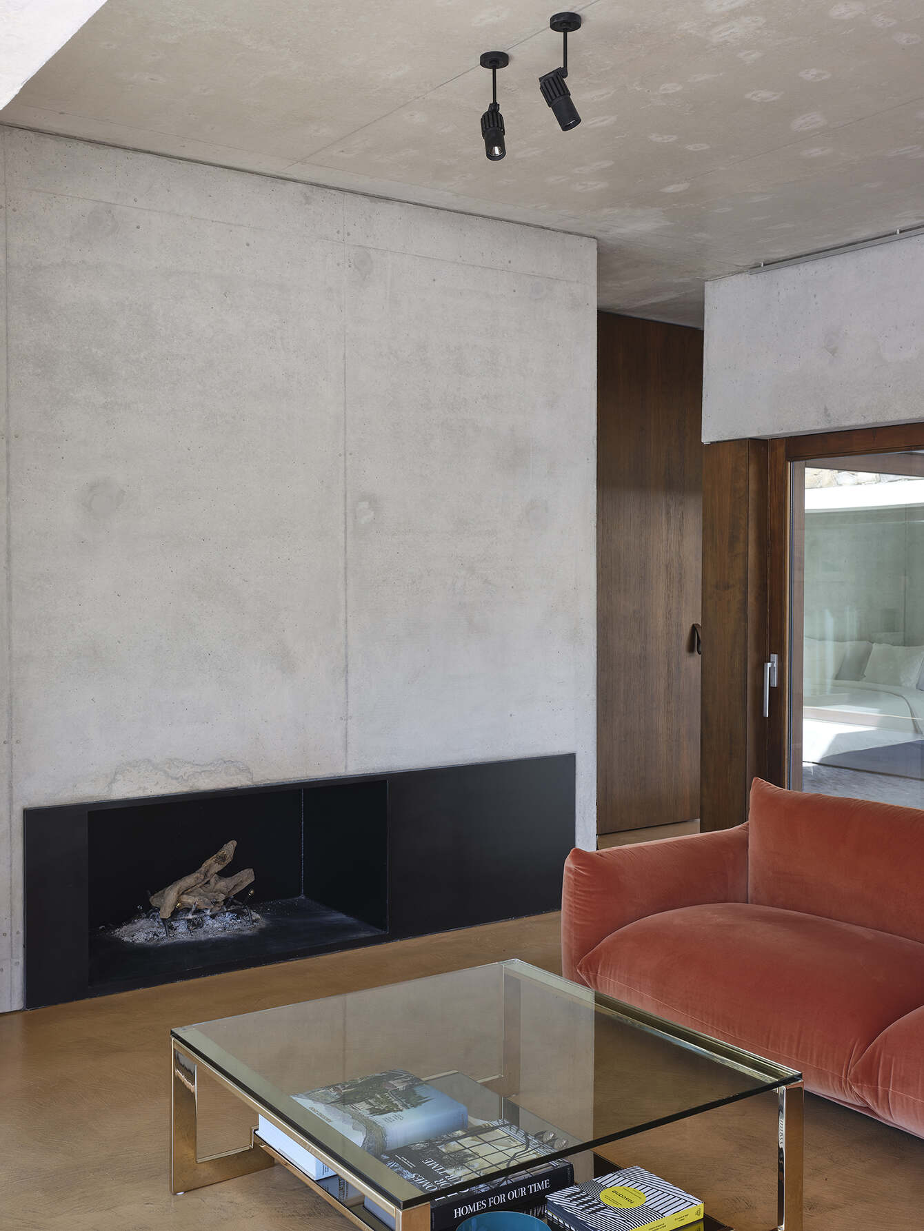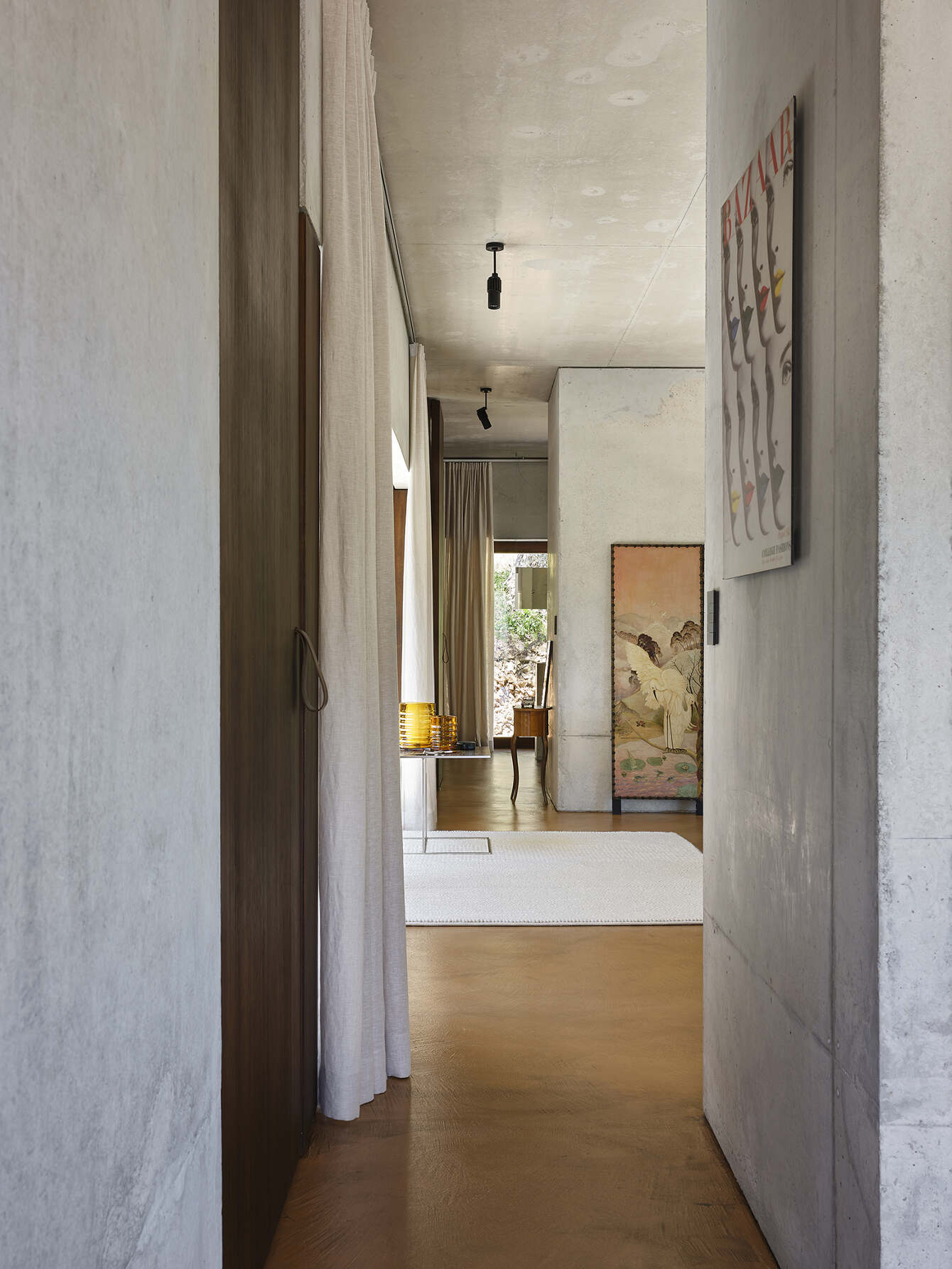 하우스 공간은 고대 로마의 건축양식을 현대에 재현하는 기하학적 공간구성을 보여준다. 이를 위해 불필요한 요소는 배제됩니다. 내부 마감재 또한 구조체; 콘크리트를 그대로 노출하여 사용한다. 바닥 또한 콘크리트 바닥면 위 레진으로 처리하여 사용한다. 여기에 원목 그대로를 구현한 가구와 마감재가 공간의 온도를 균형감 있게 맞춘다.